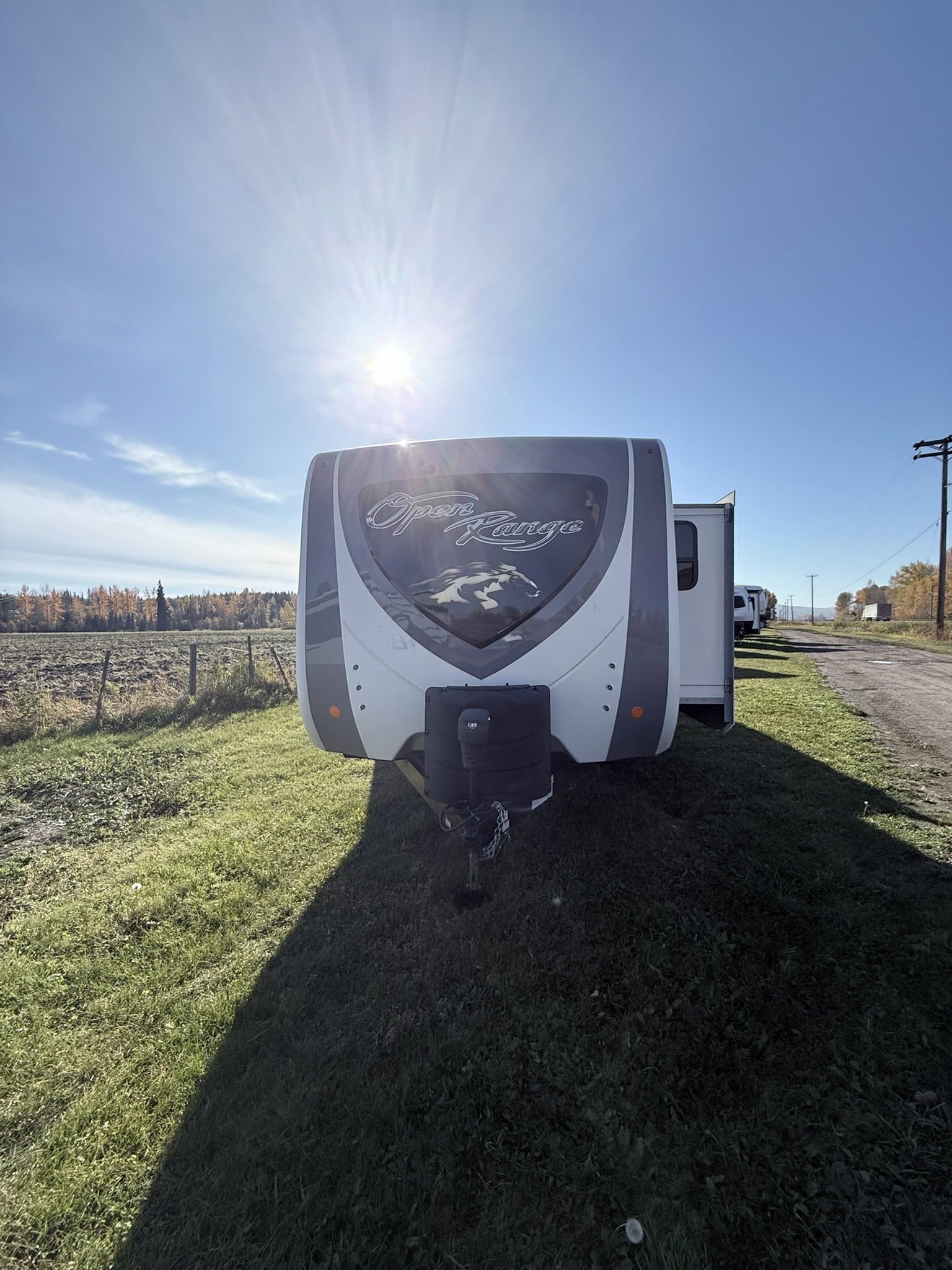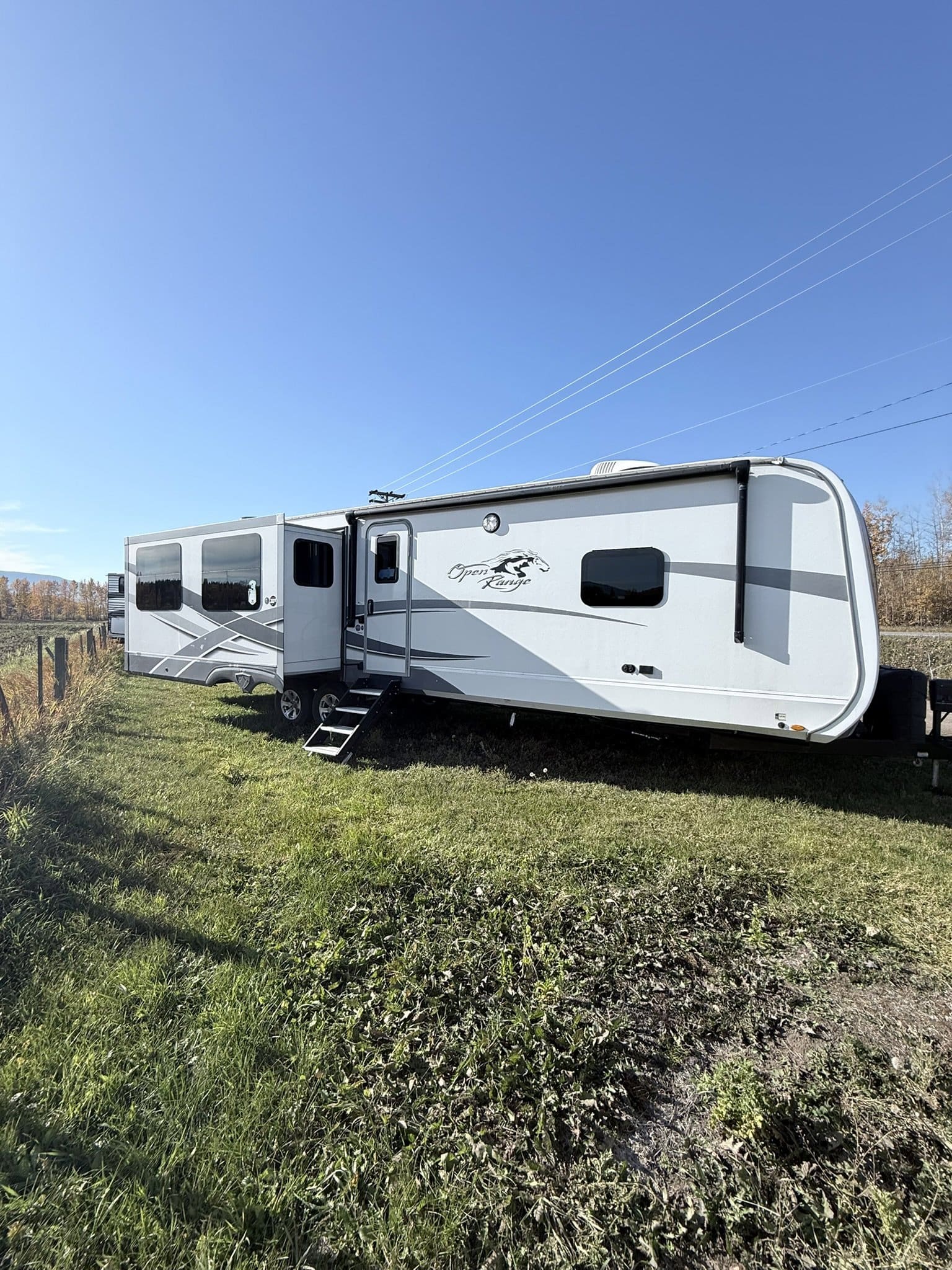 Highland Ridge Open Range travel trailer OT323RLS highlights:Rear Living AreaTheater SeatsFree Standing Table/ChairsKitchen IslandDouble Entry Bath15′ Power Awning