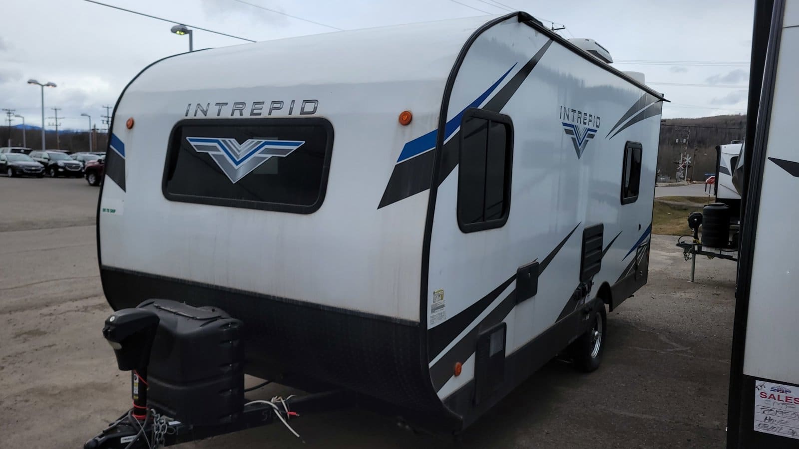 Intrepid PackageLaminated AZDEL Composite Exterior WallsUpgraded Aluminum WheelsIntrepid GraphicsConvenience PackageDouble Welded Aluminum FramingPowder Coated Chassis12V Power ConverterTinted Safety Glass WindowPVC Roof MembraneExterior ShowerDiamond Plate Rock GuardRadial TiresInterior & Exterior LED LightingFM/Bluetooth StereoPower Vent in BathUSB PortsSolar PluginObservation Camera PrepFront & Rear Stabilizer JackInterior/Exterior SpeakersHD TV AntennaSmoke Detector; C/O Detector1-20# LP Tan