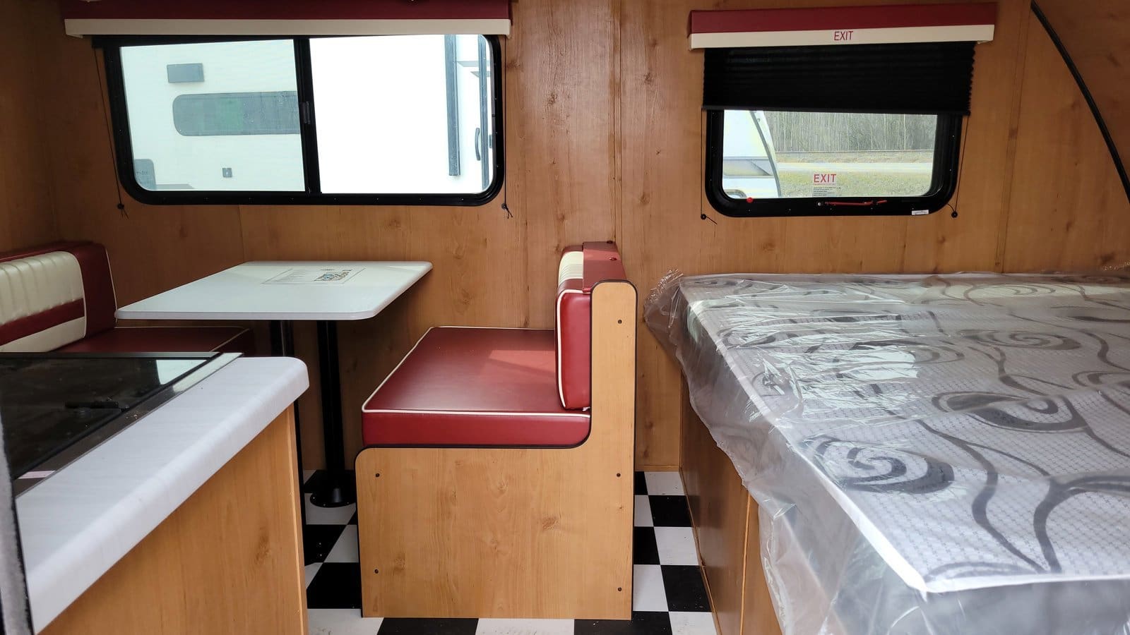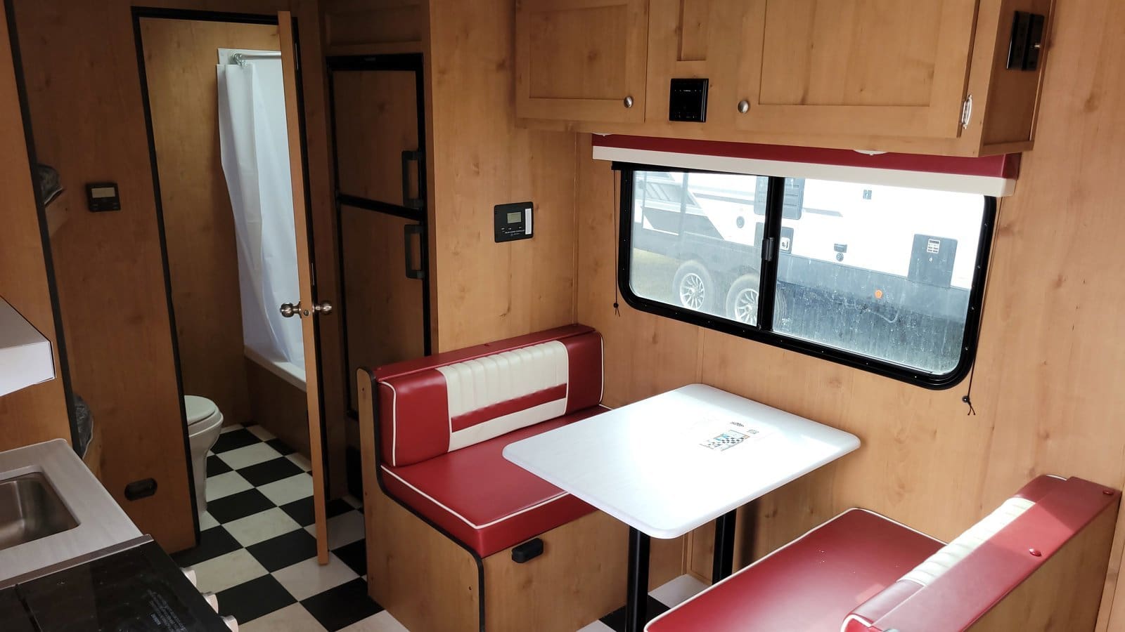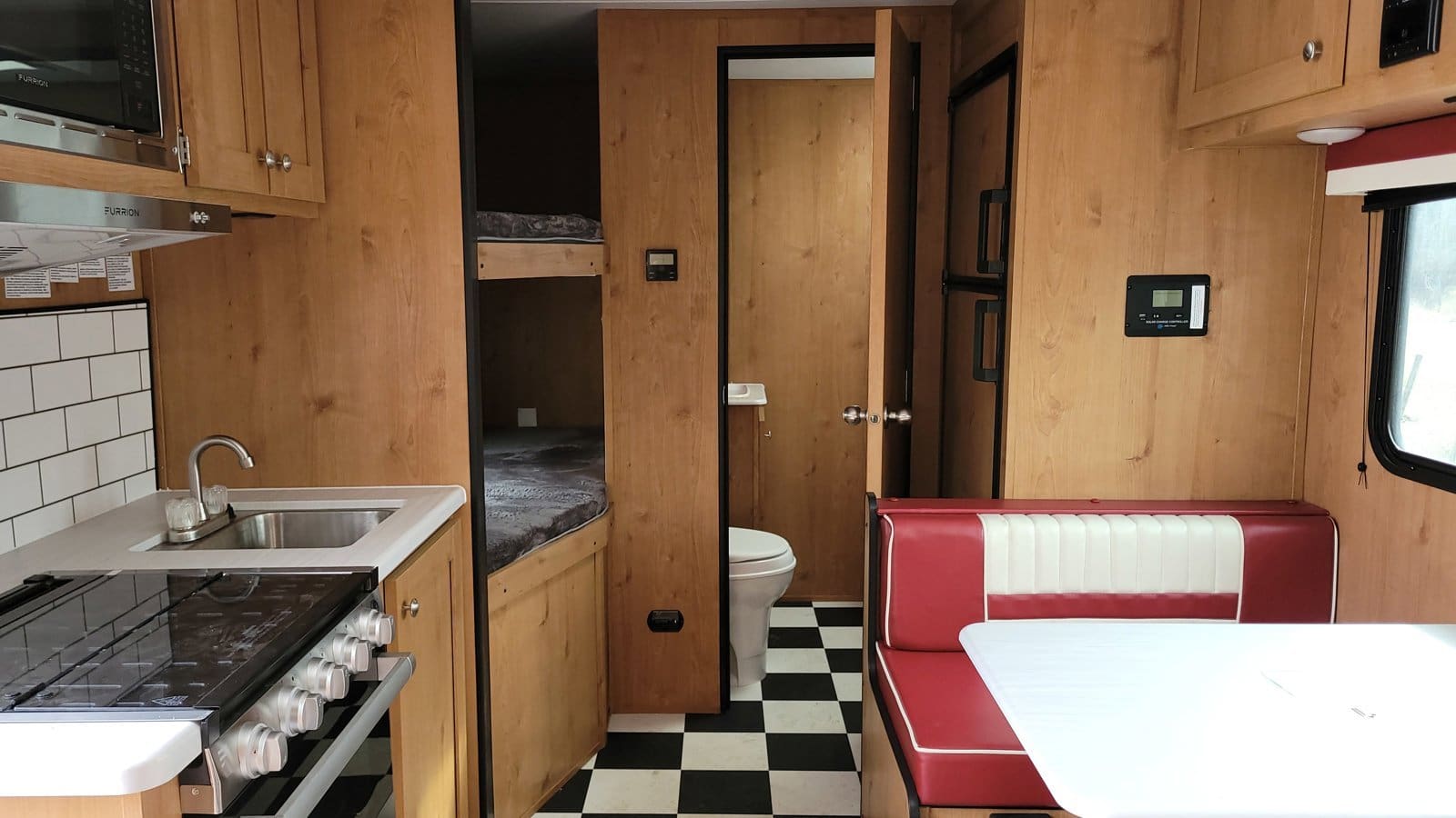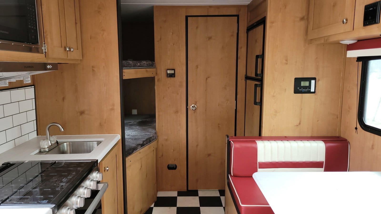 The Retro is a compact lightweight travel trailer with customization options that start with the size and look of your RV exterior. The retro brand has multiple size options ranging from micro and mini campers to a full-size 28′ Bunkhouse. Haul your Retro with a Small SUV Jeep Van or 1/2 Ton.Retro PackageDouble welded aluminum framePowder coated chassis13.5K A/C12V power converterTinted safety glass windowsPVC roof membraneOutside showerDiamond plate rock guardDSI gas/electric water heaterGa