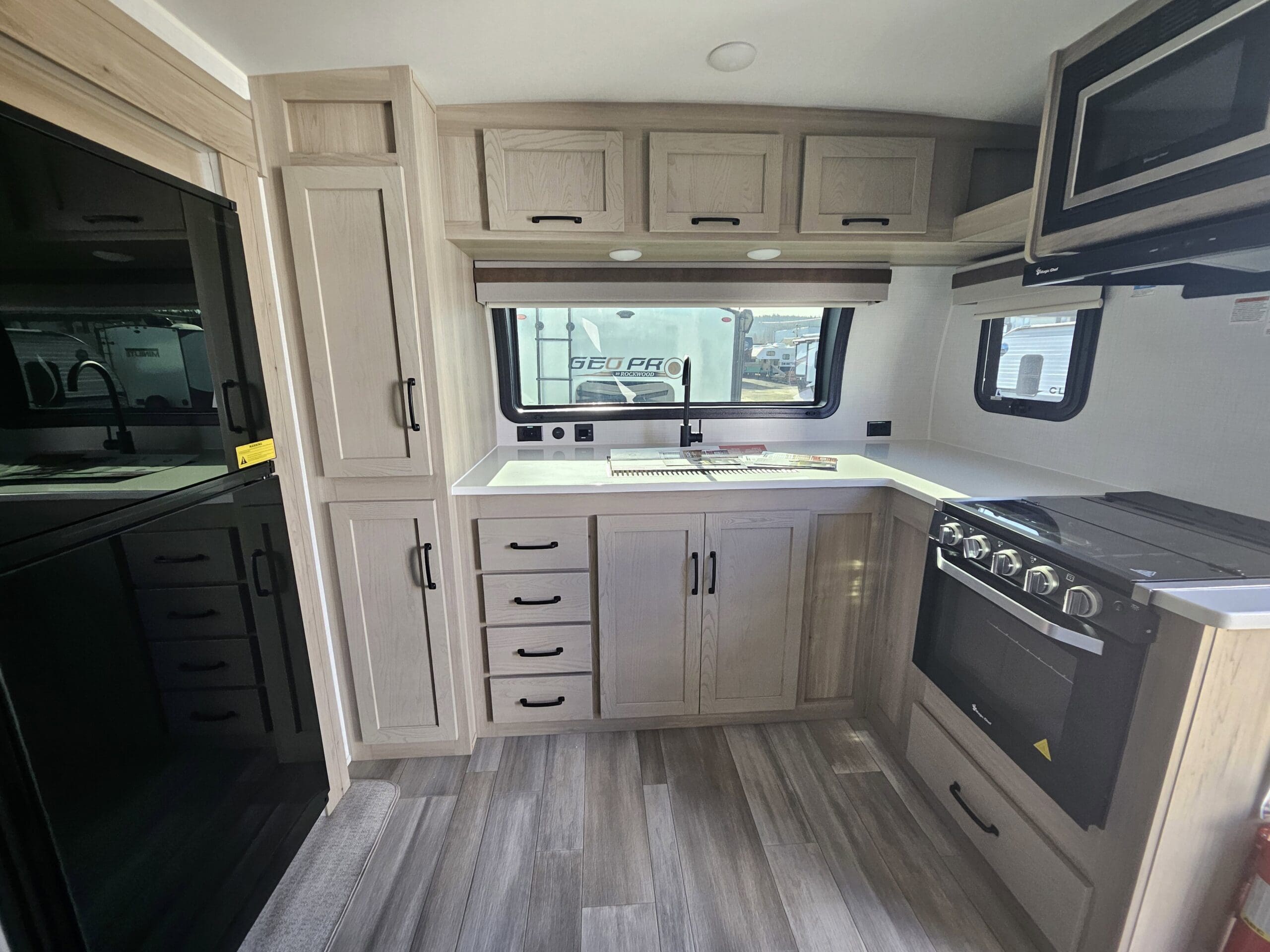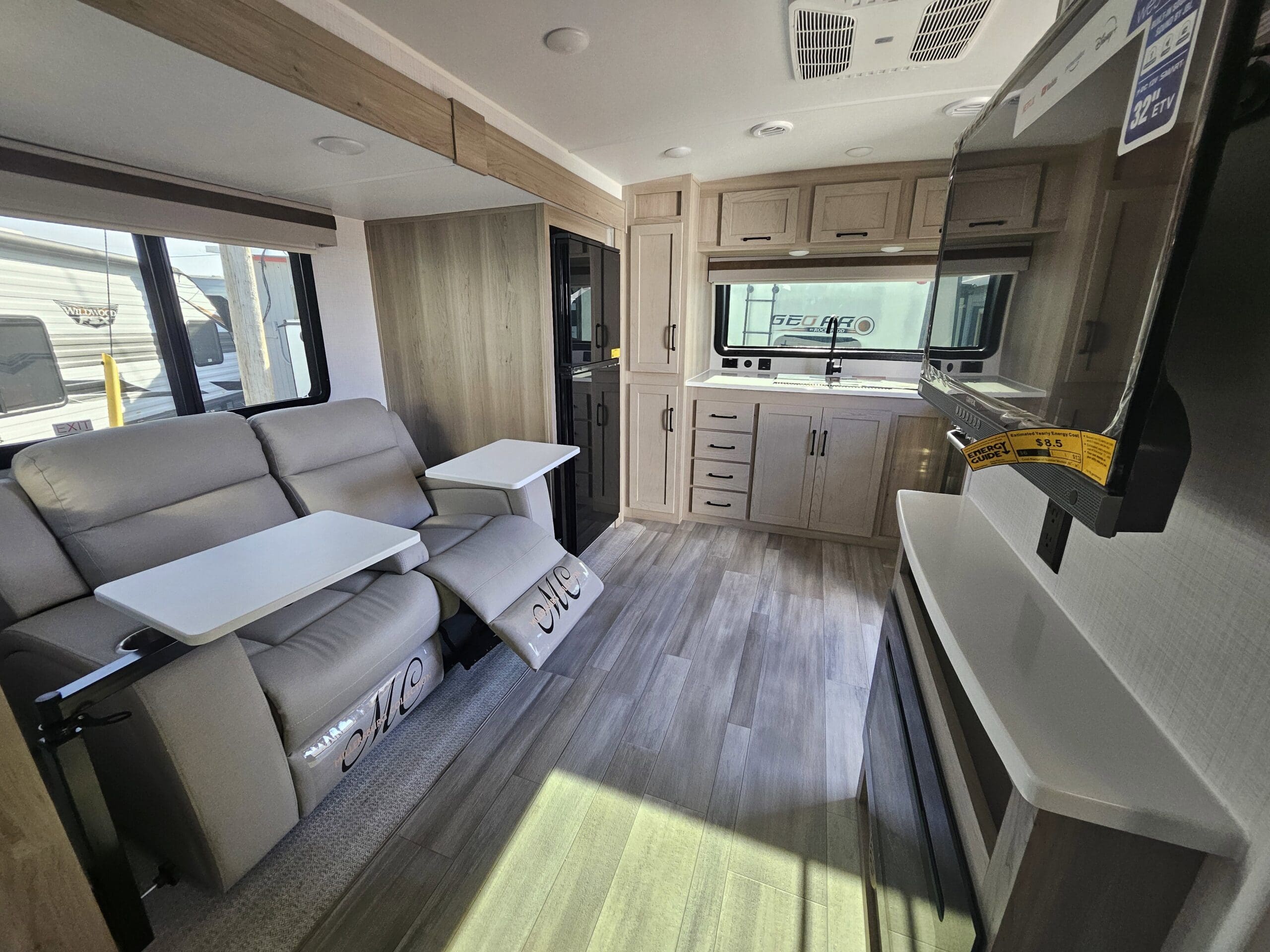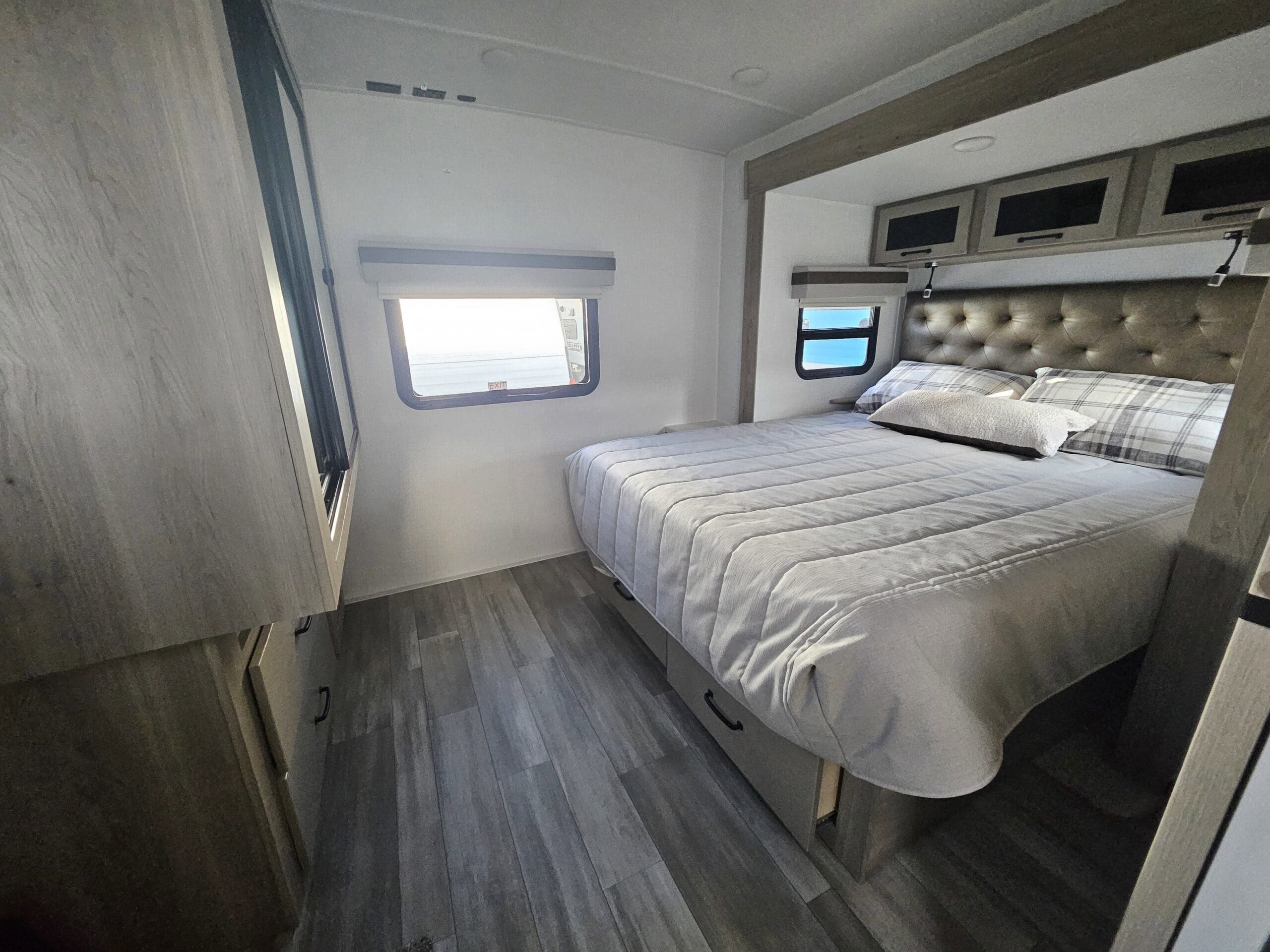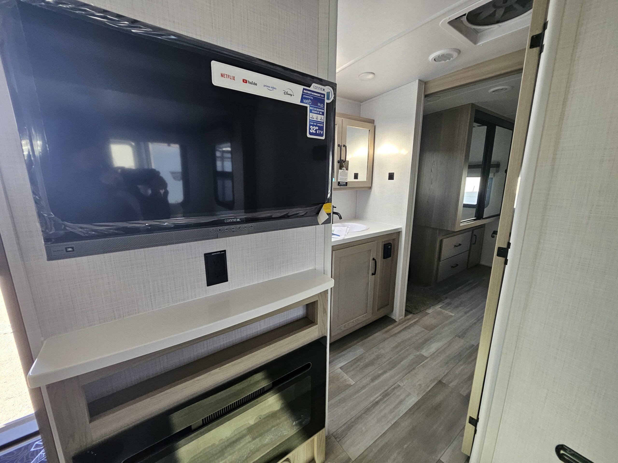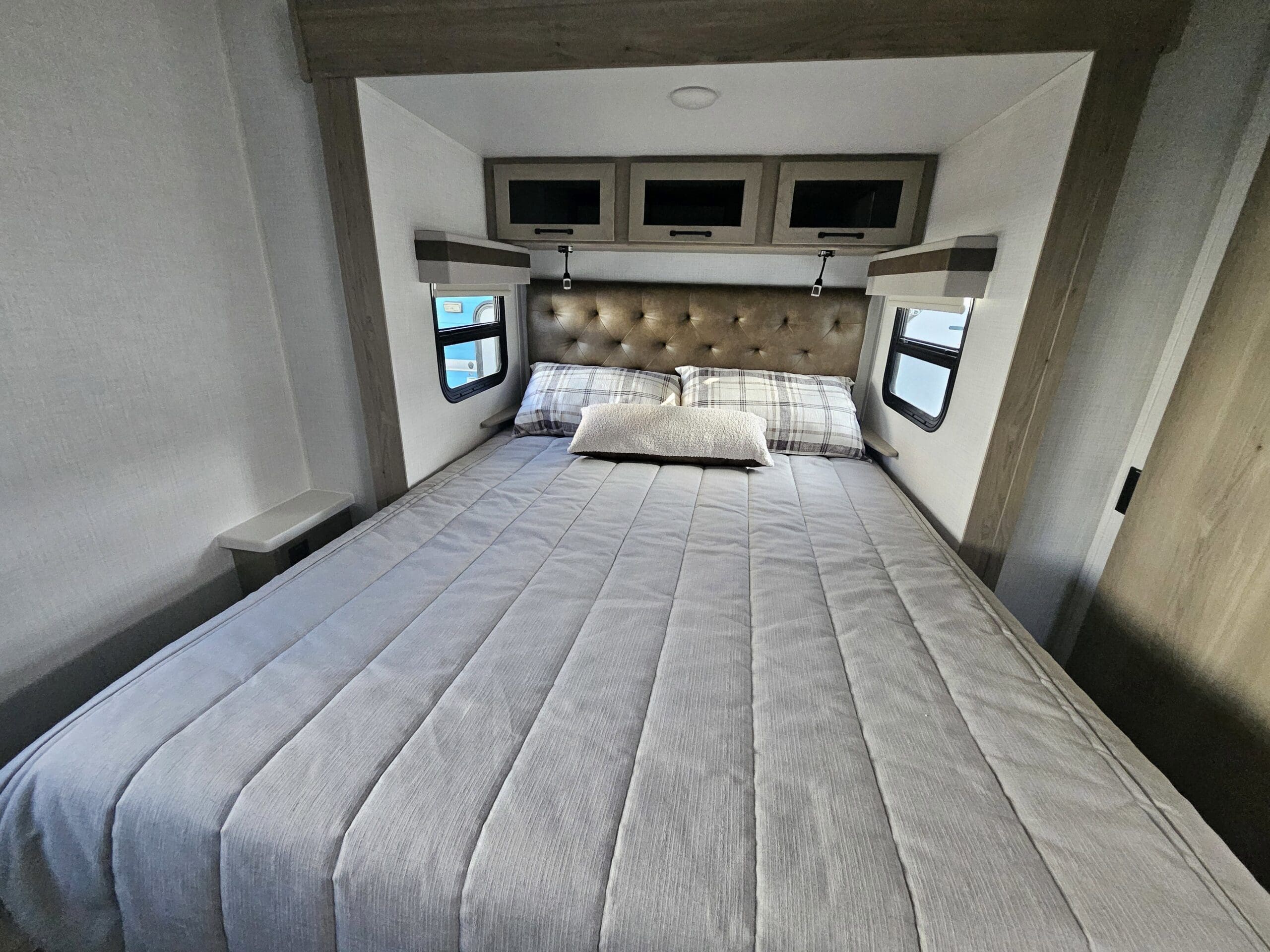 Superior ConstructionComplete Composite Wall ConstructionFully Laminated Walkable Roof6-Sided Full-Aluminum FrameAluminum Truss Roof Bracing5/8 Tongue & Groove Plywood FloorAluminum Floor JoistsFrameless WindowsOainted Fiberglass Front Cap w/Clear CoatAutomotive Glass WindshieldStandard Features200W Solar Panel with 1800W Inverter & 30 AMP Charge ControllerBack-Up Camera PrepMaxxair Fan with CoverWinegard Air 360+ Prepped for Wi-FiKey-Alike Lock SystemSlam Baggage DoorsSport Tire and Wheel Packa