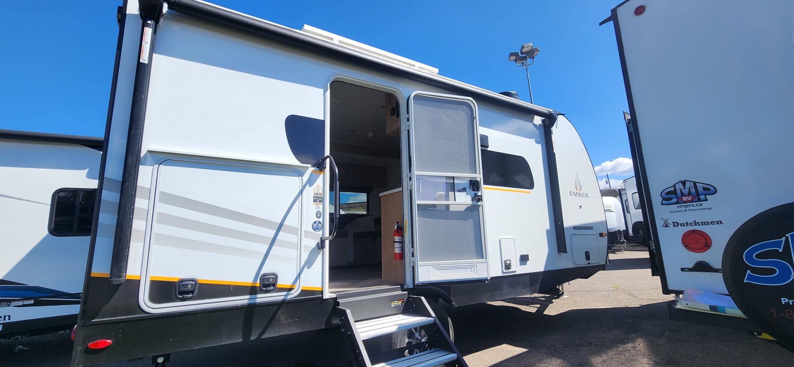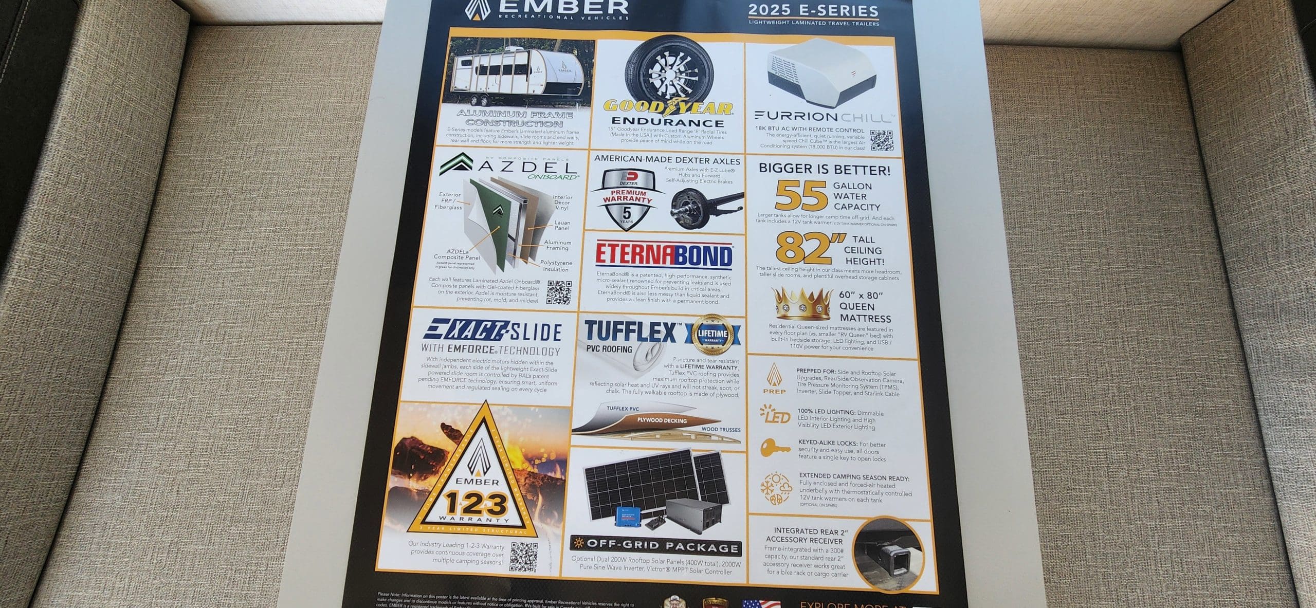 Key FeaturesBest-in-Class 82 Ceiling Height60 x 80 Residential-Sized Queen Bed18000 BTU Max Cool Whisper Quiet A/C (Largest Single A/C in Class) with RemoteGoodyear Endurance® Tires (Load Range E)Congoleum® DiamondFlor® Carpetless InteriorAir Fryer Convection MicrowaveEmberLink Smart RV system controls Slide Room Awning and LightingXL 55. Fresh 35. Gray & Black TanksLaminated Azdel Onboard® Composite WallsInterior FeaturesEmberLink? Smart RV Control System12V Refrigerator (10 cu..