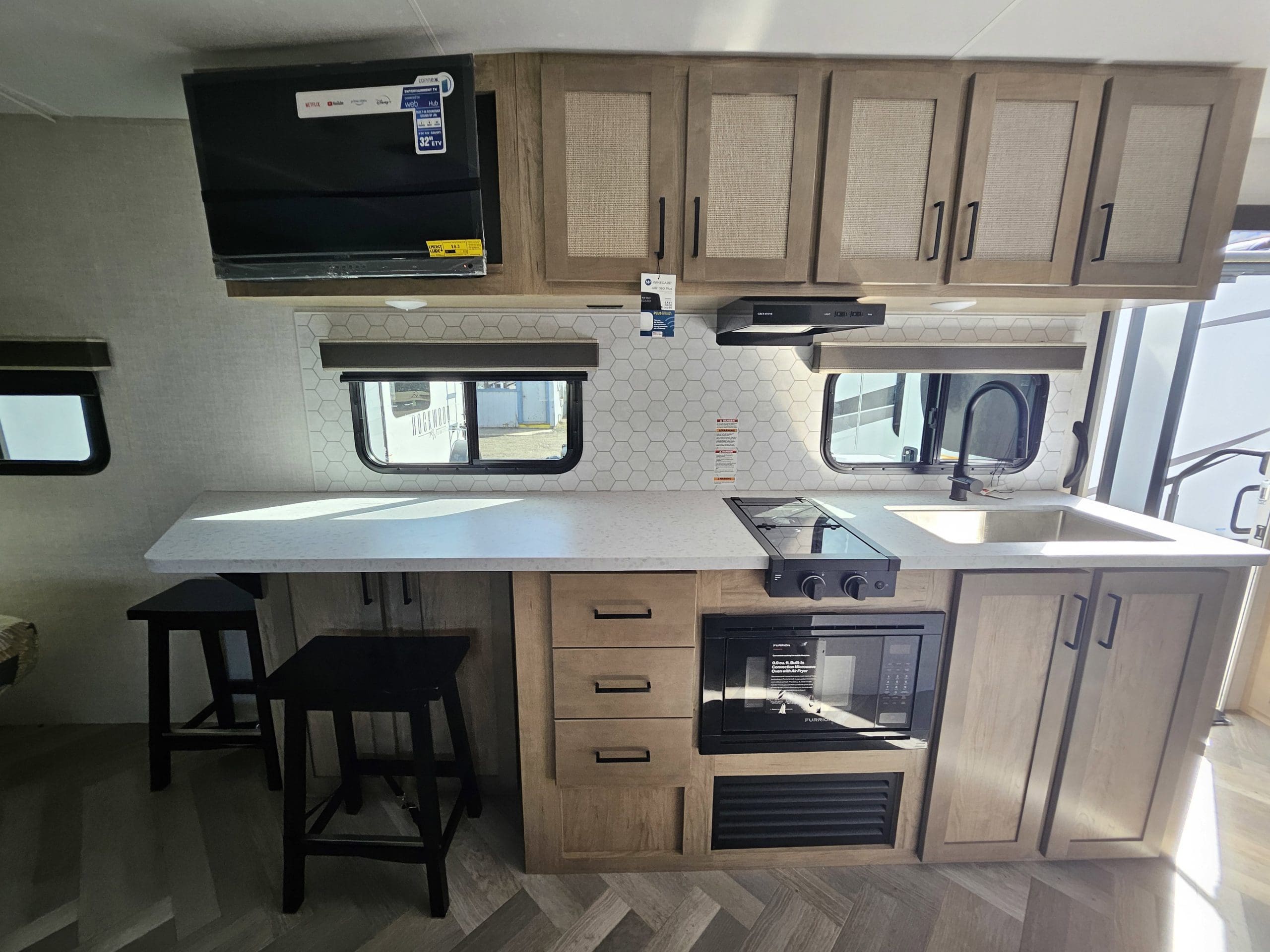 Key Features18000 BTU Max Cool Whisper Quiet A/C (Largest Single A/C in Class) with RemoteGoodyear Endurance® Tires (Load Range E)Walk-around True Residential Queen Size 60 x 80 Front Bed (vs. RV Queen)Patent-pending Repositionable EmberTrack? E-Track Bunk/Storage System (74 X 45 Rear Cargo Area)Standard Wall-hugger Theater SeatingCongoleum® DiamondFlor® Carpetless InteriorAir Fryer Convection MicrowaveEmberLink? Smart RV system controls Slide Room Awning and LightingXL 55. Fresh 35.