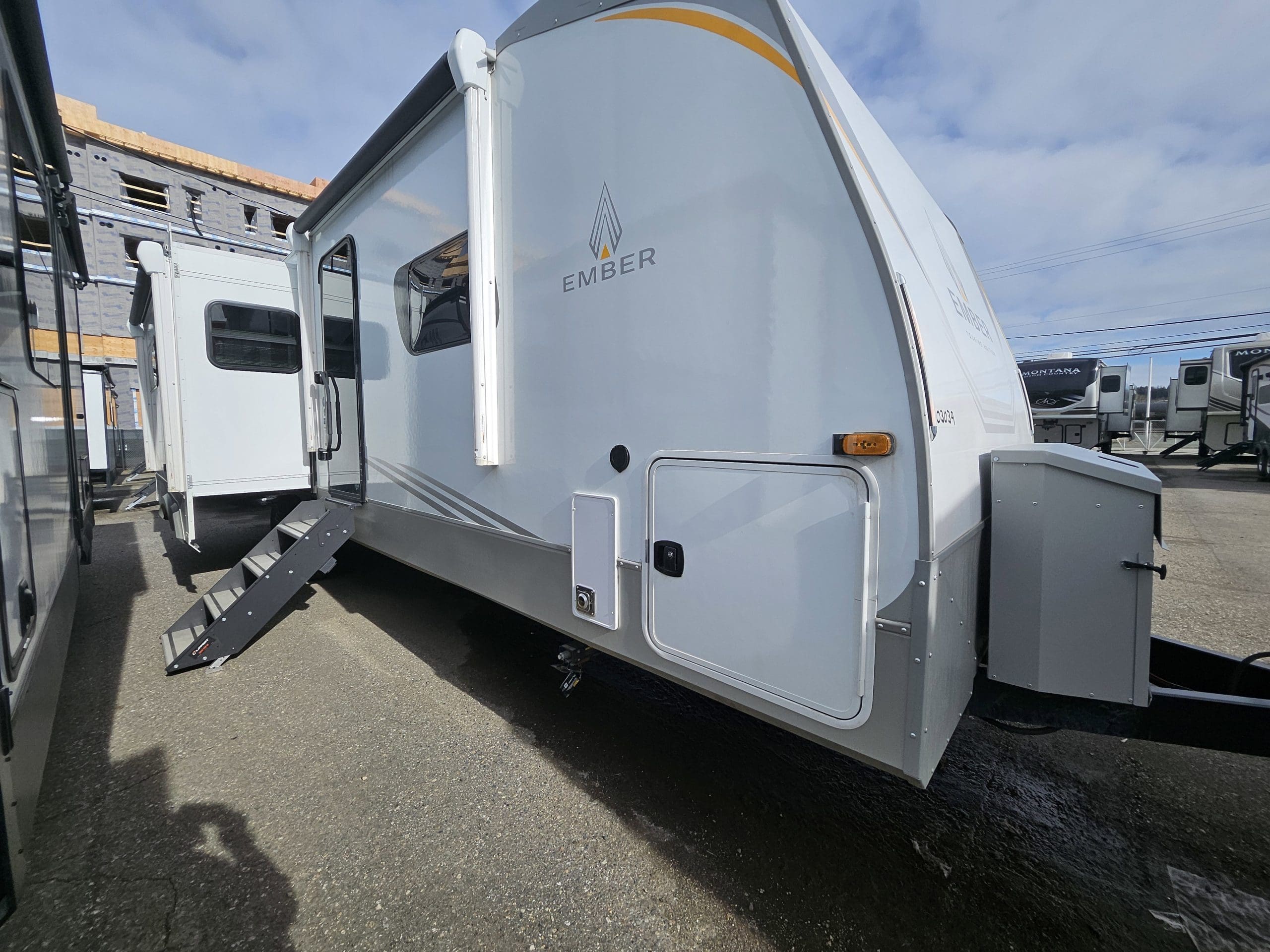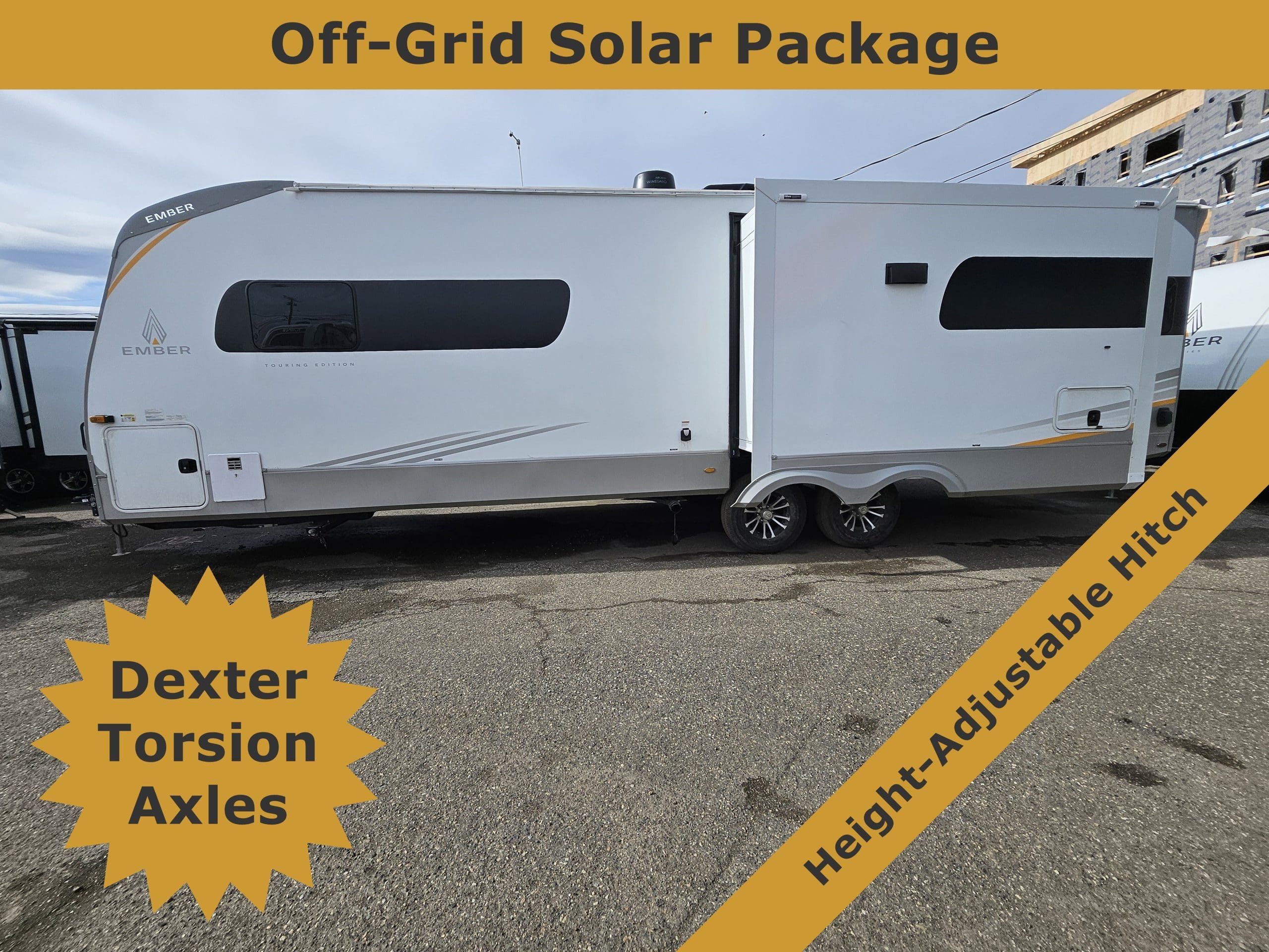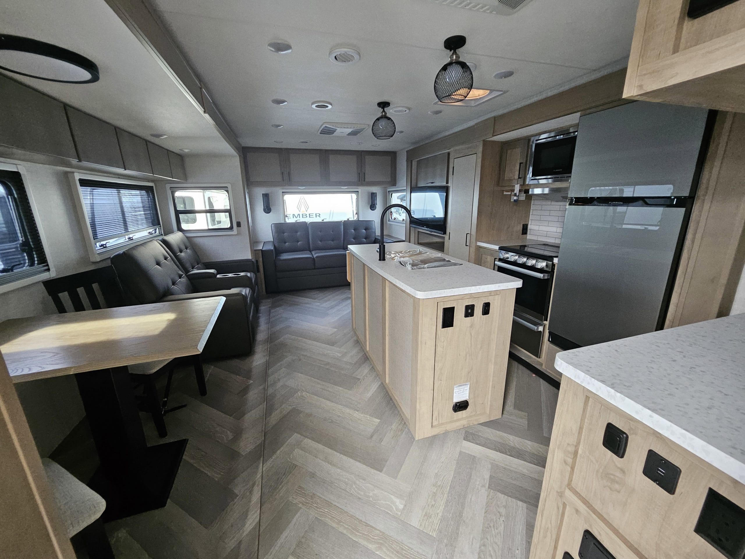 Key FeaturesEmberLink? Smart RV Control SystemEvermore? Laminated Azdel Onboard® Composite FloorNitro-filled 16 Goodyear Endurance® Tires – Load Range E (including spare)Stargazer Dual Pane Acrylic Skylight with Integrated Shades/ScreensConstruction FeaturesDexter® Torsion Axles with Self-Adjusting Electric BrakesOne-piece PVC Roof (Lifetime Warranty)Aluminum Bed Bunk and/or Dinette Construction (where applicable)VersaCoupler® Height-Adjustable Bolt-On Hitching System with LED LightEvermore? L