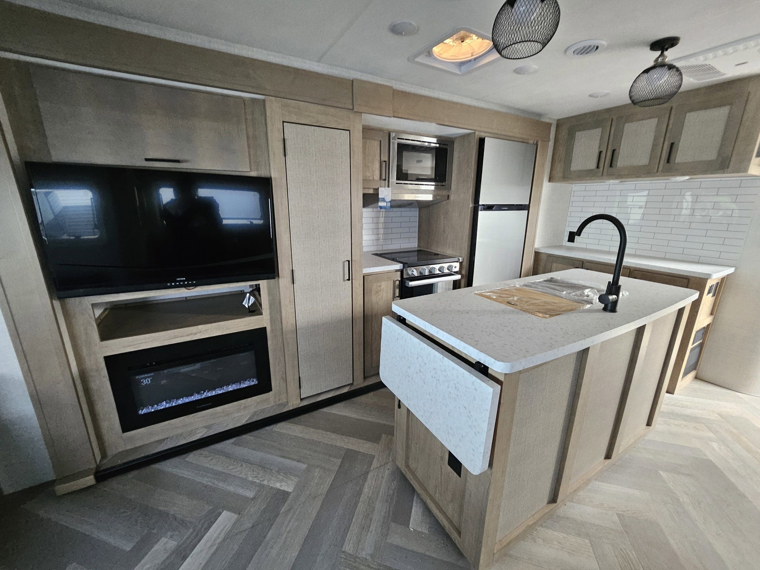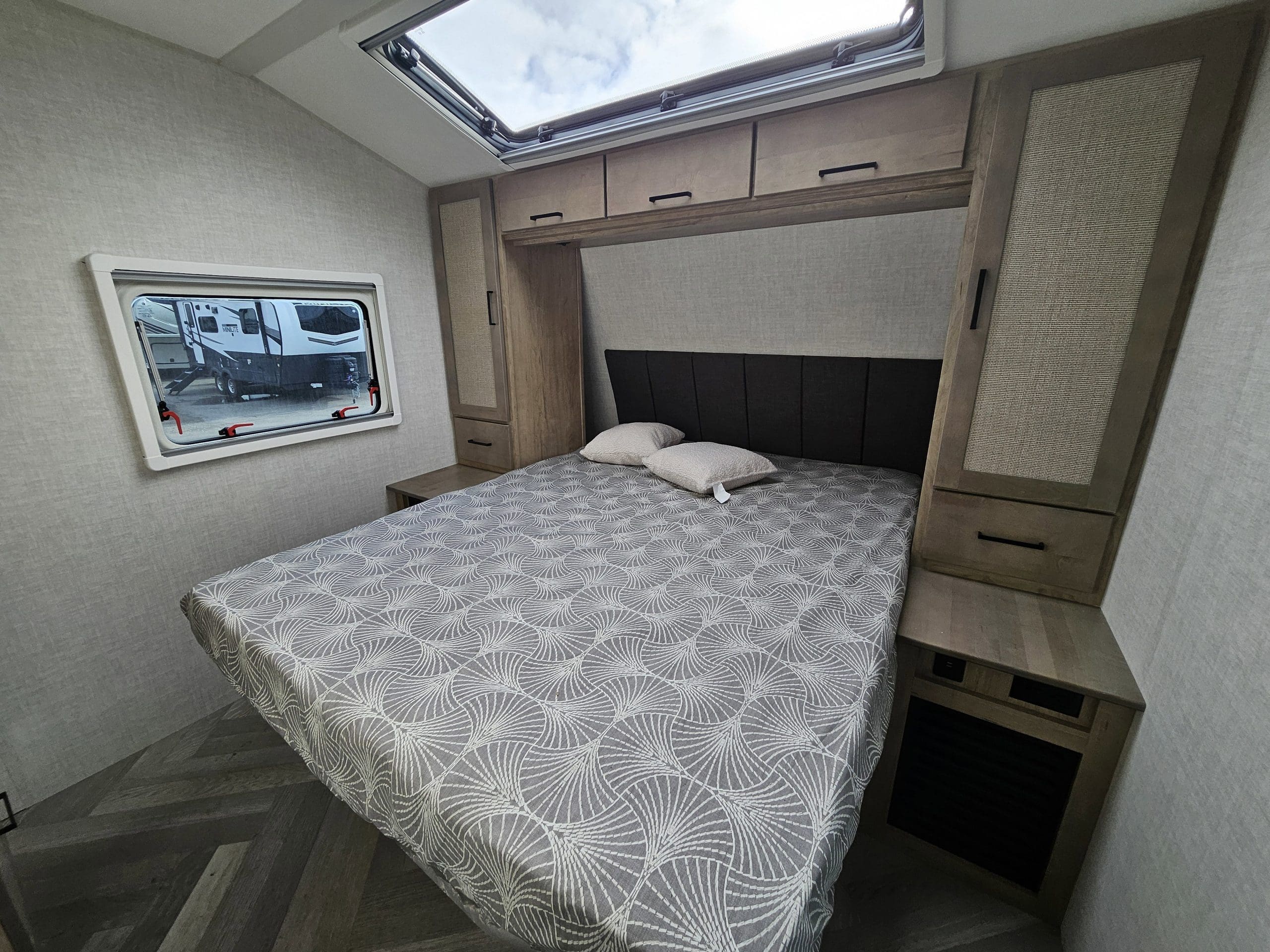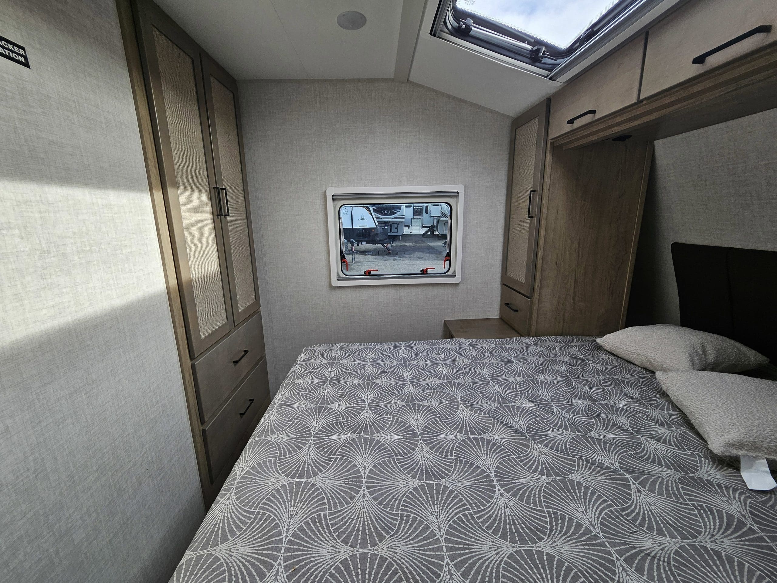 Key FeaturesEmberLink? Smart RV Control SystemEvermore? Laminated Azdel Onboard® Composite FloorNitro-filled 16 Goodyear Endurance® Tires – Load Range E (including spare)Stargazer Dual Pane Acrylic Skylight with Integrated Shades/ScreensConstruction FeaturesDexter® Torsion Axles with Self-Adjusting Electric BrakesOne-piece PVC Roof (Lifetime Warranty)Aluminum Bed Bunk and/or Dinette Construction (where applicable)VersaCoupler® Height-Adjustable Bolt-On Hitching System with LED LightEvermore? L