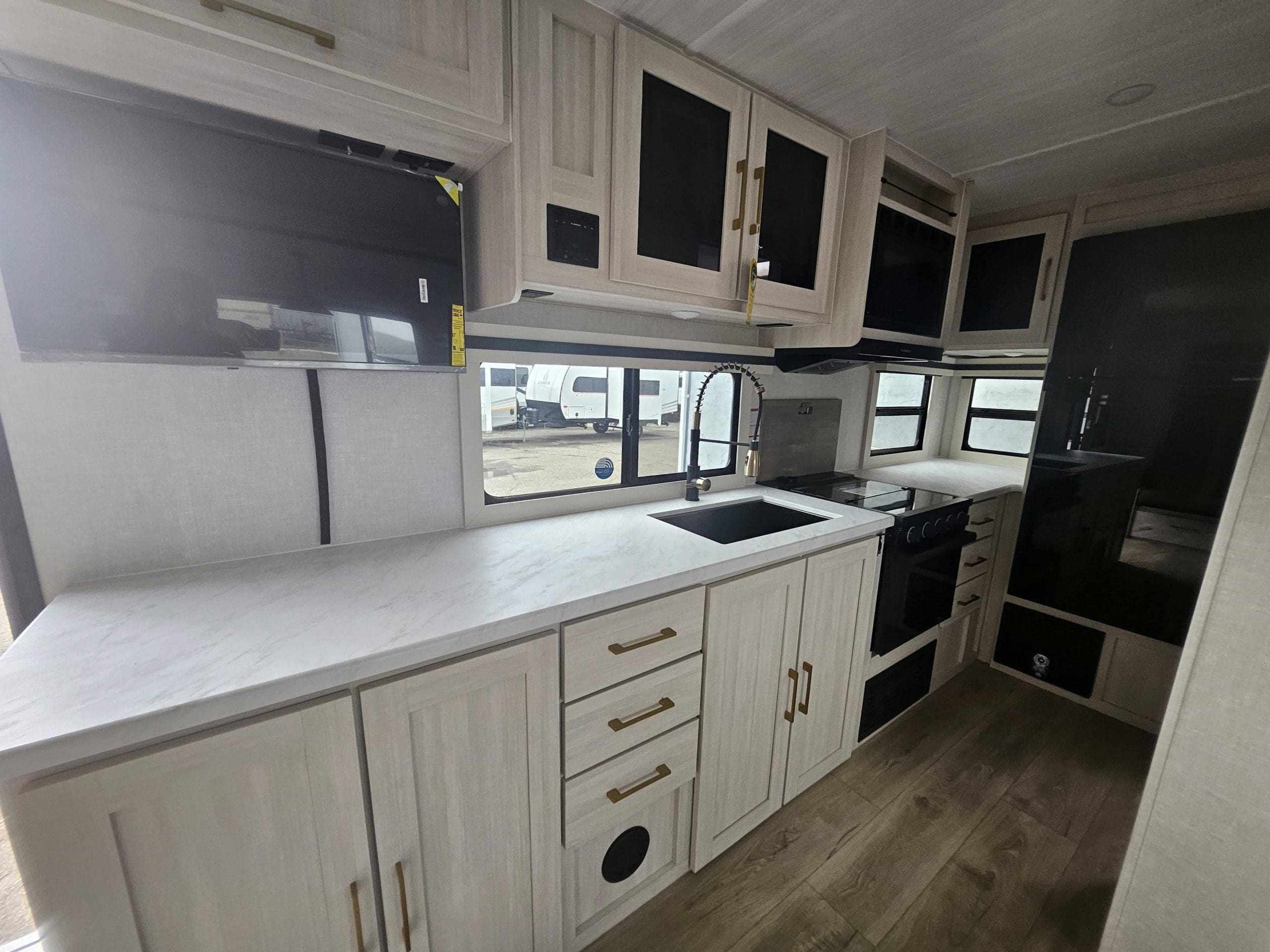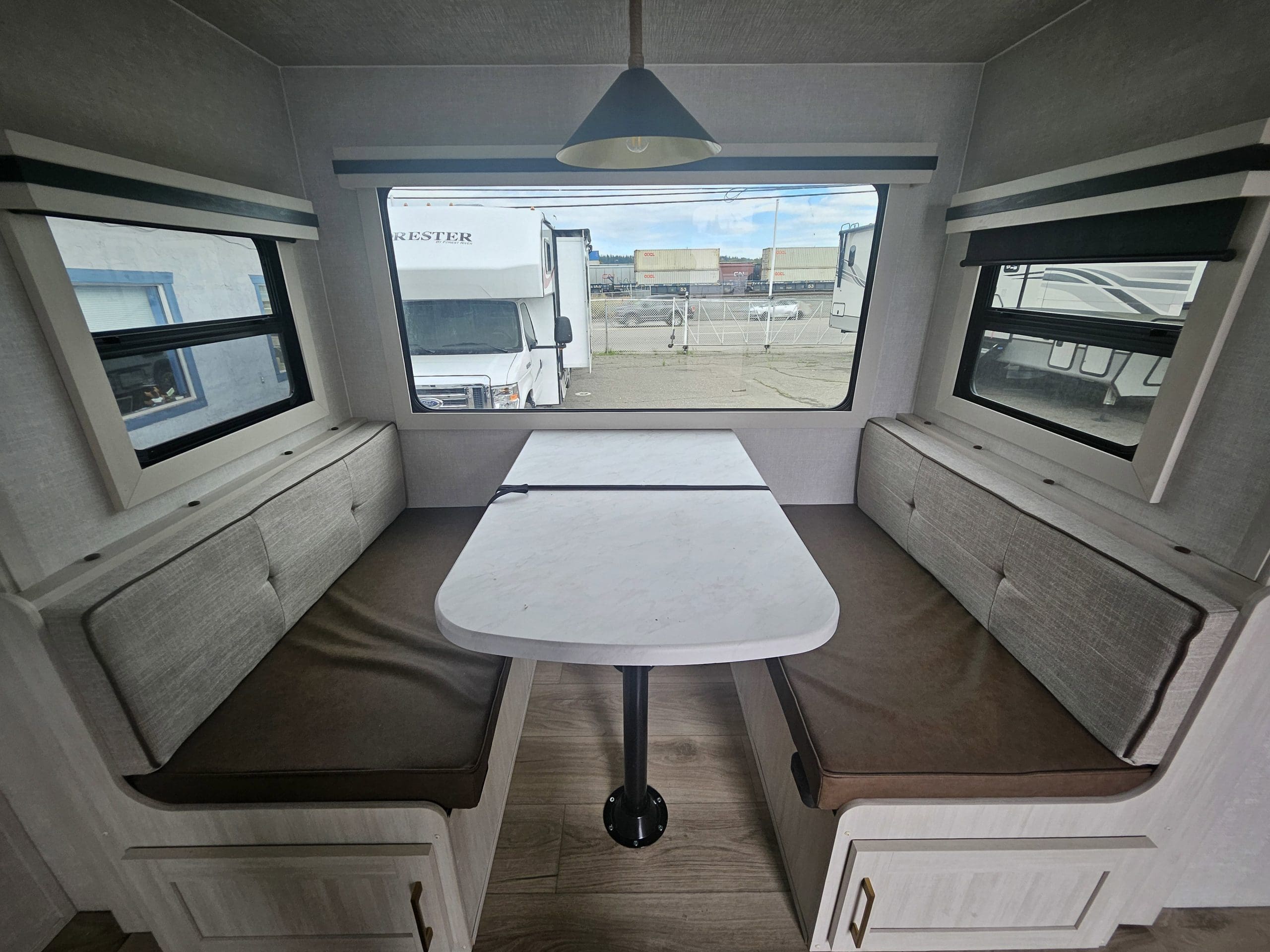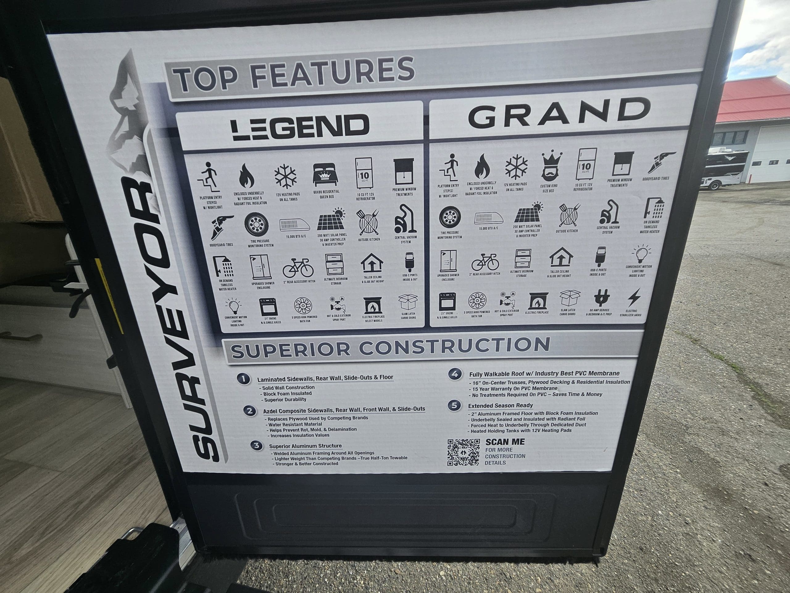 Turn Key Camp Essentials Package (Mandatory)Extended Season Ready2 Aluminum Framed Floor w/ Block Foam InsulationSealed Underbelly w/ Forced Heat & Radiant Foil Insulation12V Tank HeatersGoodyear® Tires15K A/C200 Watt Solar Panel & 30 Amp Solar ControllerSolar Inverter PrepTire Pressure Monitoring System (TPMS)Electric Awning w/ LED LightstripCentral Vacuum System10 Cu.. 12V Black Glass RefrigeratorAdjustable Platform Entry Step w/ Night Light (All Entries)Fricton Hinge Black Glass Entry Door