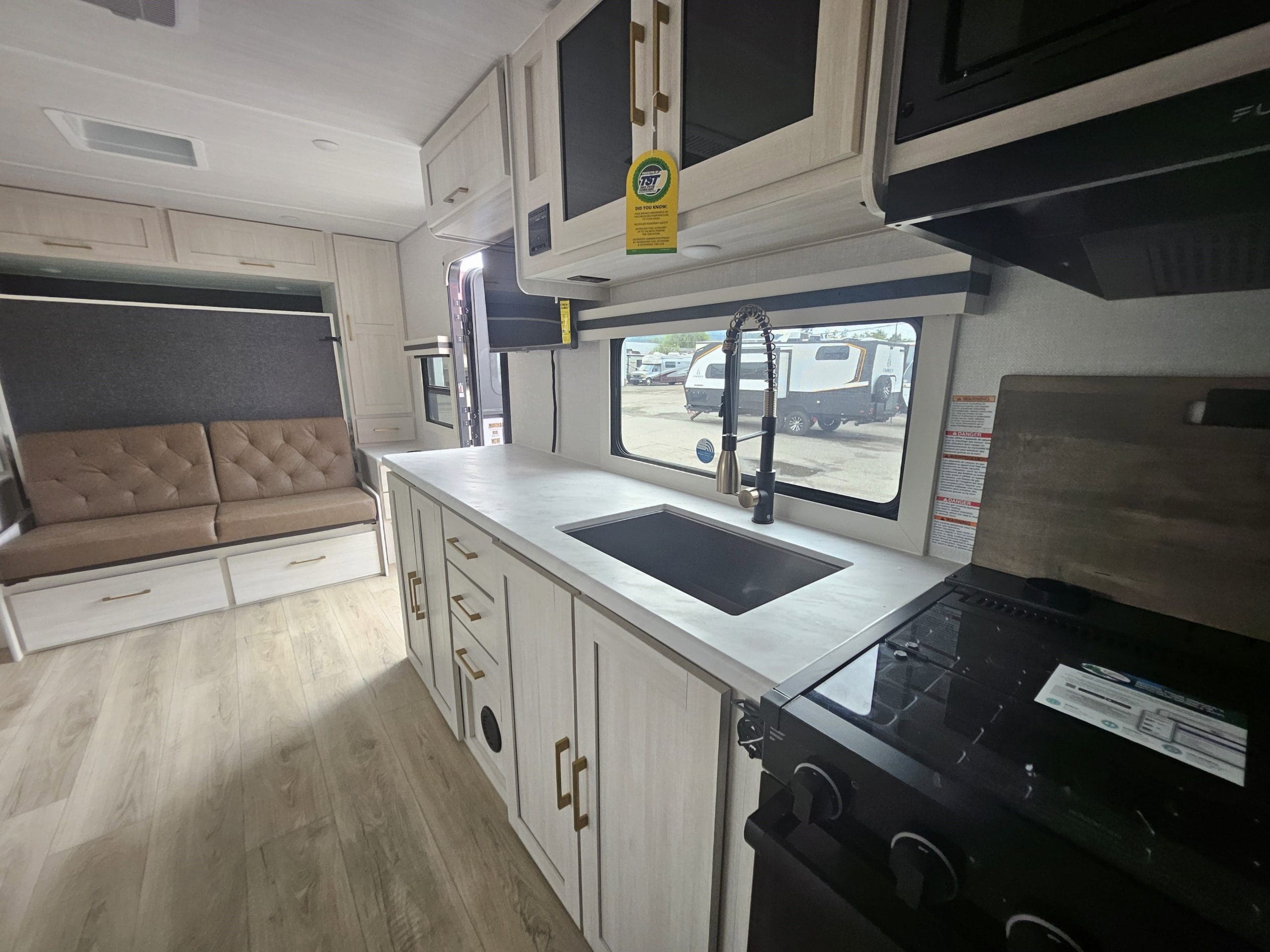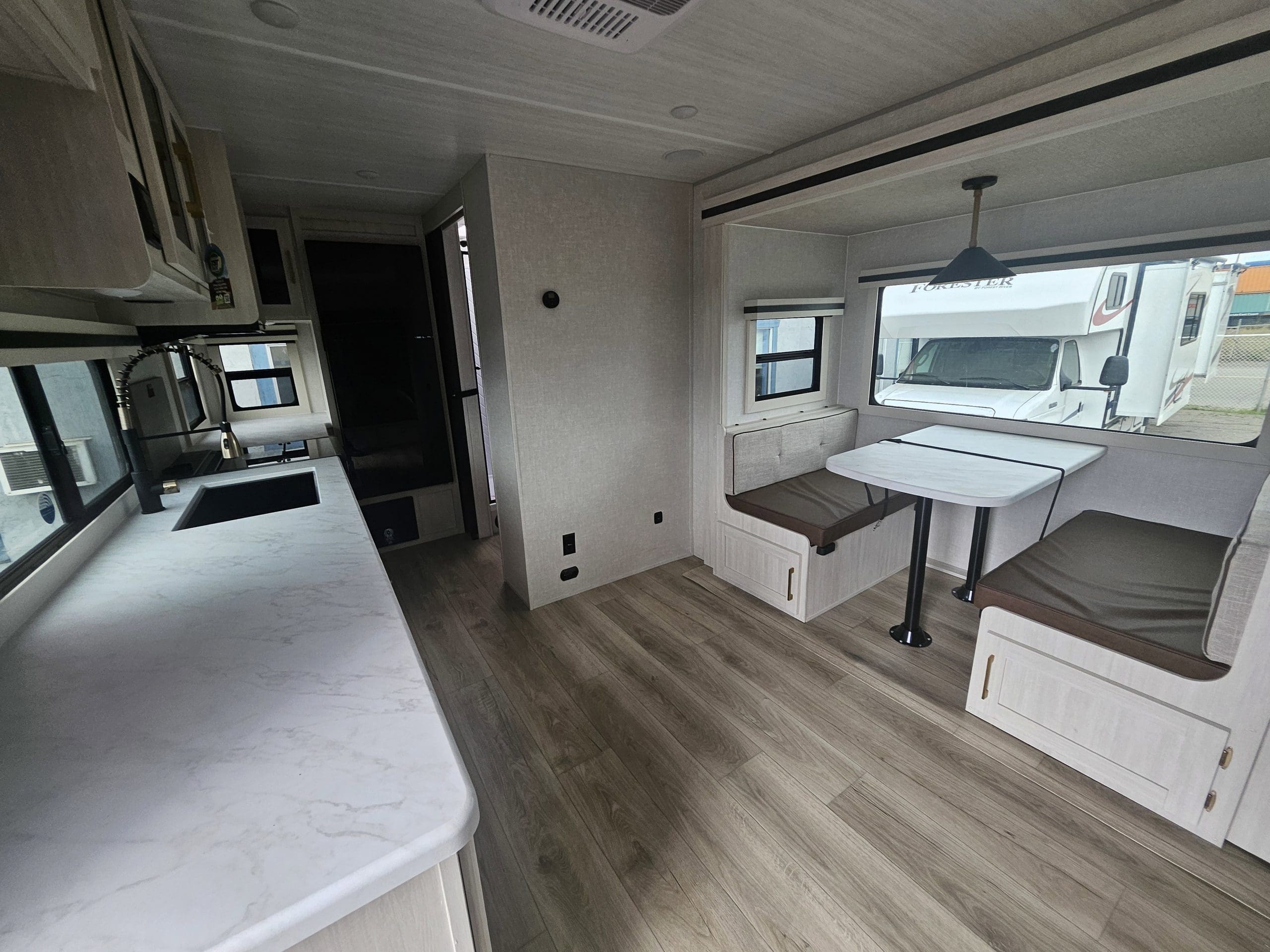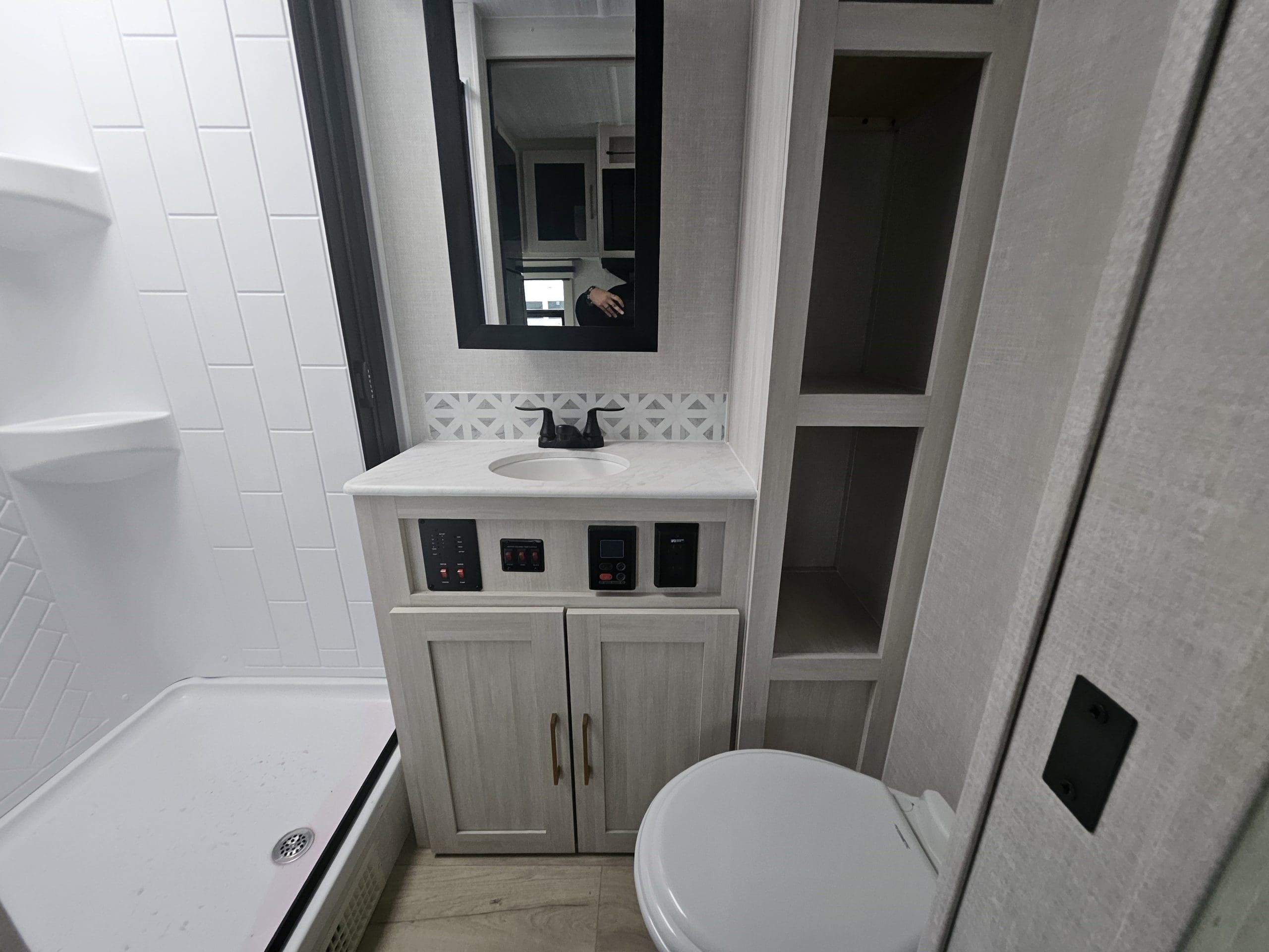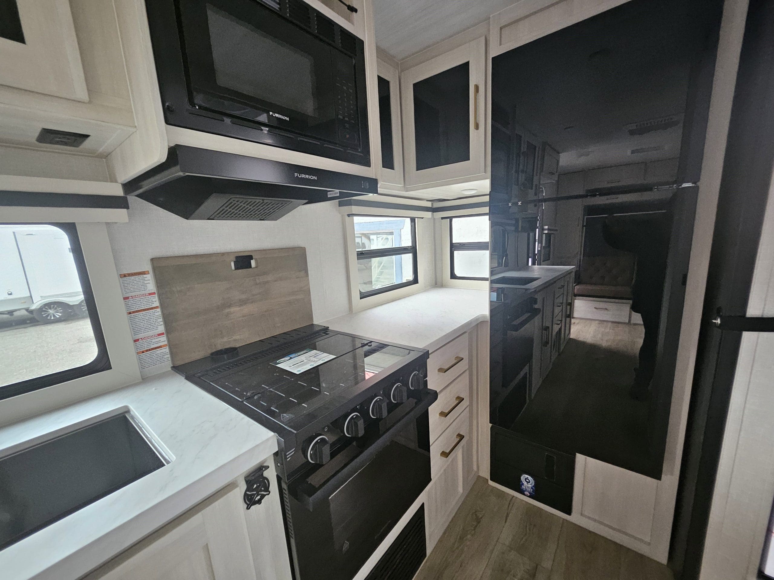 Turn Key Camp Essentials Package (Mandatory)Extended Season Ready2 Aluminum Framed Floor w/ Block Foam InsulationSealed Underbelly w/ Forced Heat & Radiant Foil Insulation12V Tank HeatersGoodyear® Tires15K A/C200 Watt Solar Panel & 30 Amp Solar ControllerSolar Inverter PrepTire Pressure Monitoring System (TPMS)Electric Awning w/ LED LightstripCentral Vacuum System10 Cu.. 12V Black Glass RefrigeratorAdjustable Platform Entry Step w/ Night Light (All Entries)Fricton Hinge Black Glass Entry Door