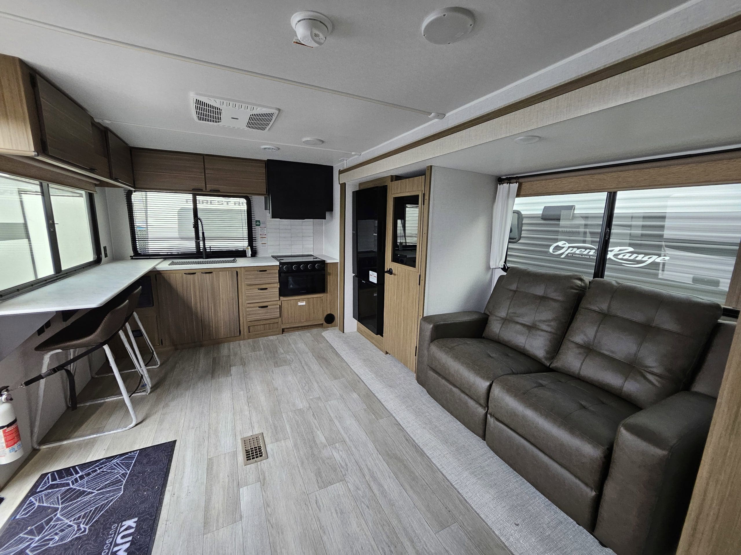 22ERAS Floorplan Wildwood Travel Trailers Features & OptionsNew FeaturesRetro/Metal Redesign4K Blade LightingJBL Speakers — Interior/Exterior4K Awning Blade LightingTFL Cabinet DoorsHeavy Duty Cabinet HingesFold-Out Trash CanVersa-Range (N/A 27RE 28VIEW & 32RET)Versa-Range Spice Rack (N/A 27RE 28VIEW & 32RET)Stylish Backsplash UpdateVersa-Flex: Desk Dinette & Chaise (Most Models)Lock & Groove Shiplap Islands (where applicable)Luminous Arched Radius PanelsExpanded Kitchen WindowStylish Roller