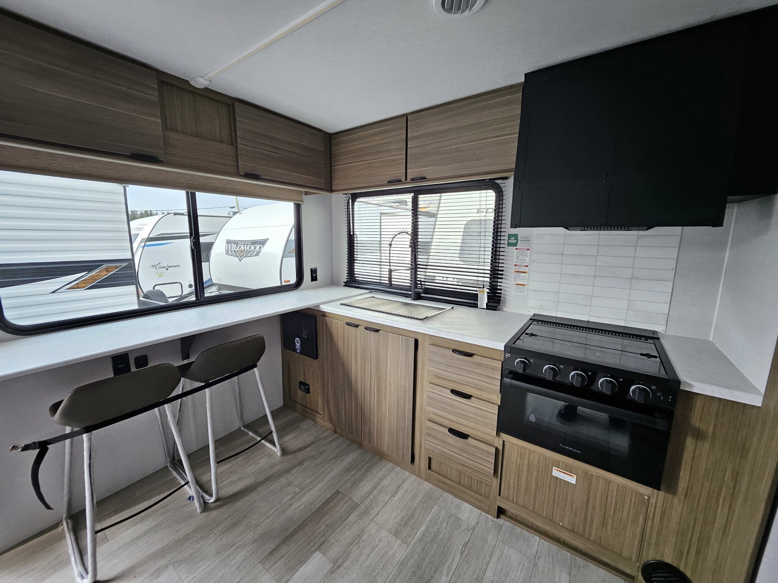 22ERAS Floorplan Wildwood Travel Trailers Features & OptionsNew FeaturesRetro/Metal Redesign4K Blade LightingJBL Speakers — Interior/Exterior4K Awning Blade LightingTFL Cabinet DoorsHeavy Duty Cabinet HingesFold-Out Trash CanVersa-Range (N/A 27RE 28VIEW & 32RET)Versa-Range Spice Rack (N/A 27RE 28VIEW & 32RET)Stylish Backsplash UpdateVersa-Flex: Desk Dinette & Chaise (Most Models)Lock & Groove Shiplap Islands (where applicable)Luminous Arched Radius PanelsExpanded Kitchen WindowStylish Roller