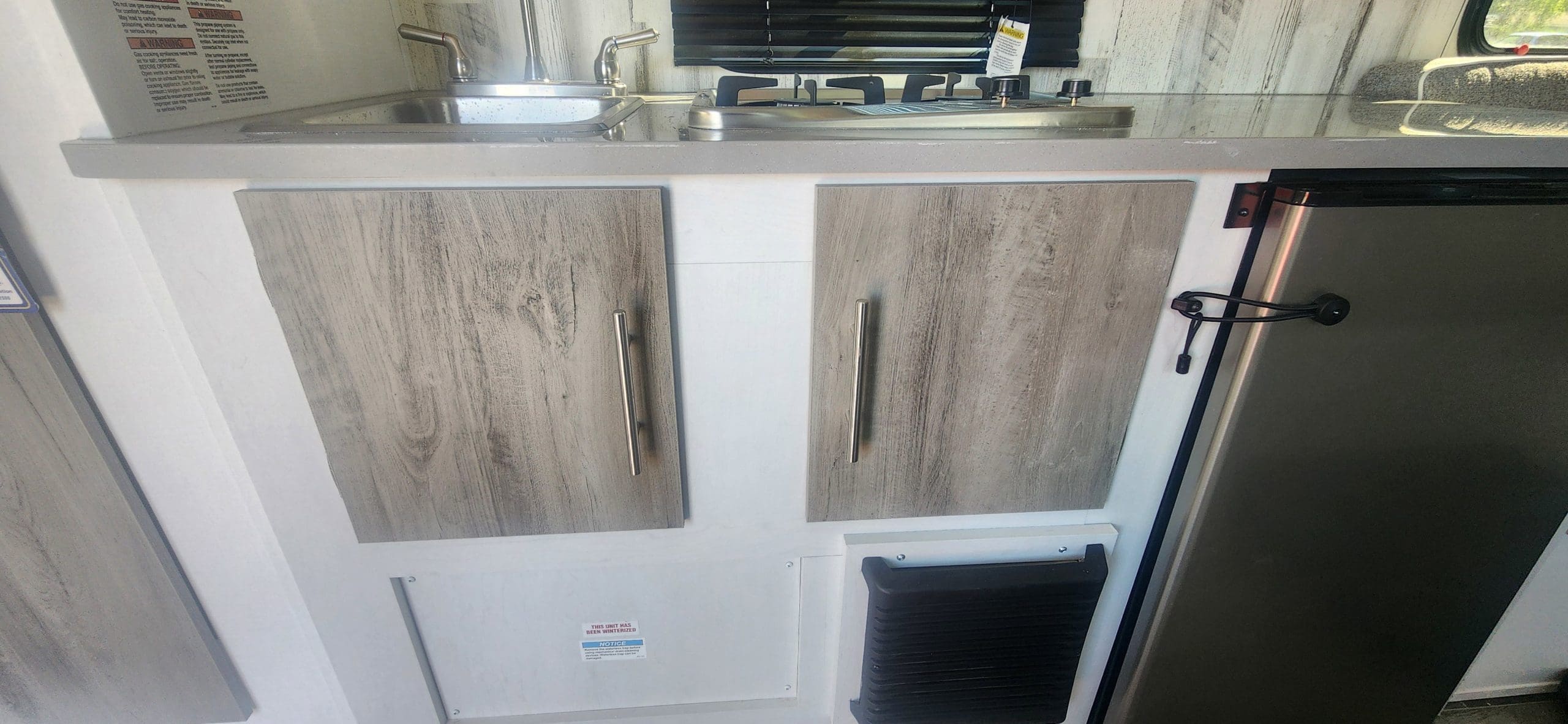 Standard FeaturesHydro-Lite Sidewalls13 Custom Lite-weight Aluminum Wheels2500# Axle w/Electric Brakes (3500# on RB Models)Rear Stabilizer JacksLED DOT Running Lights10GL Fresh/30GL Gray/15GL Black Water Tanks (10/30/30 16RB)On-Demand Tankless Hot Water HeaterSingle Bowl Stainless Steel SinkHigh Rise Kitchen FaucetShur-Flo Water Pump40 AMP ConverterBattery Disconnect SwitchSolid Surface Kitchen & TableWood Grain Cabinetry12volt 3.3Cu Refrigerator2-Burner Stainless Steel Stovetop18000 BTU Fur