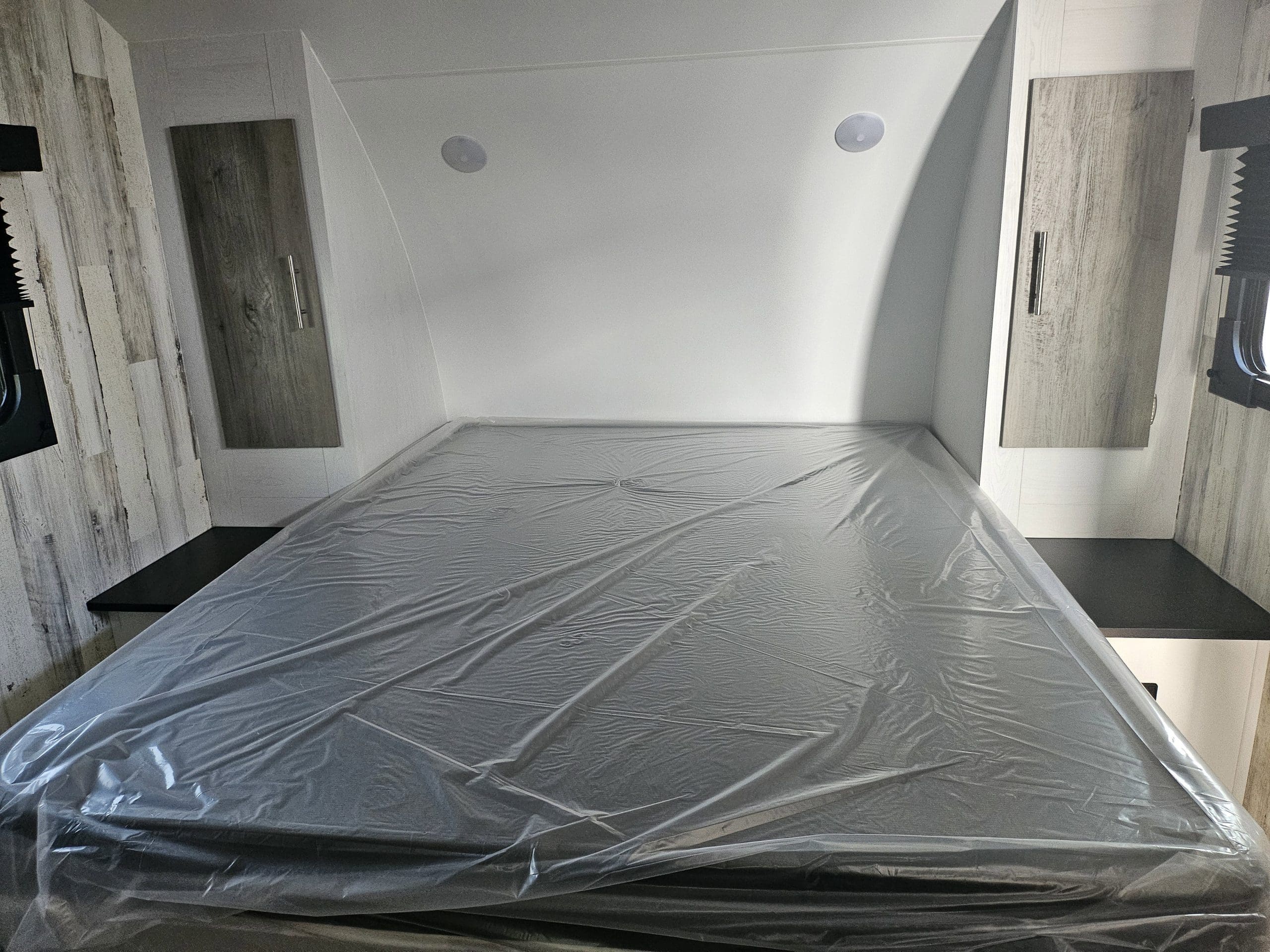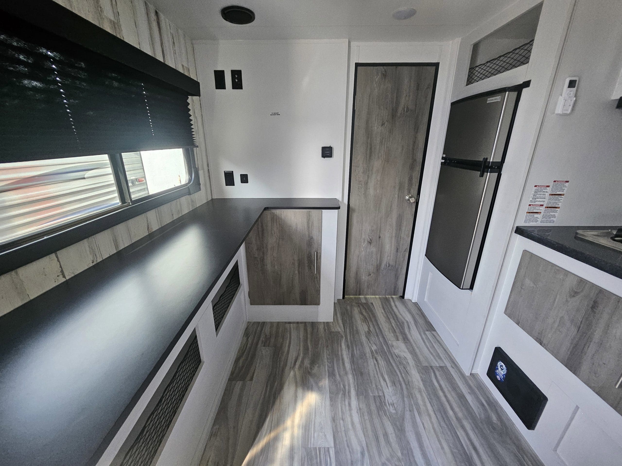 XL StandardsTwo Toned (White Walls/Grey Roof)- Hydro-Lite ExteriorAluminum Roof StructureLaminated Floor Construction30 Black/30 Grey/ 30 FreshFree Standing Indoor/OutdoorTableStainless Steel SinkHigh-Rise Kitchen FaucetShur-Flo Water Pump40 Amp Converter12V Refrigerator2-Burner Stainless Steel Stove18k BTU Furnace15k BTU AC/ 12k BTU Heat Pump Roof Mount UnitDetachable 30 Amp Power Cord20# LP TankMonitor PanelStereo w In/Outdoor SpeakersOutdoor ShowerBackup Camera Prep200 Watt Solar