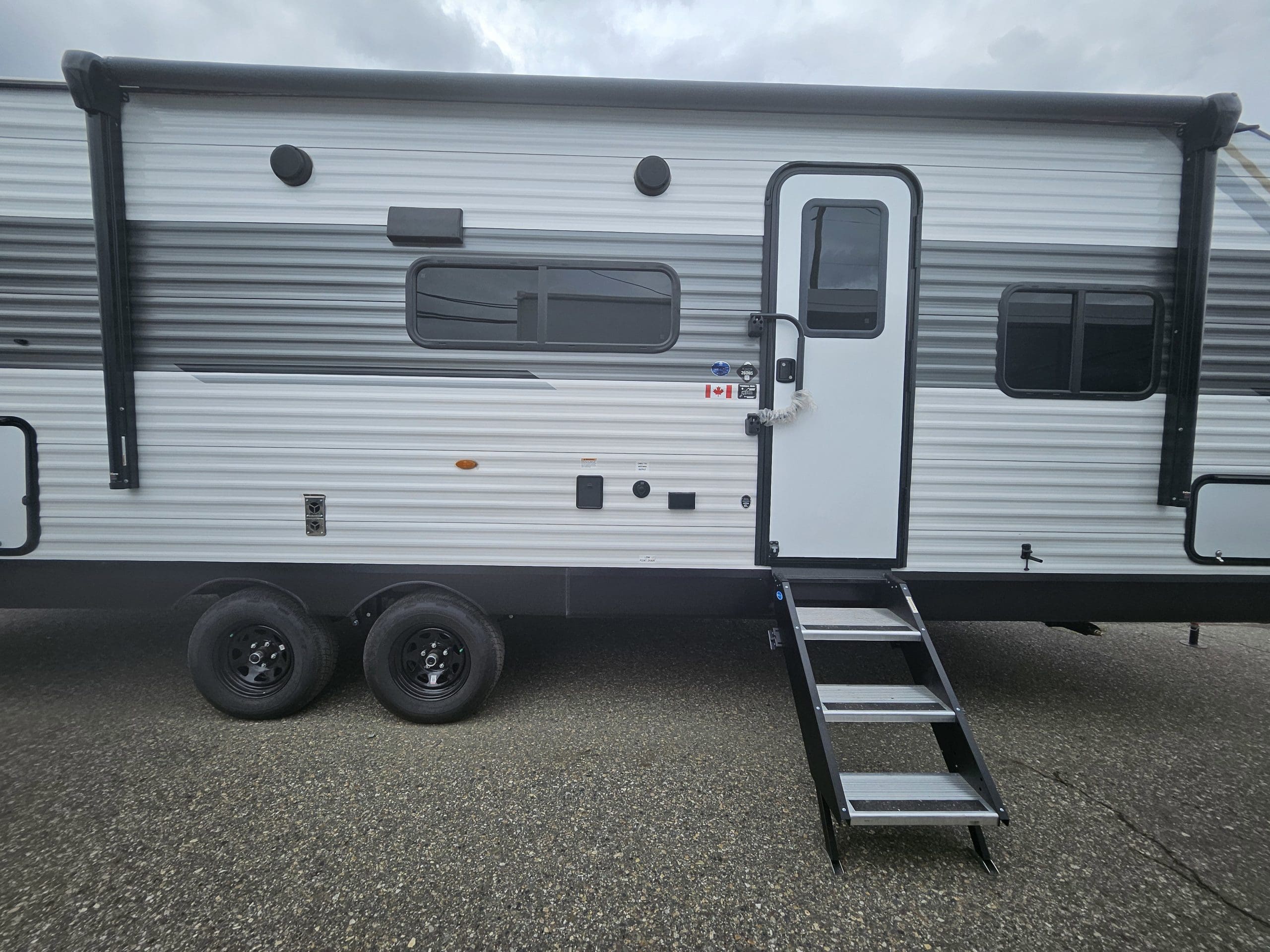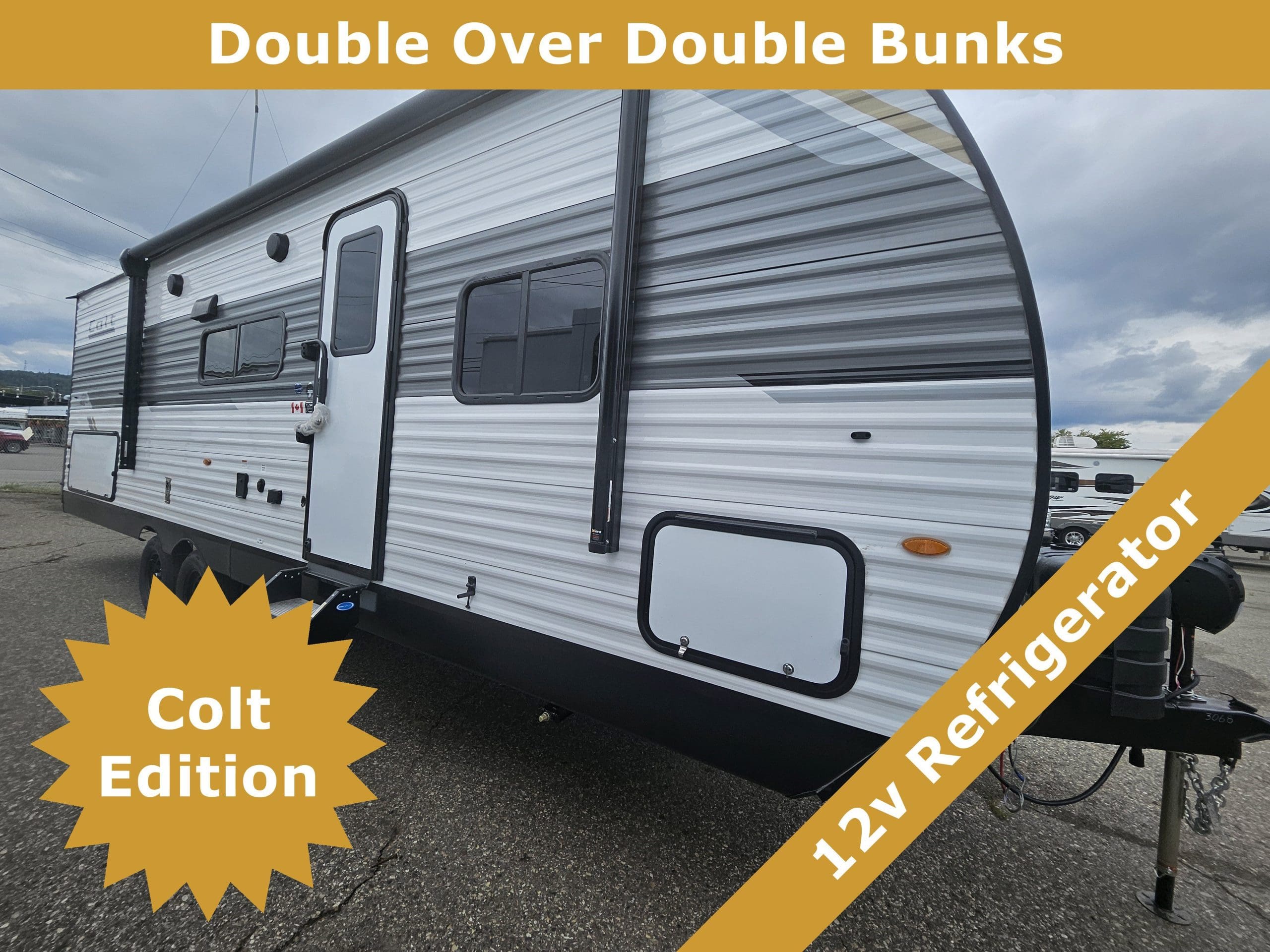 Standard Exterior Equipment:30 Amp ServiceAxle with easy-lube hubsBuilt-in A-frameCoax Cable TV JackForTruss Rafter SystemGalvanized wheel wellsLarge Exterior DownspoutsLP Quick Connect (n/a CTR edition)Nitrogen Filled Radial TiresPVC Roofing Membrane (limited lifetime warranty)Self-Adjusting Electric BrakesStandard Interior Equipment300 lb. Rated Single Bunk Beds600 lb. Rated Double Bunk BedsDome Style TV AntennaFoot Flush Marine-Grade ToiletFull Extension Heavy-Duty Ball-Bearing Drawer Guide