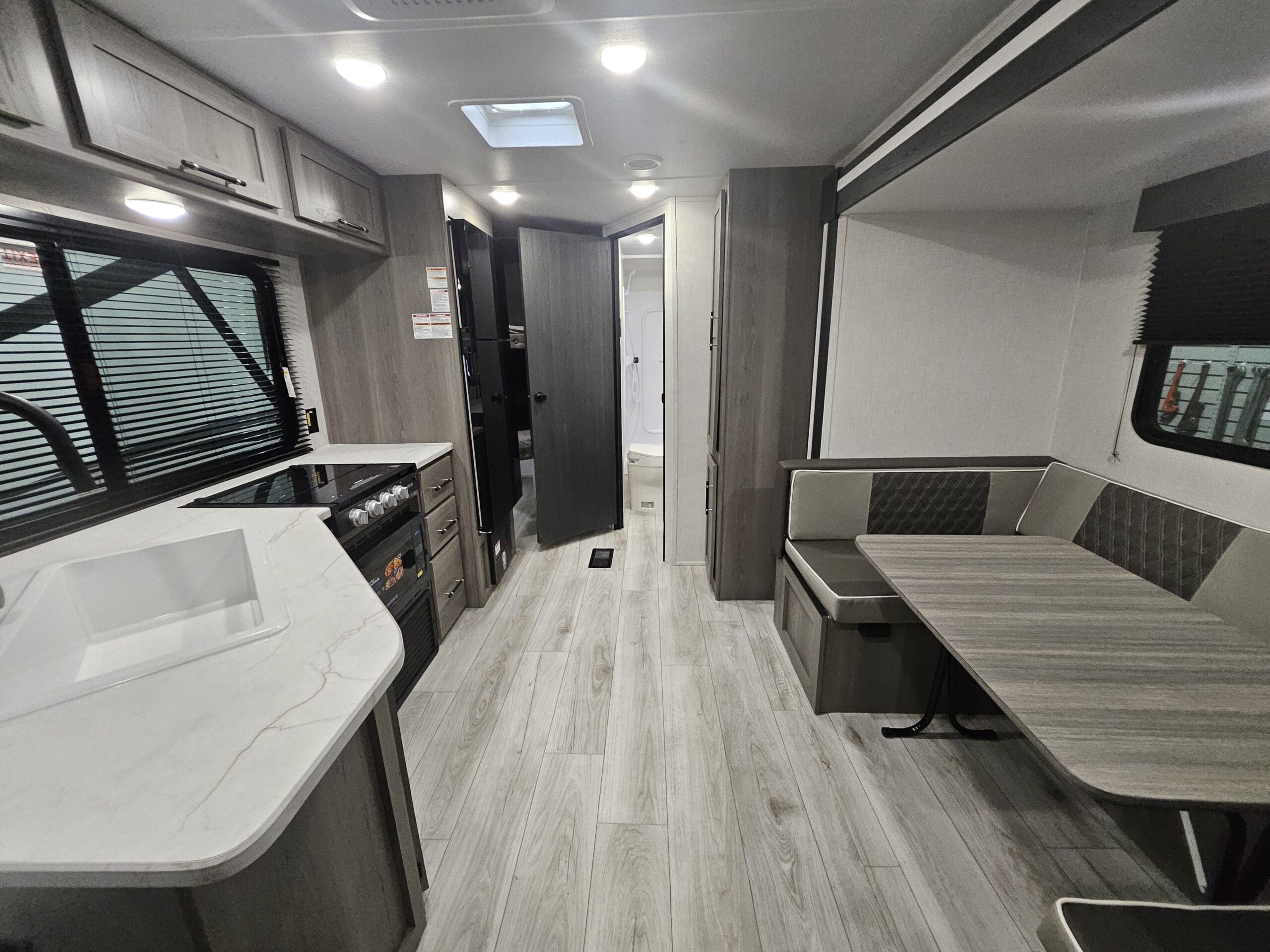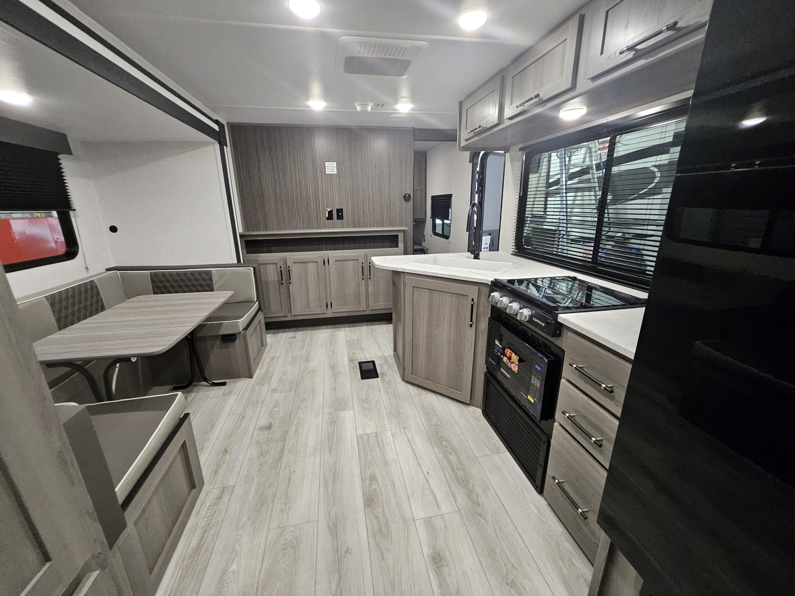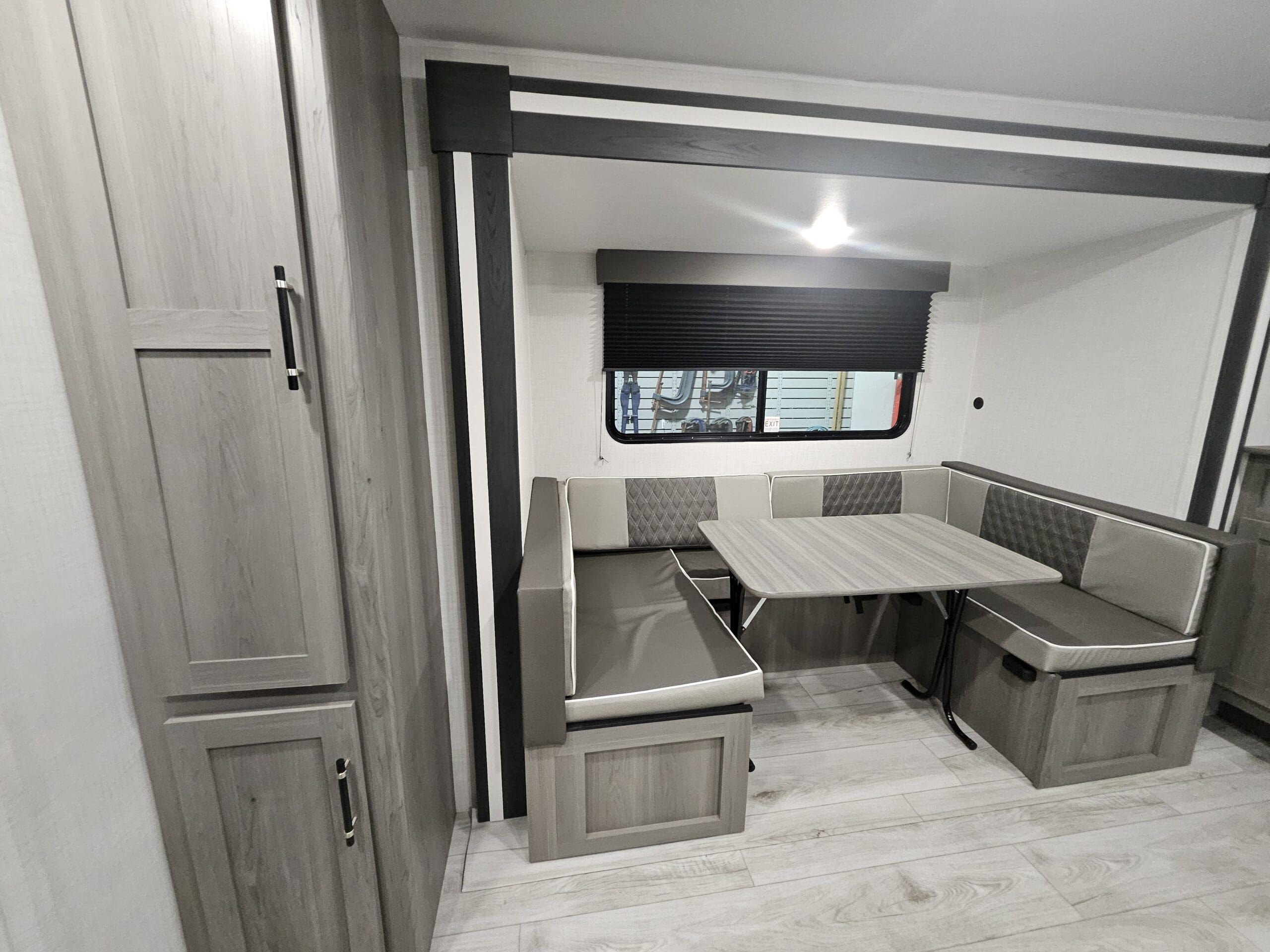 • U-Shaped Dinette Slide: The single slide-out houses a large U-shaped dinette, which creates a more open living area and converts into an additional bed.