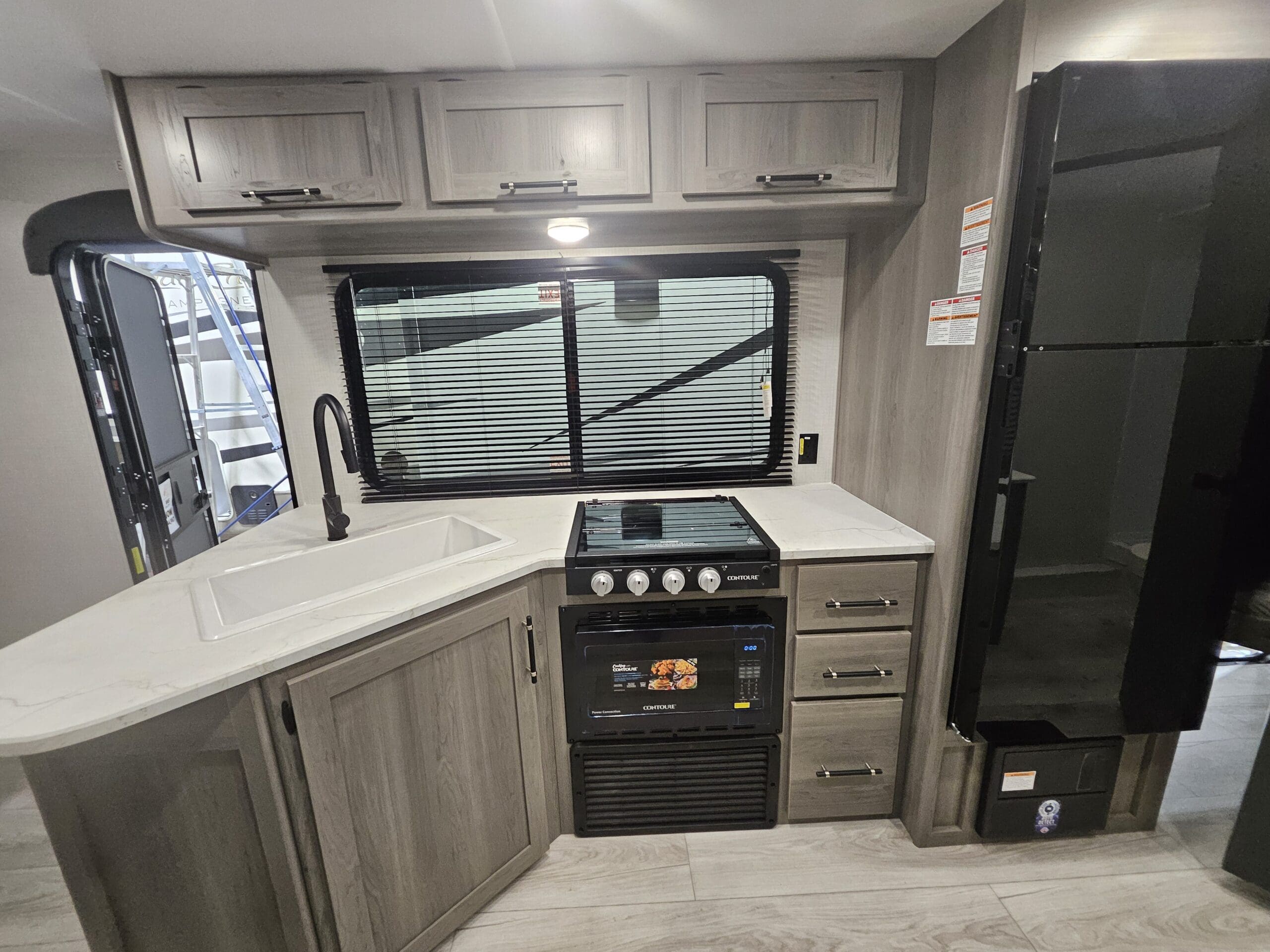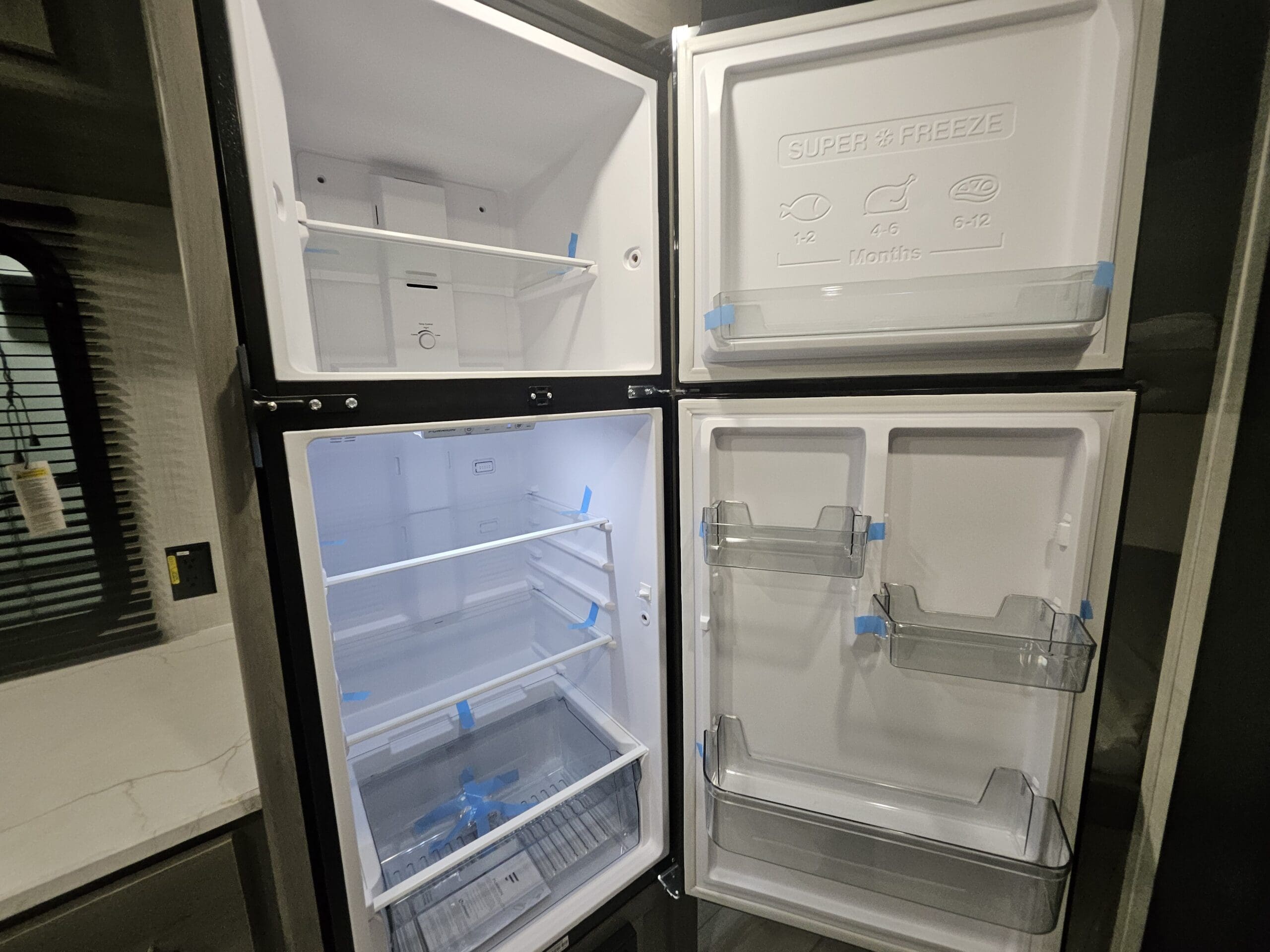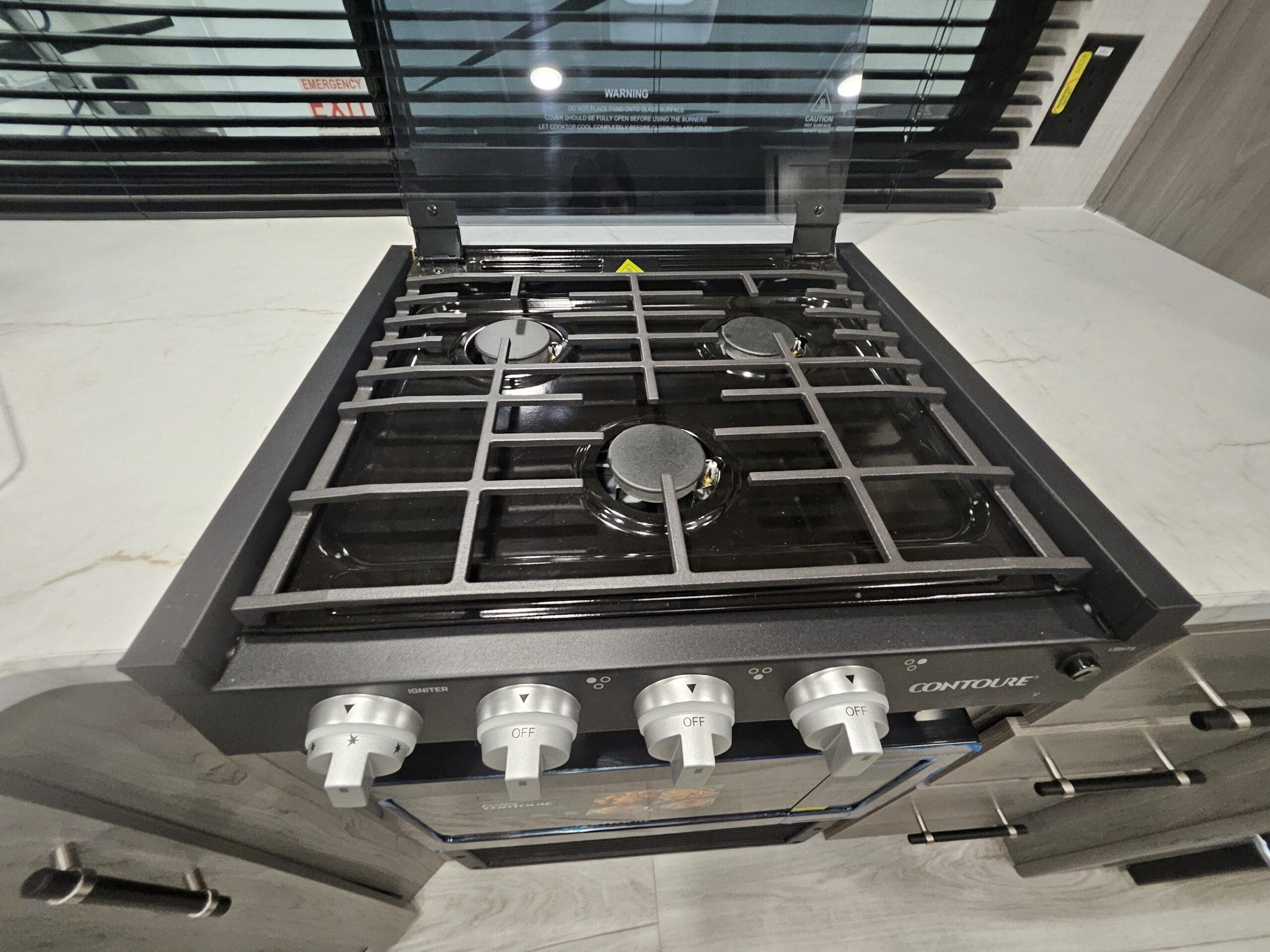 • Kitchen & Storage: Includes a 10 cu. ft. 12V refrigerator, a 3-burner cooktop, and a dedicated pantry—a rare find in a trailer of this size.