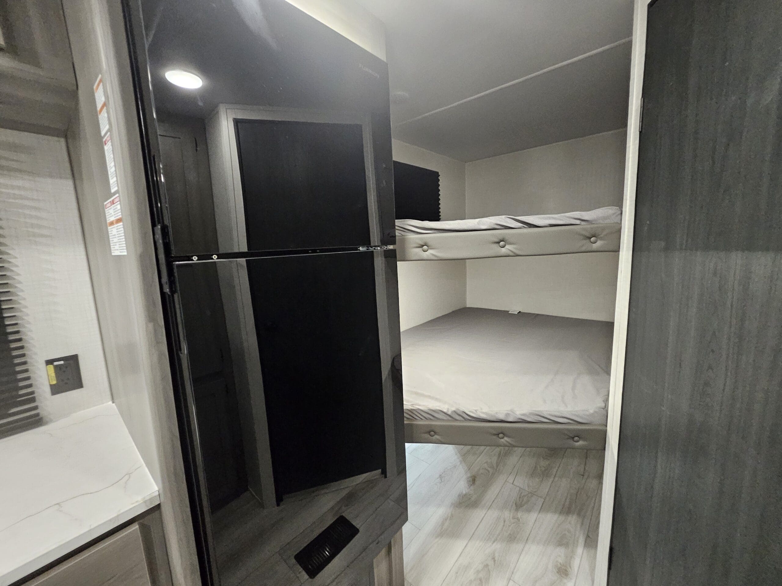 • Double Bunks: Large double-over-double bunks in the rear provide plenty of space for kids or guests. The bottom bunk often features a flip-up function for extra gear storage during transit.