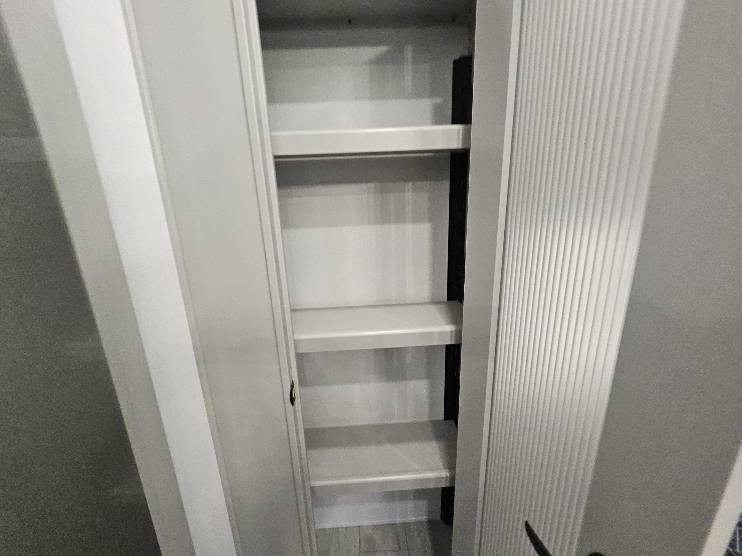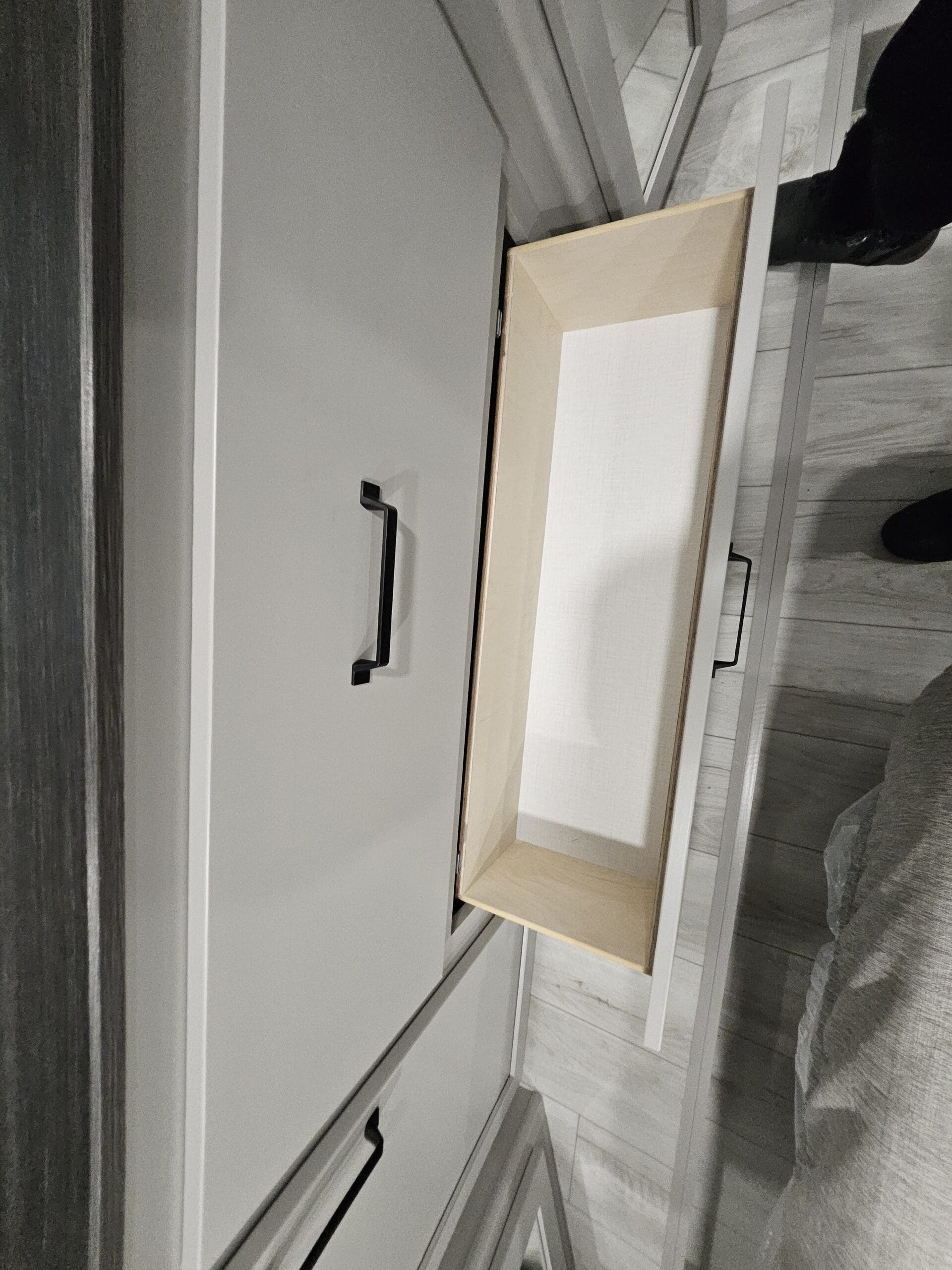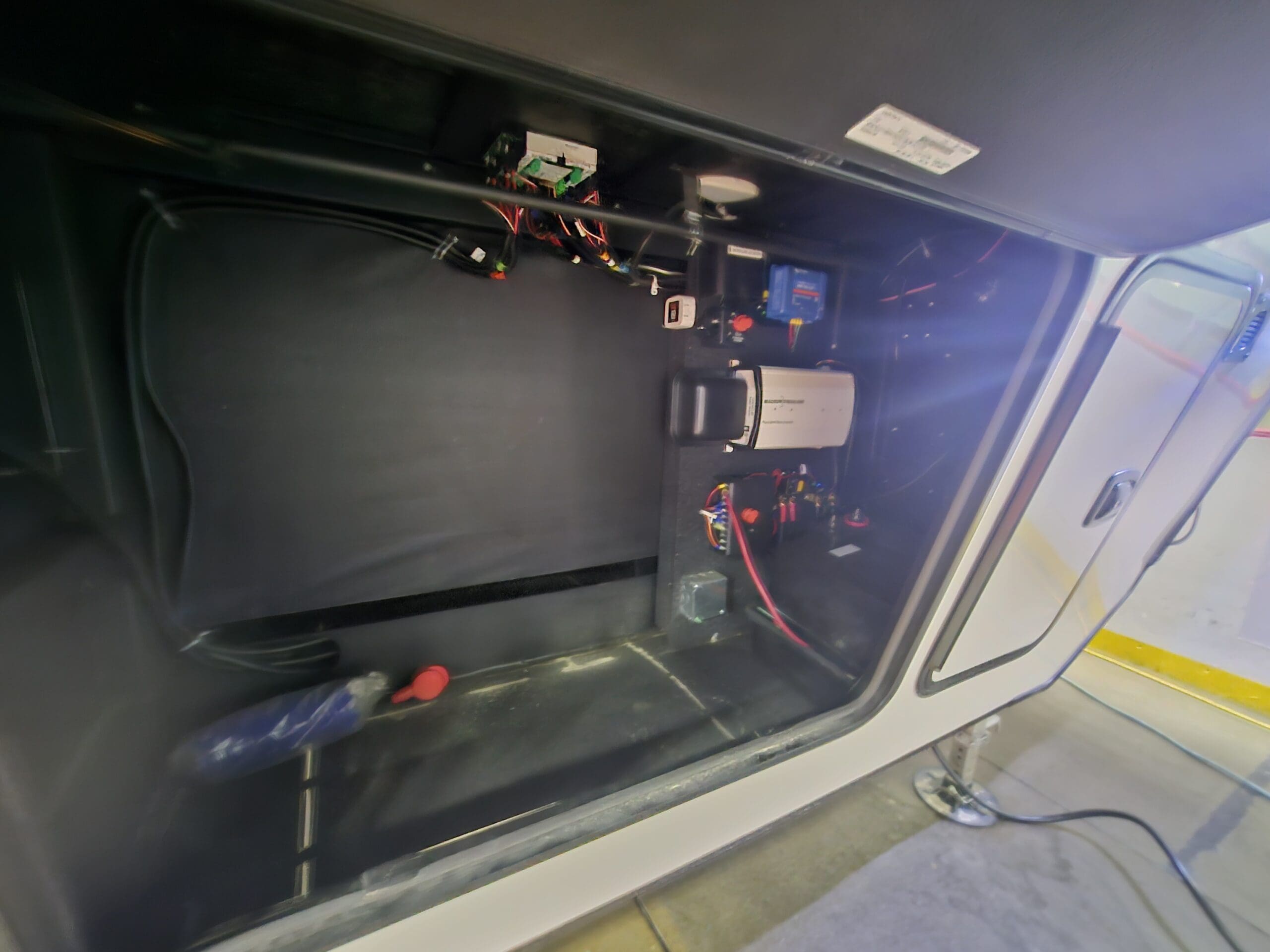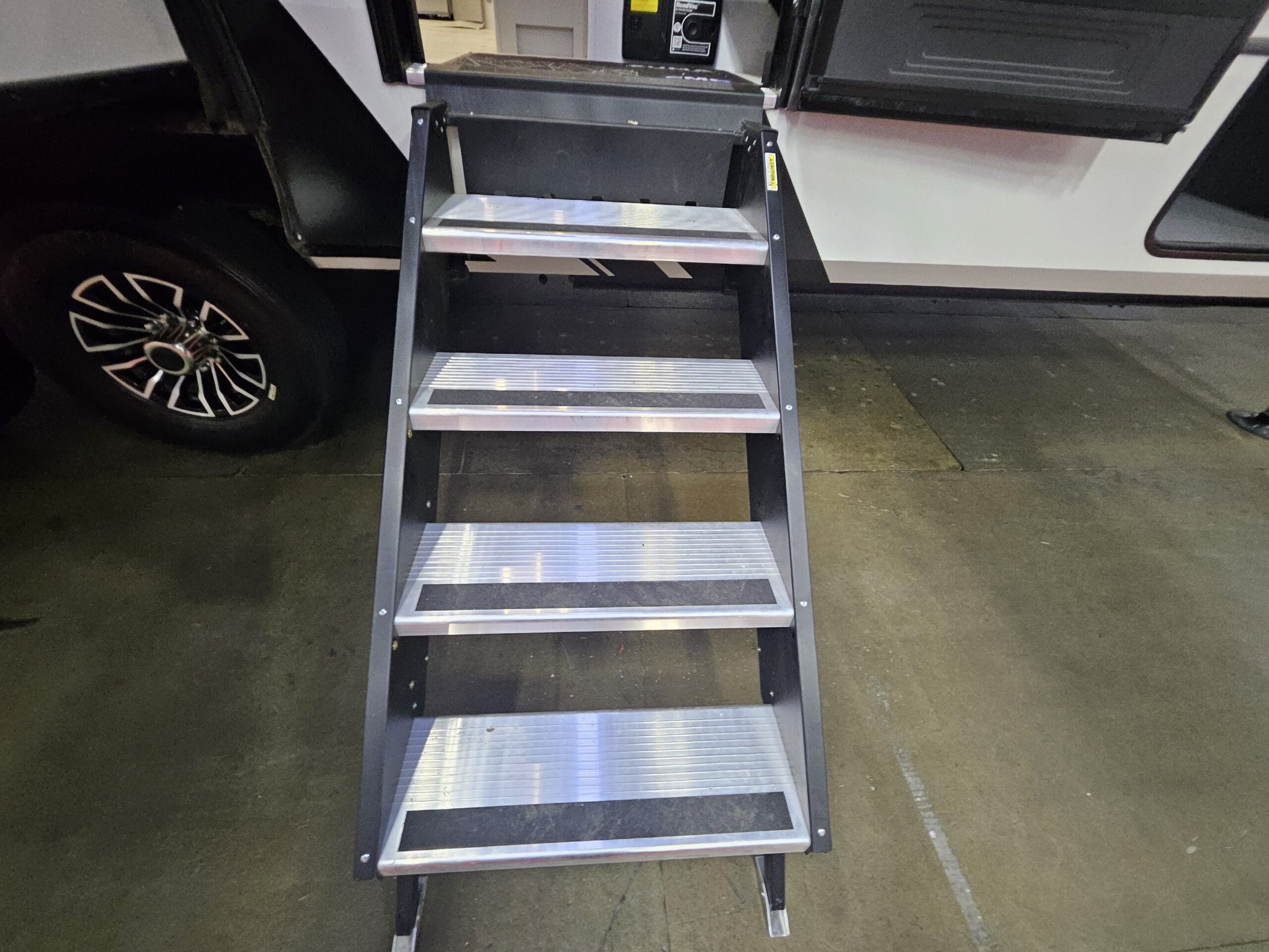 Private Master Suite: The front of the unit houses a private bedroom with a standard King bed. One of the most unique features is the patent-pending front windshield, which provides a view from the front cap. It also includes a dedicated closet prepped for a washer/dryer.
