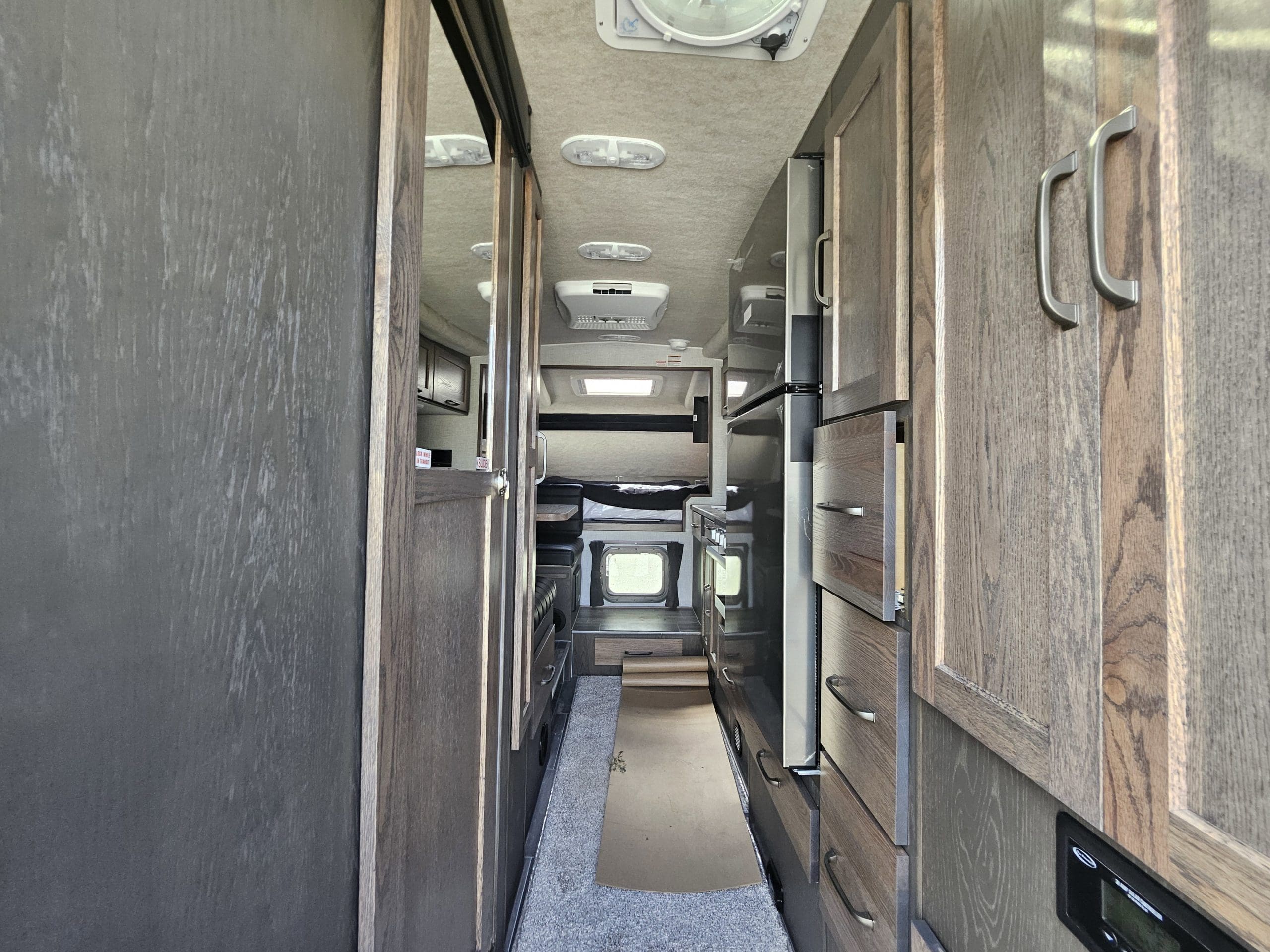Features600 Watts of Solar Panel2-12v/USB Charging Station60x80 Queen MattressAir Conditioner 11000 BTUAwning 10’5 Power SideAwning 7′ Power RearBasement Storage TrayCab-Thru WindowCarpet-RemovableDeep Stainless Steel SinkHeki Thermal SkylightAcrylic Thermal WindowsElectric Jacks – w/remoteMaxx Air Fa w/remoteFour Season PackageHeated BasementLeatherette Seating SurfaceMicrowave20000 BTU auto light furnace6-Year Structural WarrantyPortable Generator StorageBedroom Privacy DrapeRear Bumper Pati