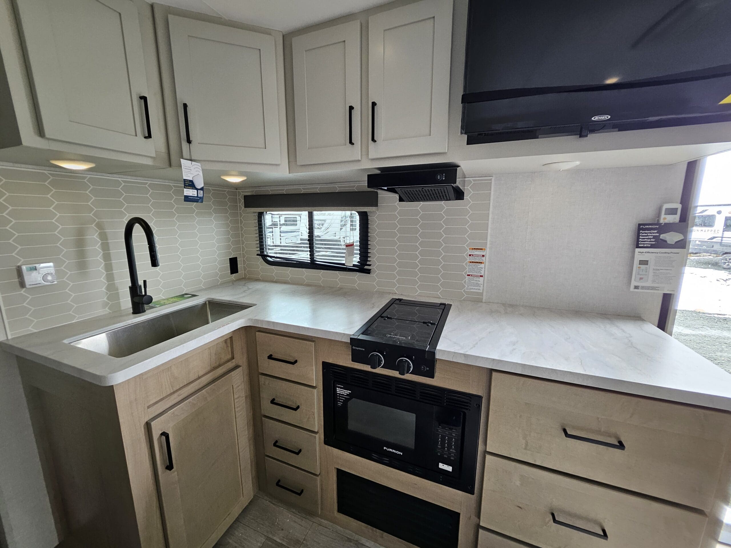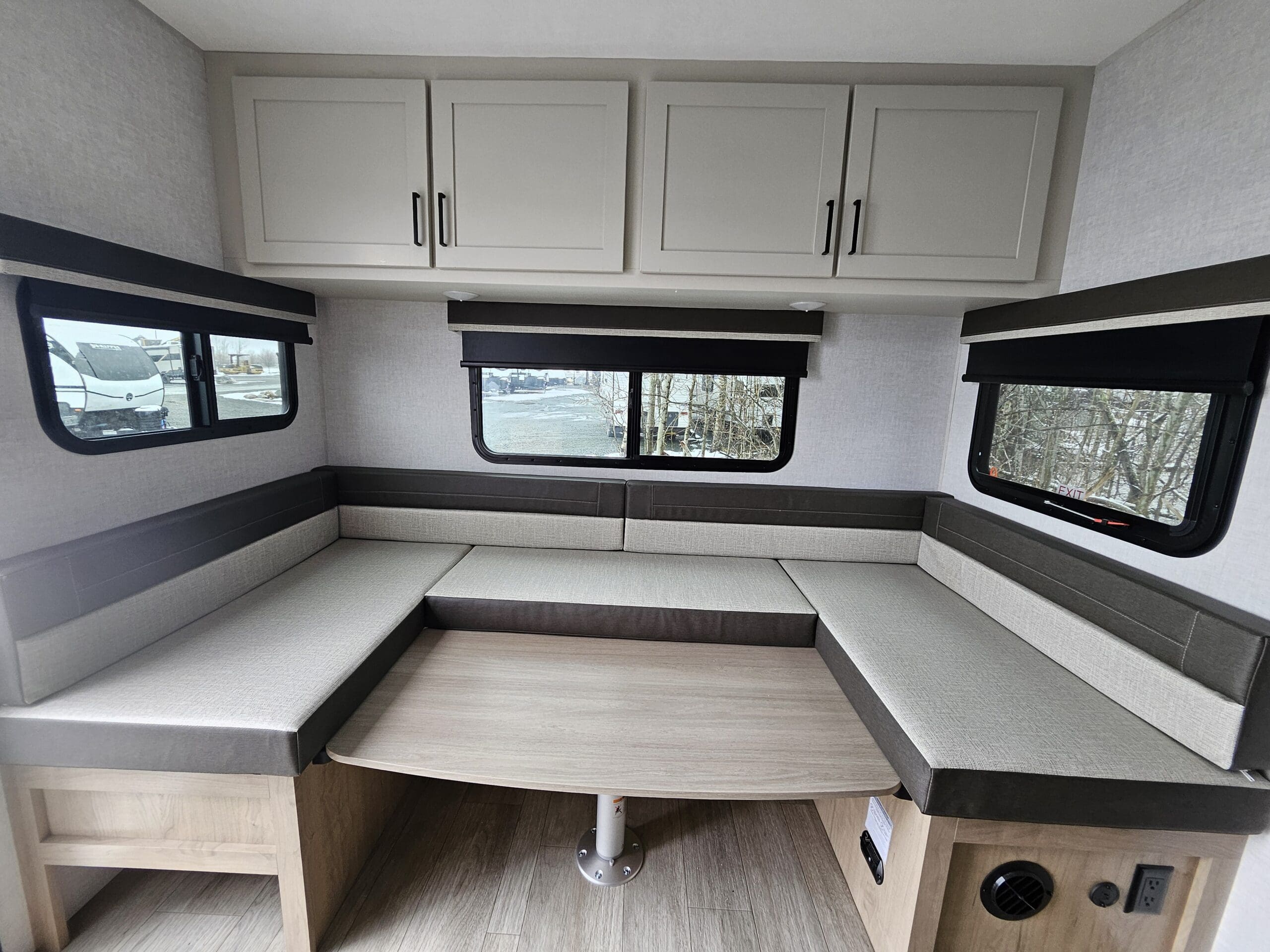 The E-Series 25RUD is a versatile couple’s coach designed for comfort and connection. Its spacious 92” X 45” U-dinette anchors the living area, while the private front bedroom features a true 60” x 80” queen bed. With a fully equipped kitchen, smart storage, and all the other necessary essentials, the 25RUD delivers value without compromises.