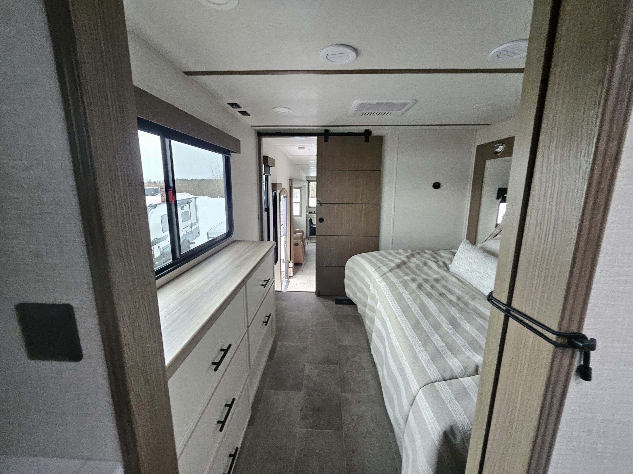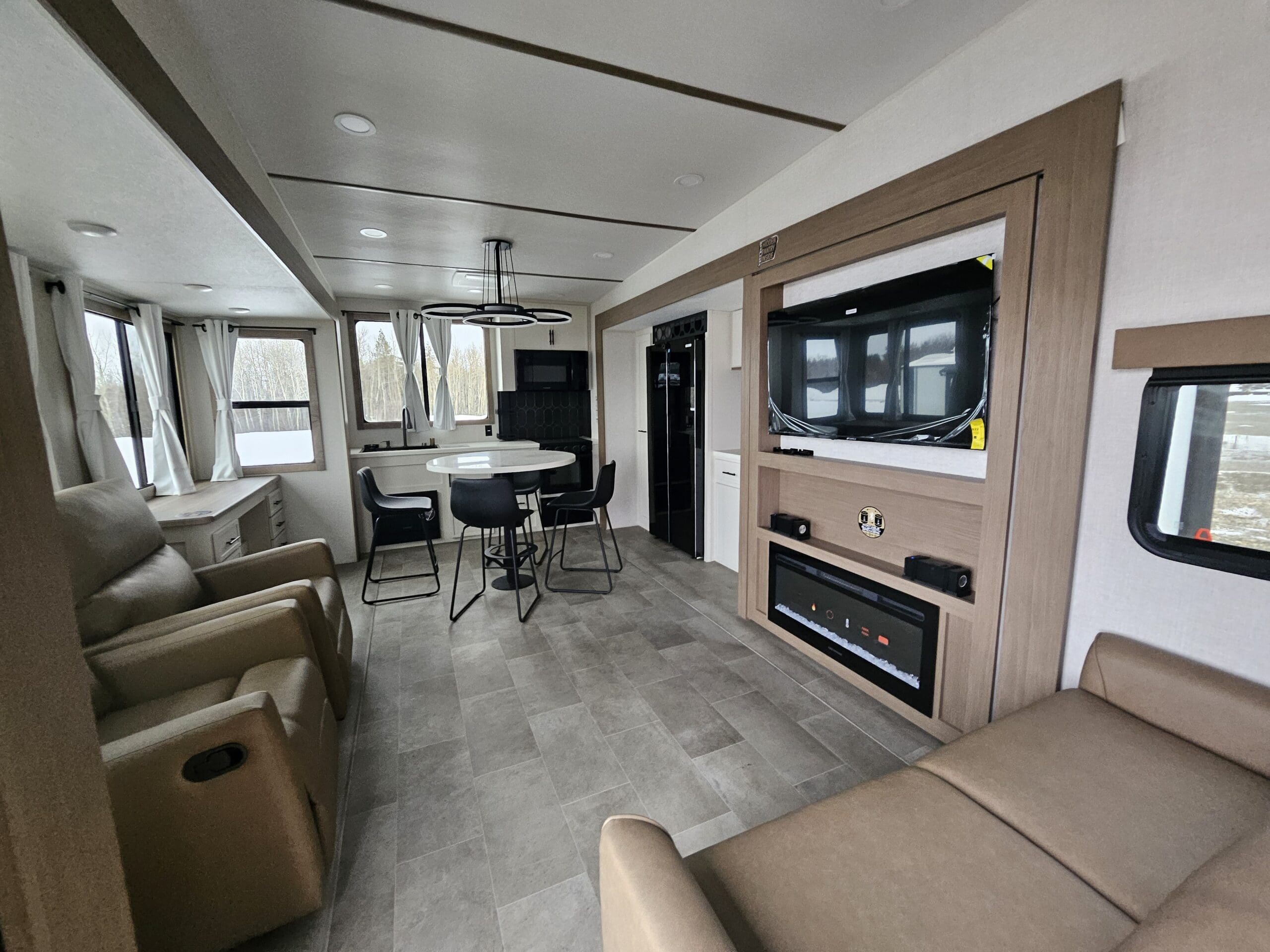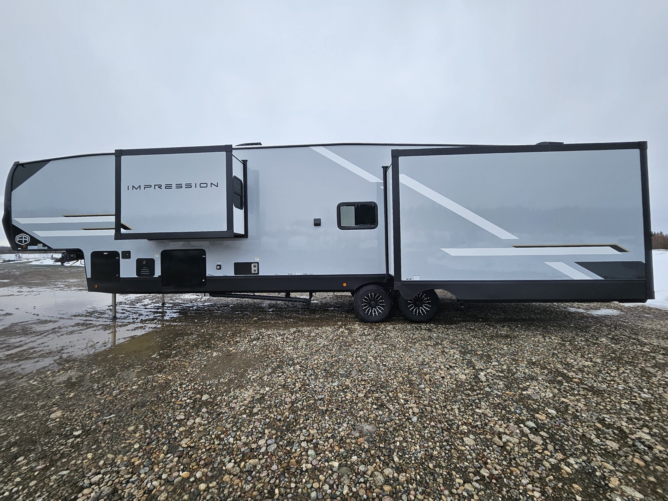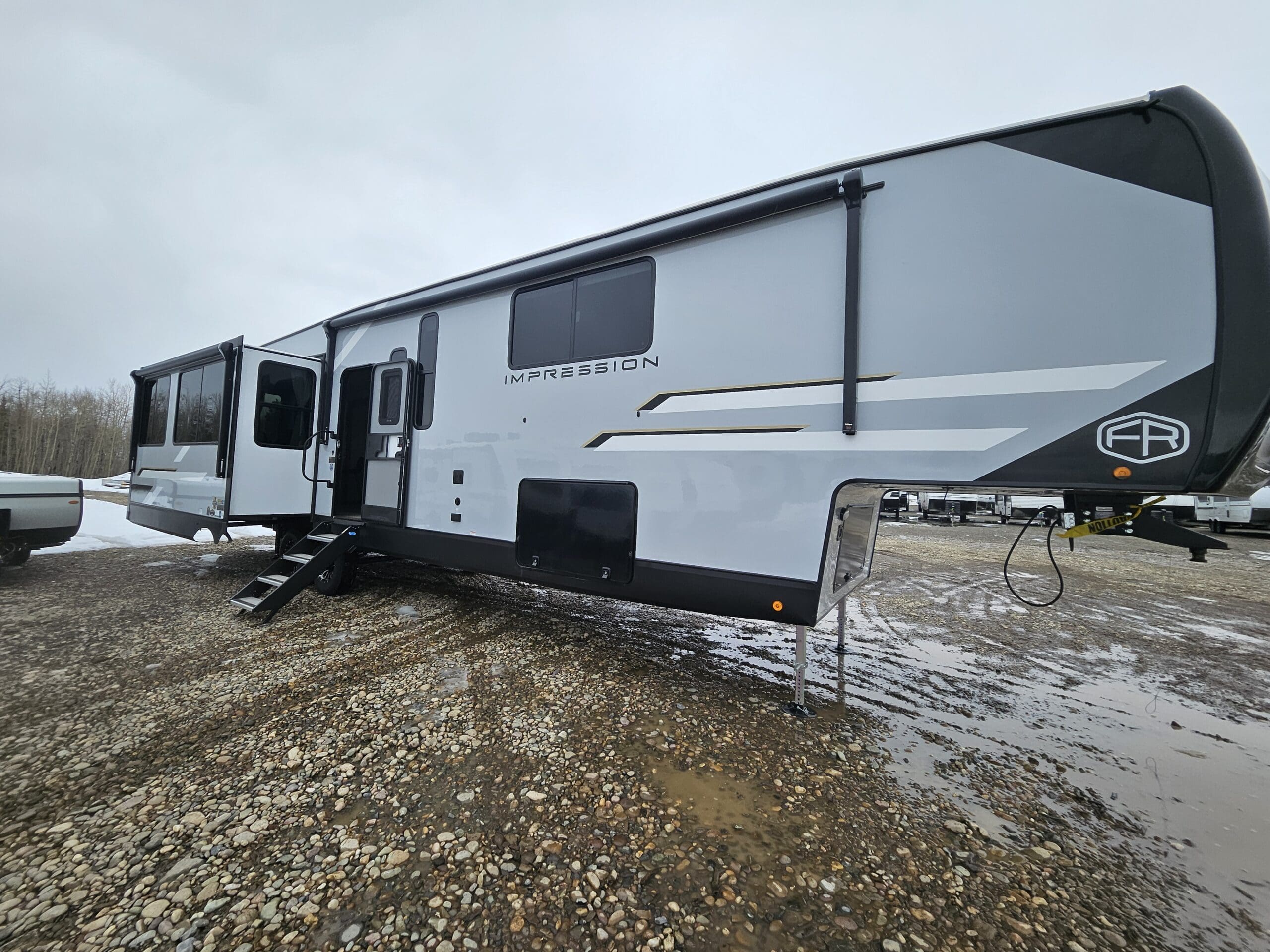 The Forest River Impression 360MYR is a mid-profile fifth wheel designed for travellers who want a “best of both worlds” layout. It’s particularly famous for its master bedroom & on-suite configuration, making it a favourite for couples, remote workers, lake lots, or those who spend their winters snow-birding.