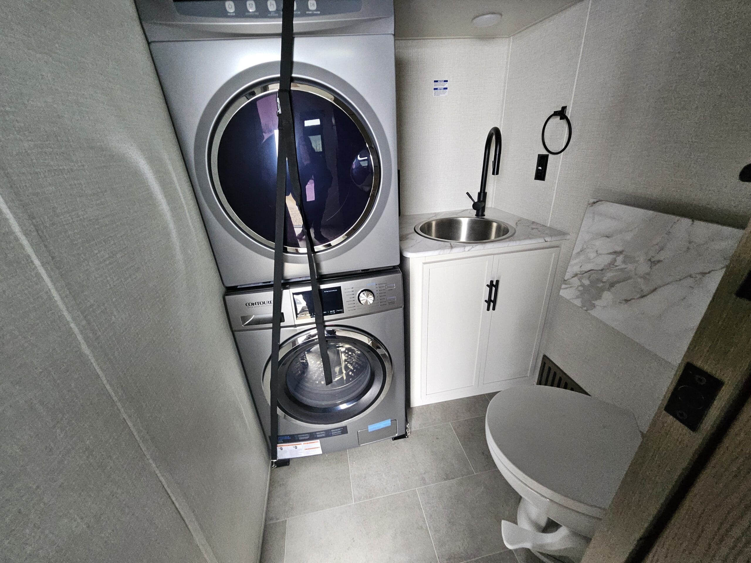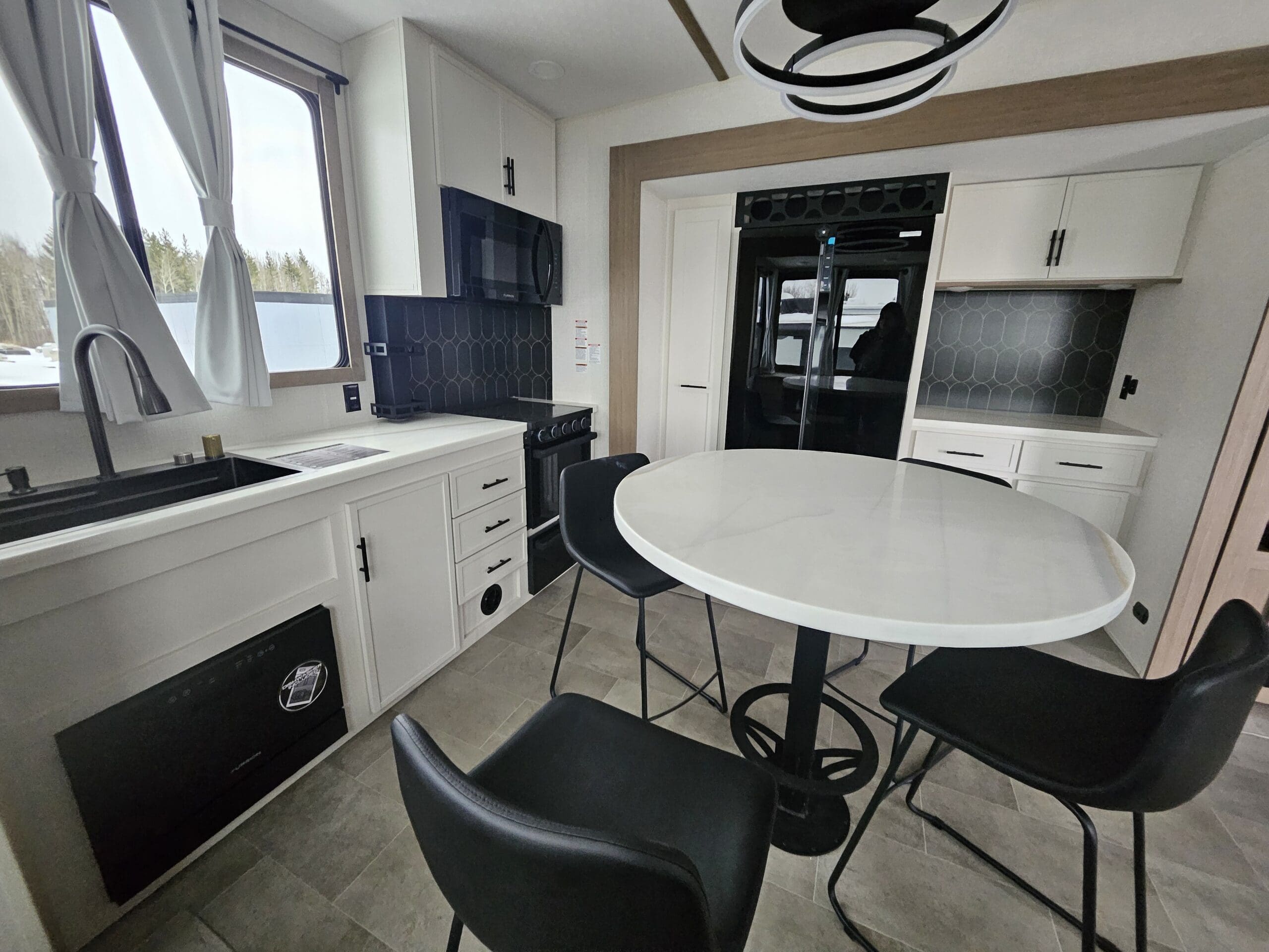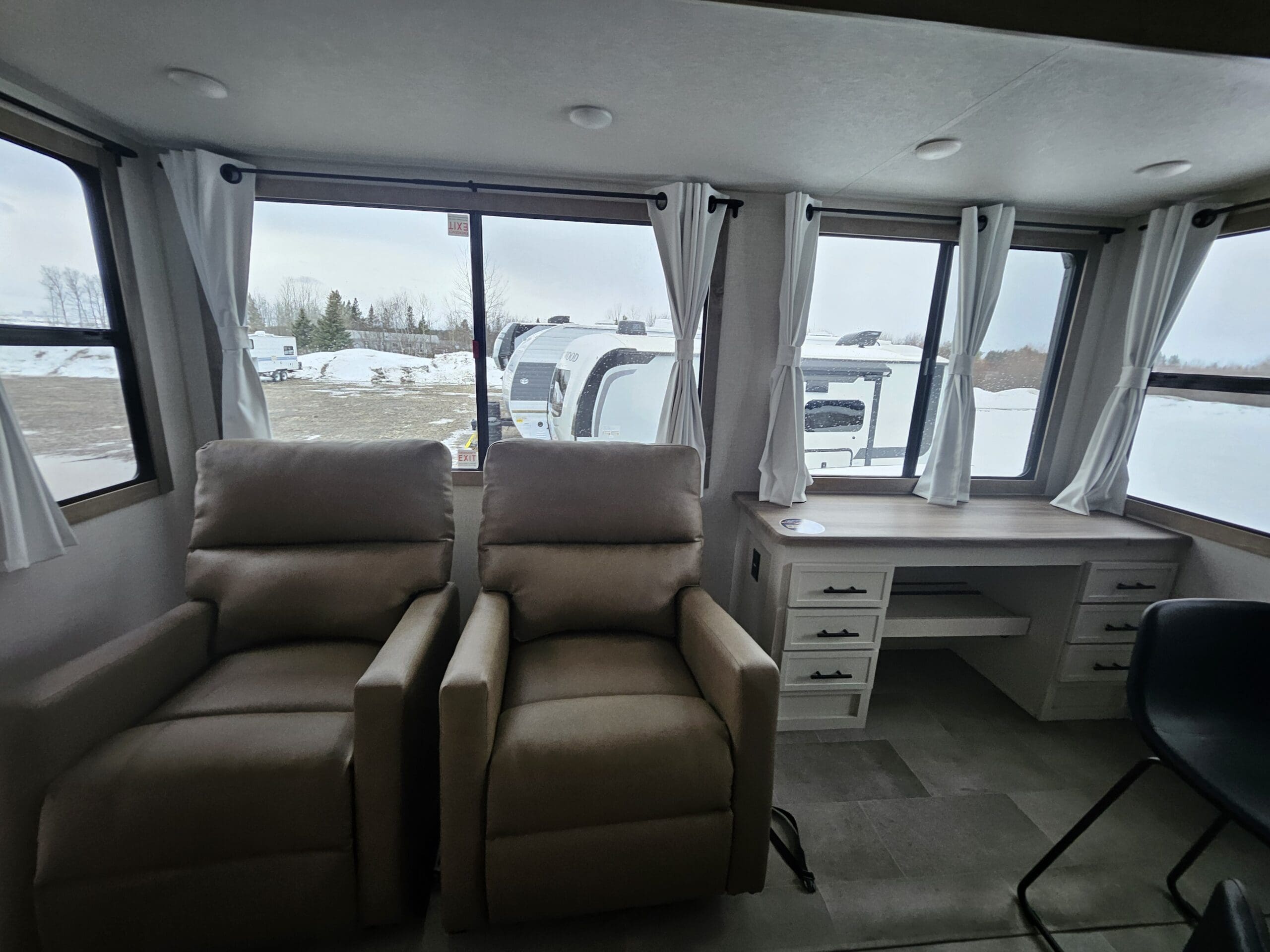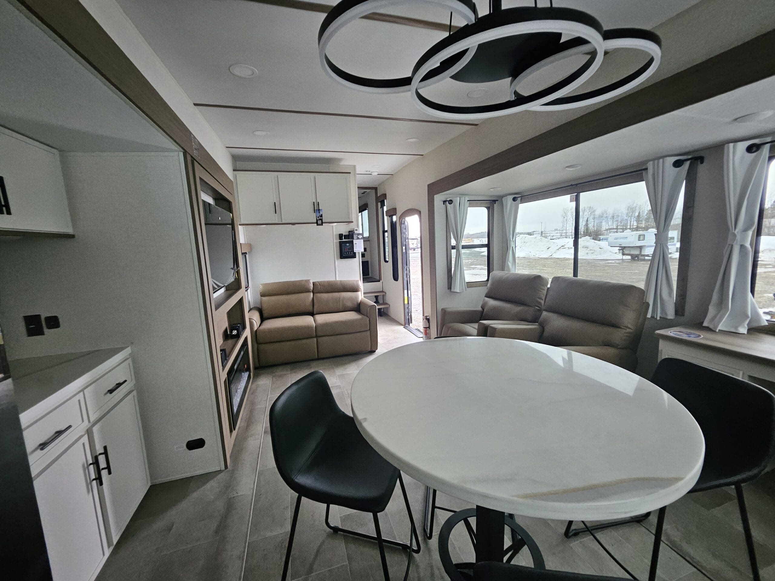 Opposing Slides: These significantly widen the floor space, making it feel more like a studio apartment than a trailer.