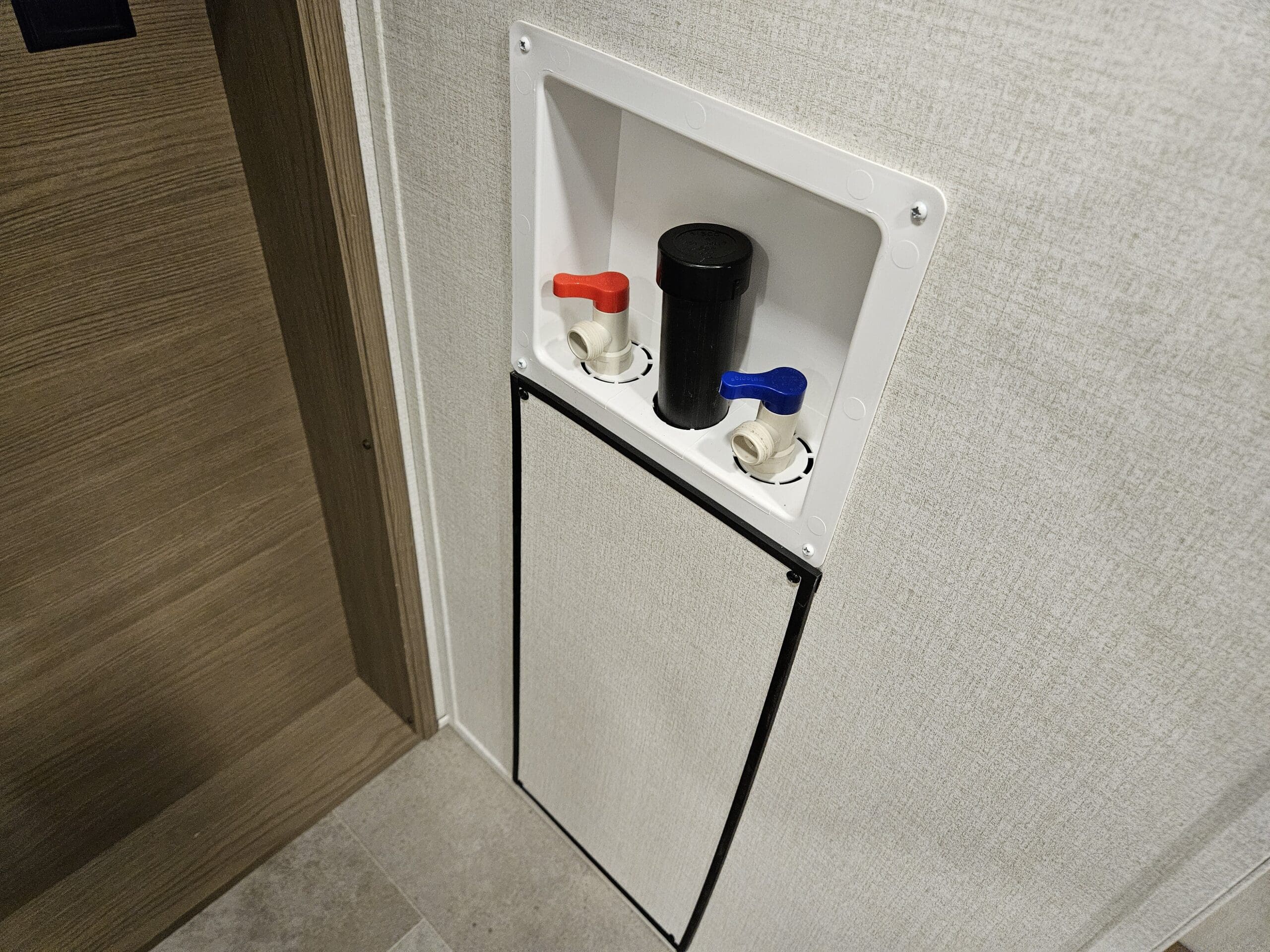 Master Bedroom: Features a King bed with Versa-Tilt automated bed incliner, a dresser, and a large wardrobe with full-size stackable washer/dryer prep.