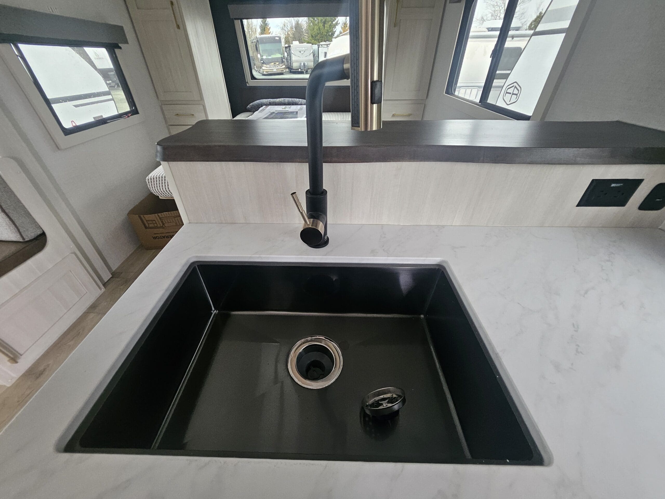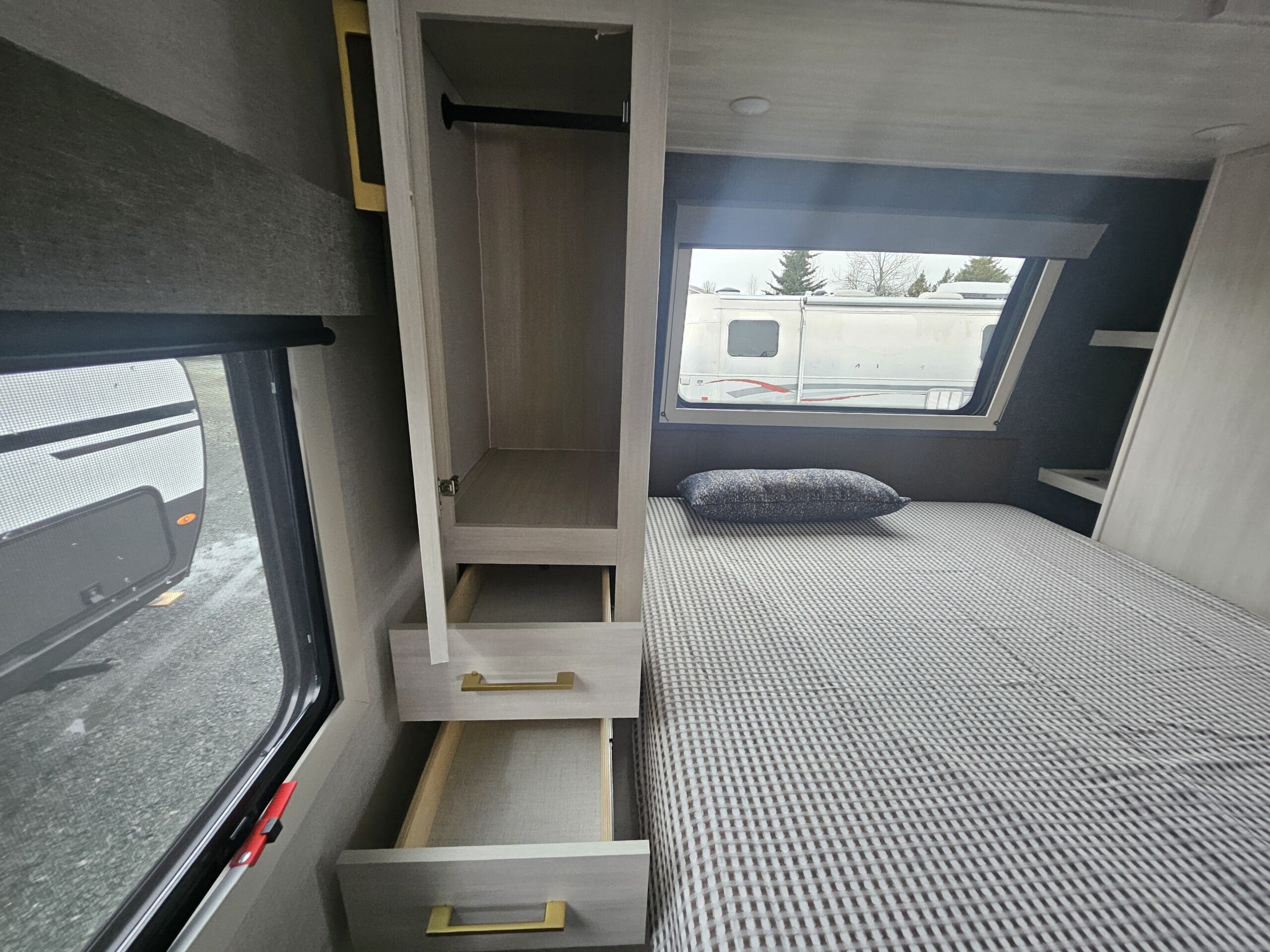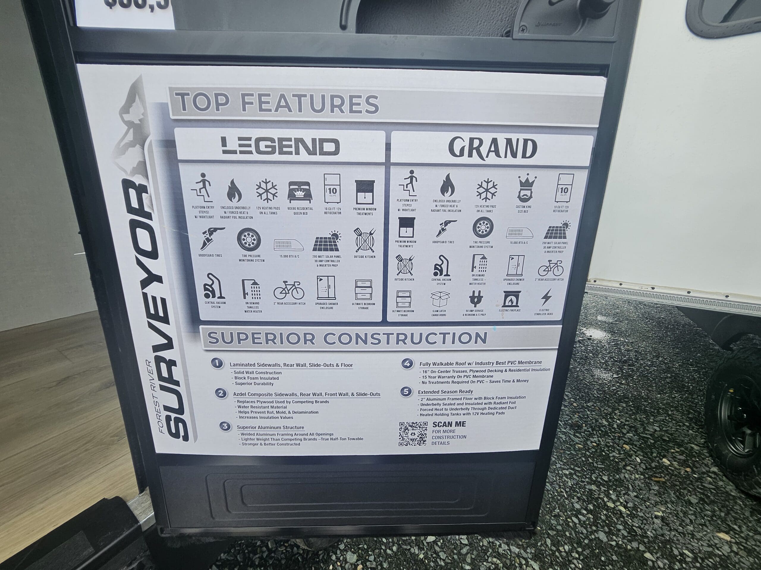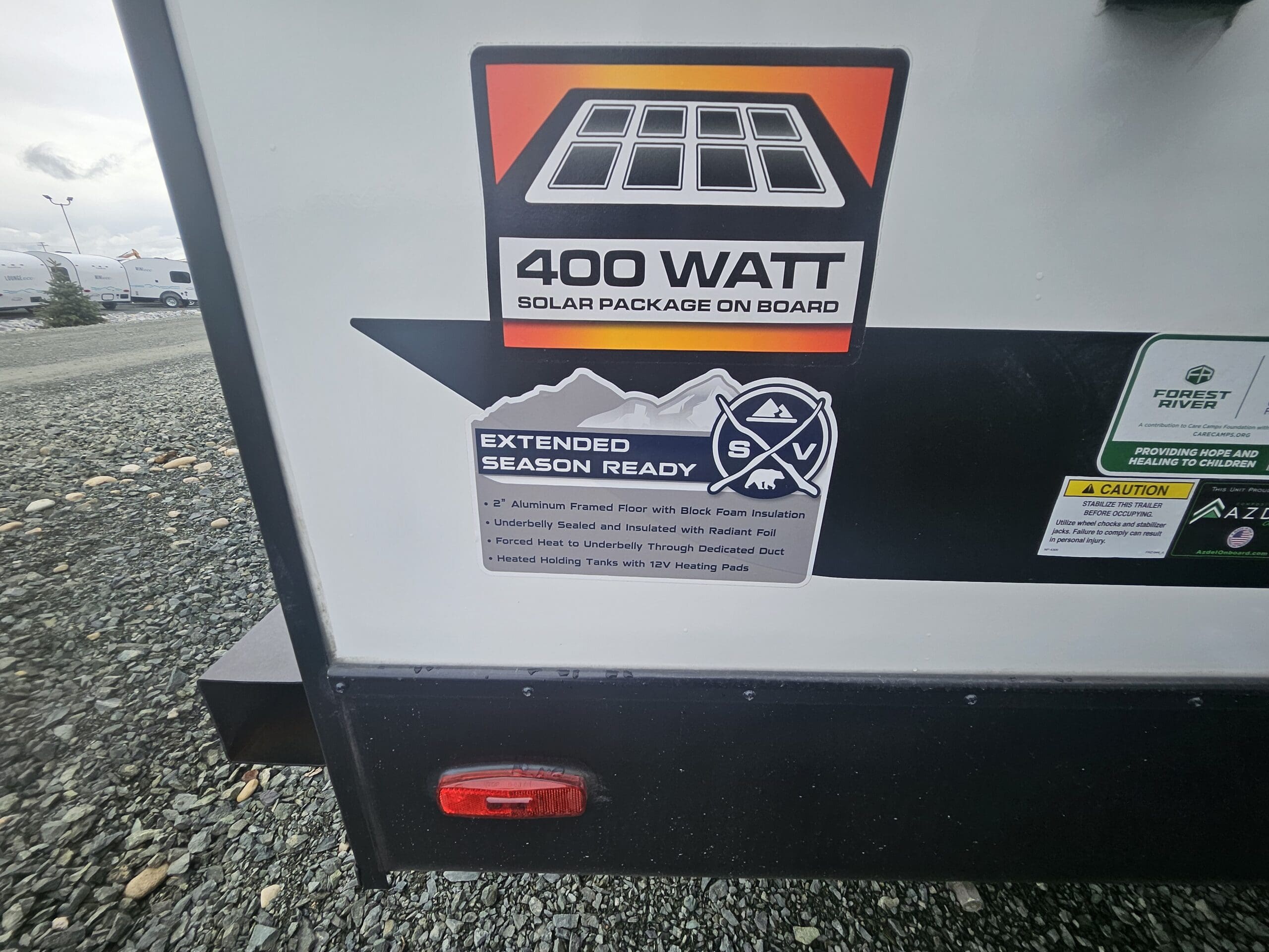 Construction Quality: Built with Azdel composite panels (which won’t rot or delaminate like wood) and a PVC roof membrane. It also comes standard with Goodyear tires and a Tire Pressure Monitoring System (TPMS).