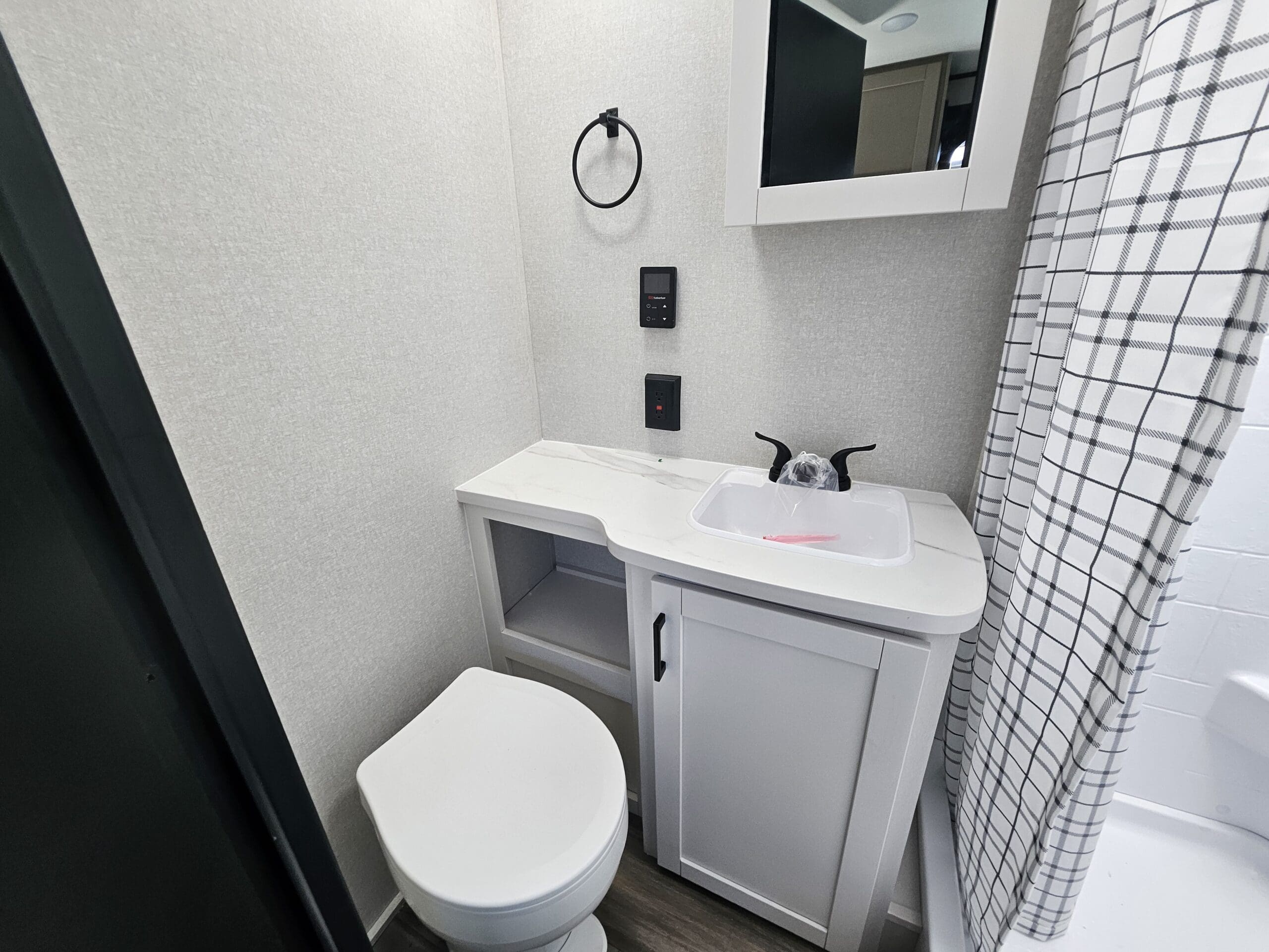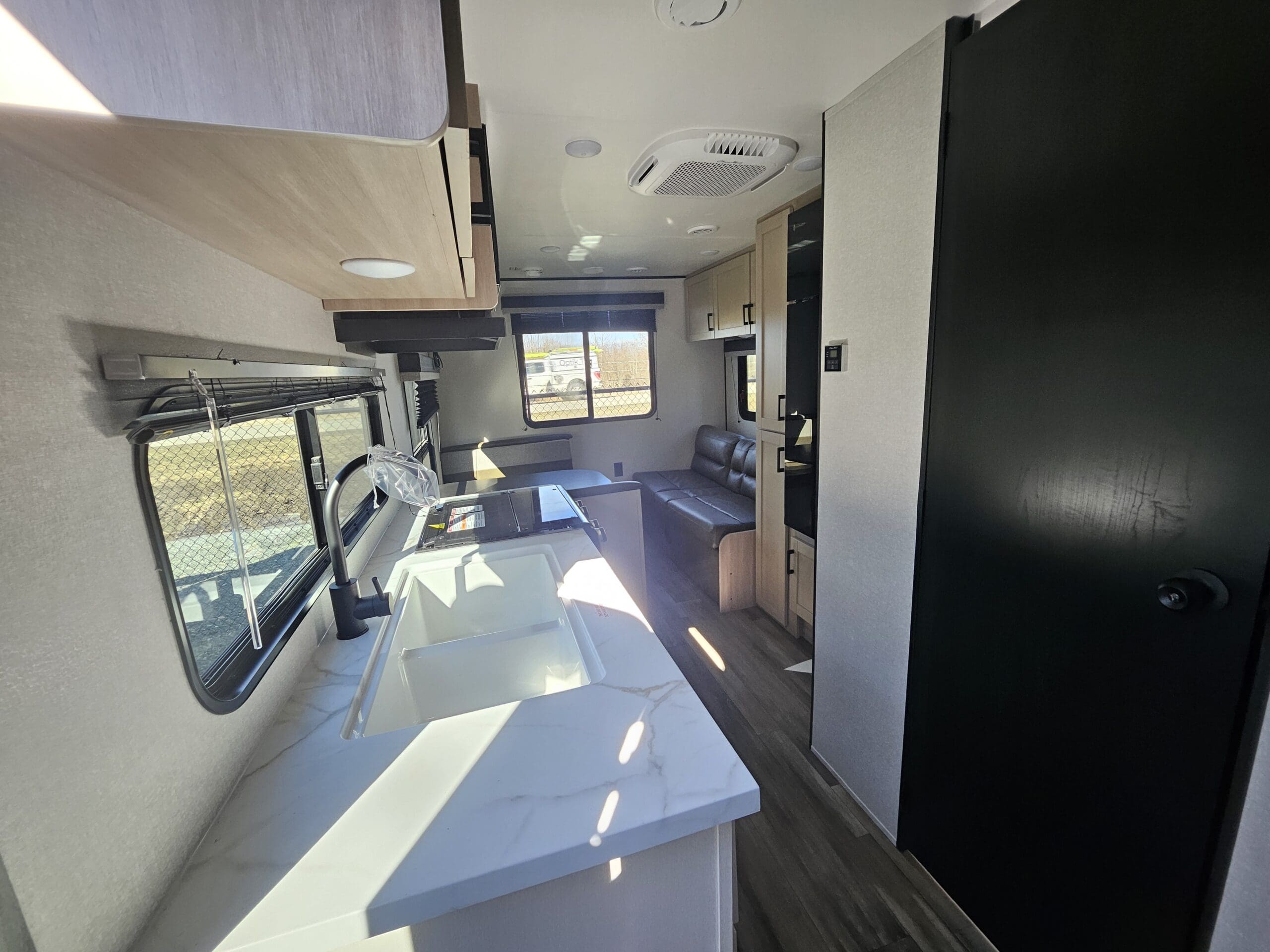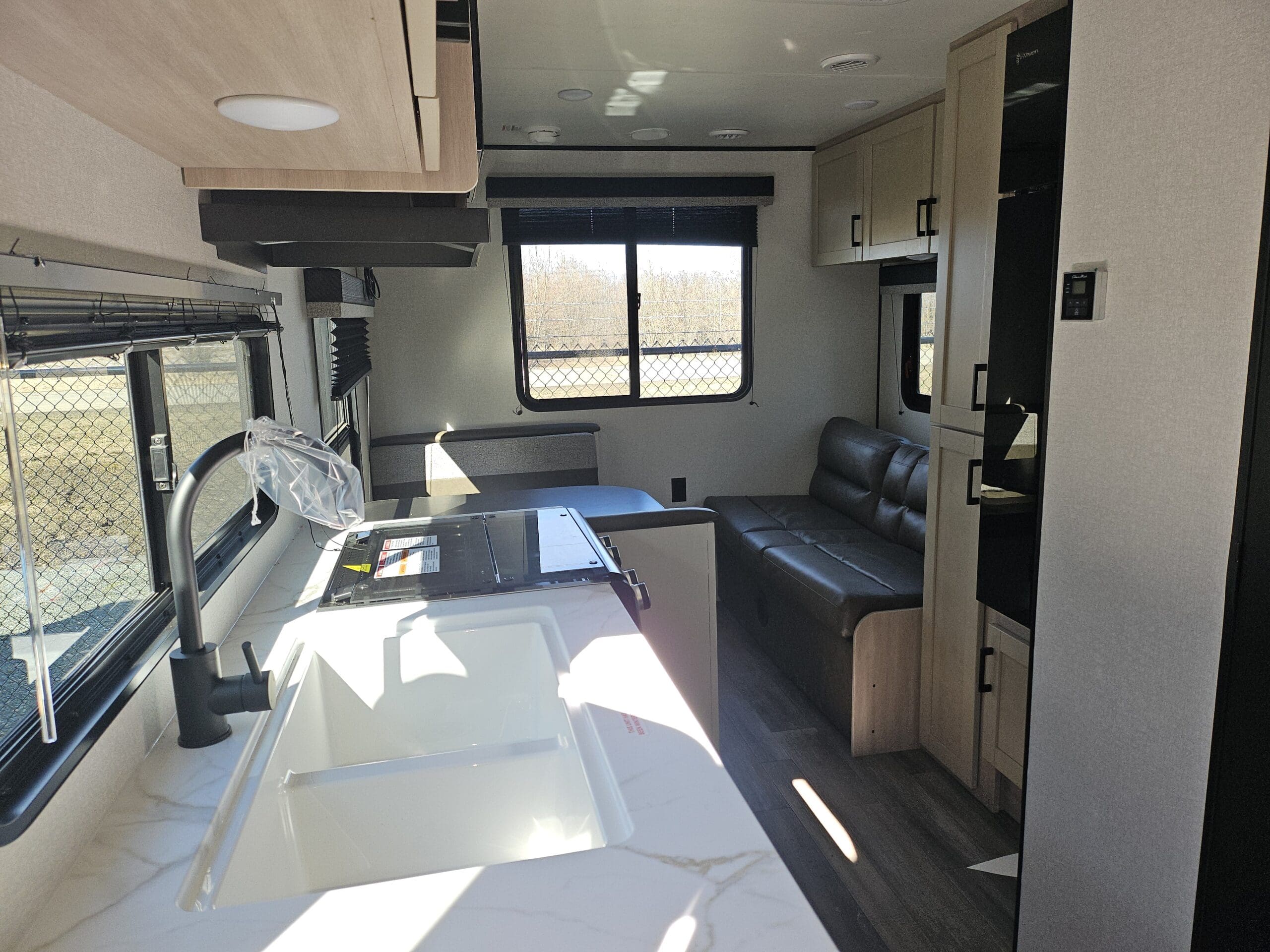 Climate Control: Features a 13,500 BTU roof-mounted A/C and a 20,000 BTU furnace, paired with an on-demand tankless water heater for endless hot showers.