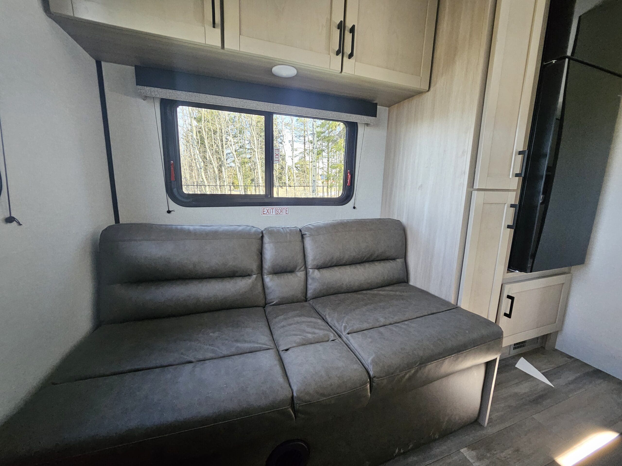 Living Area: Includes a booth dinette and a jack-knife sofa, both of which convert into additional sleeping spaces.