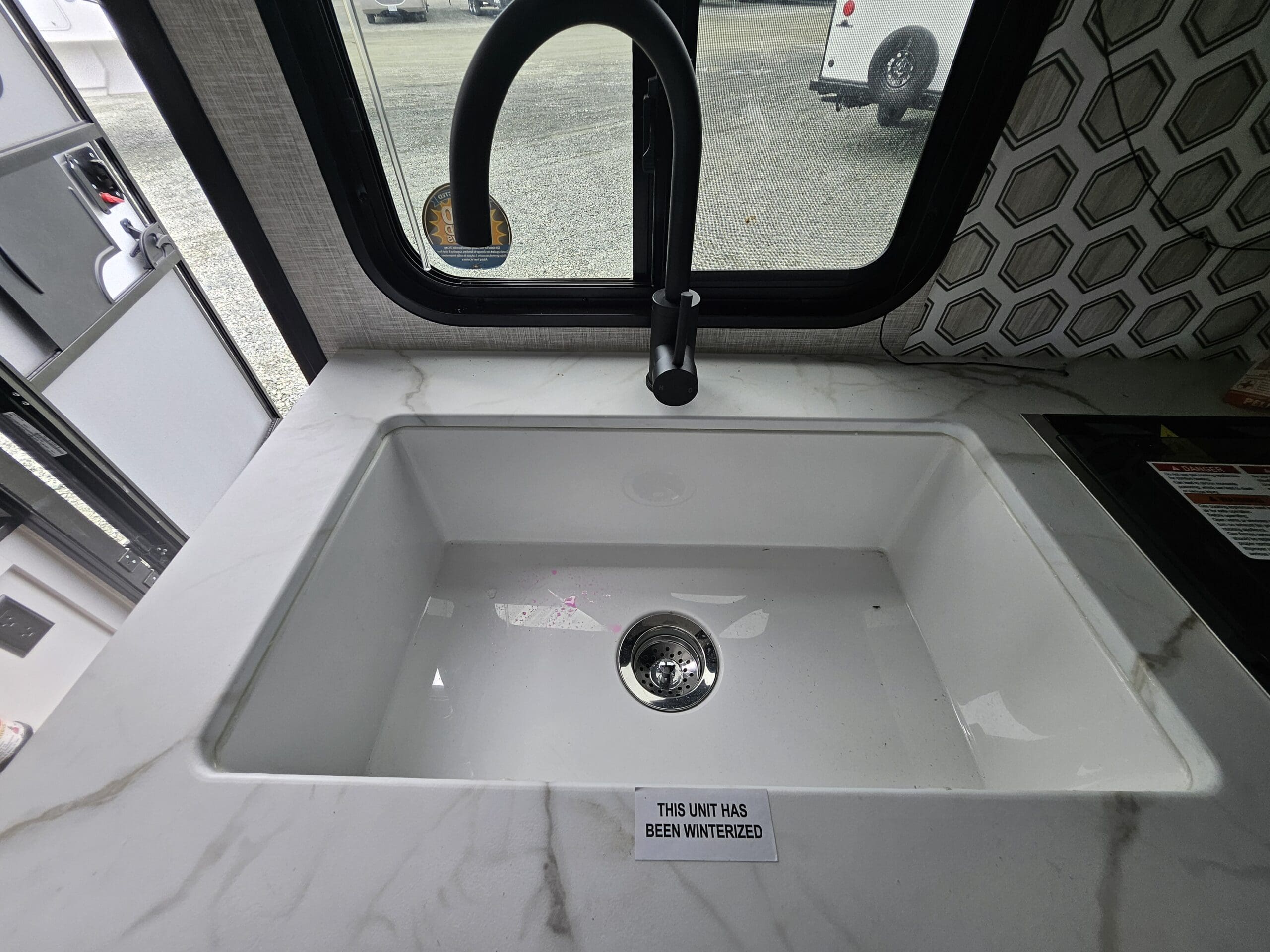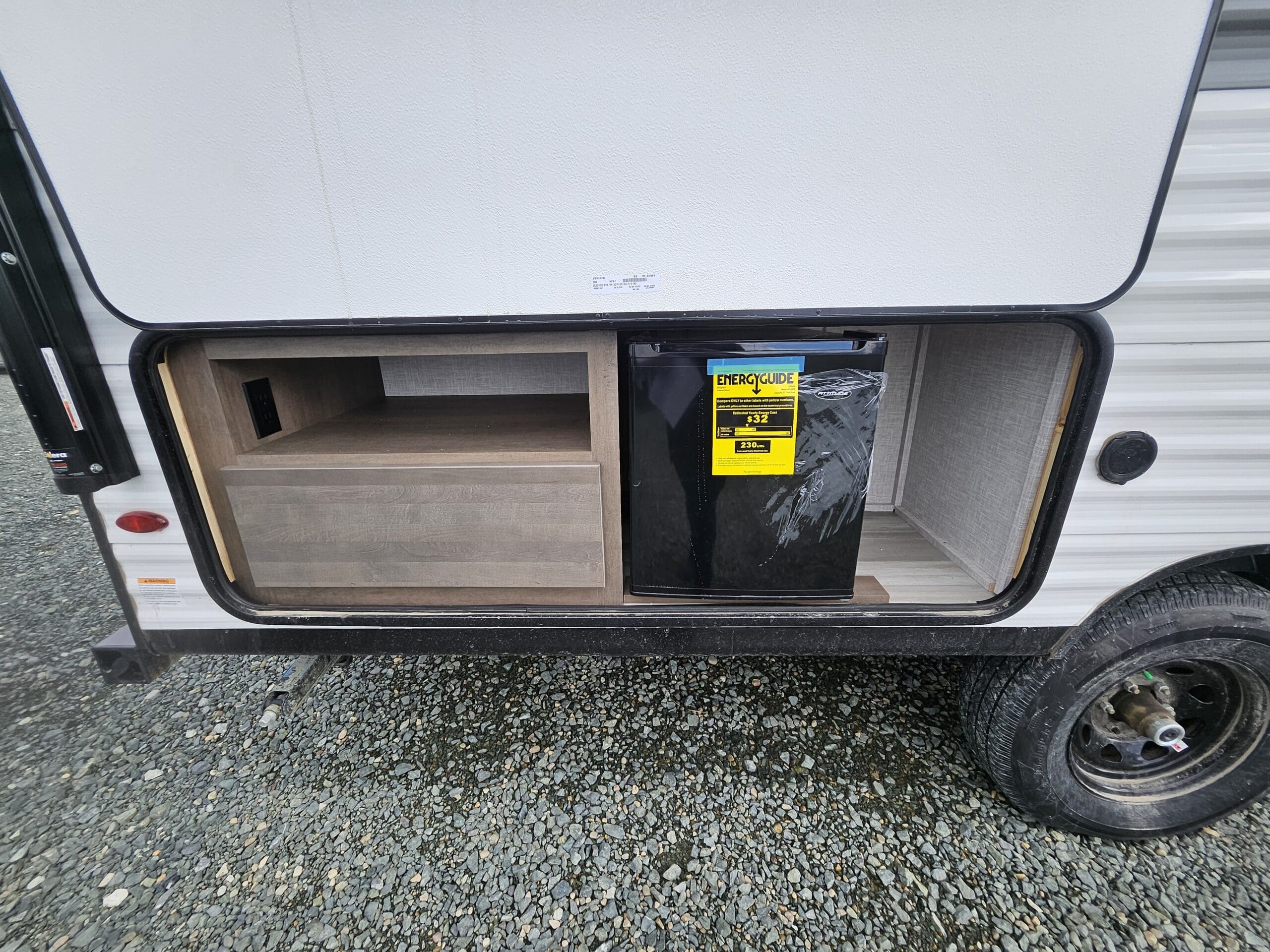 Outdoor Amenities: A major highlight is the outside kitchen, which includes a small refrigerator and extra prep space, complemented by a 16′ power awning with LED lighting.