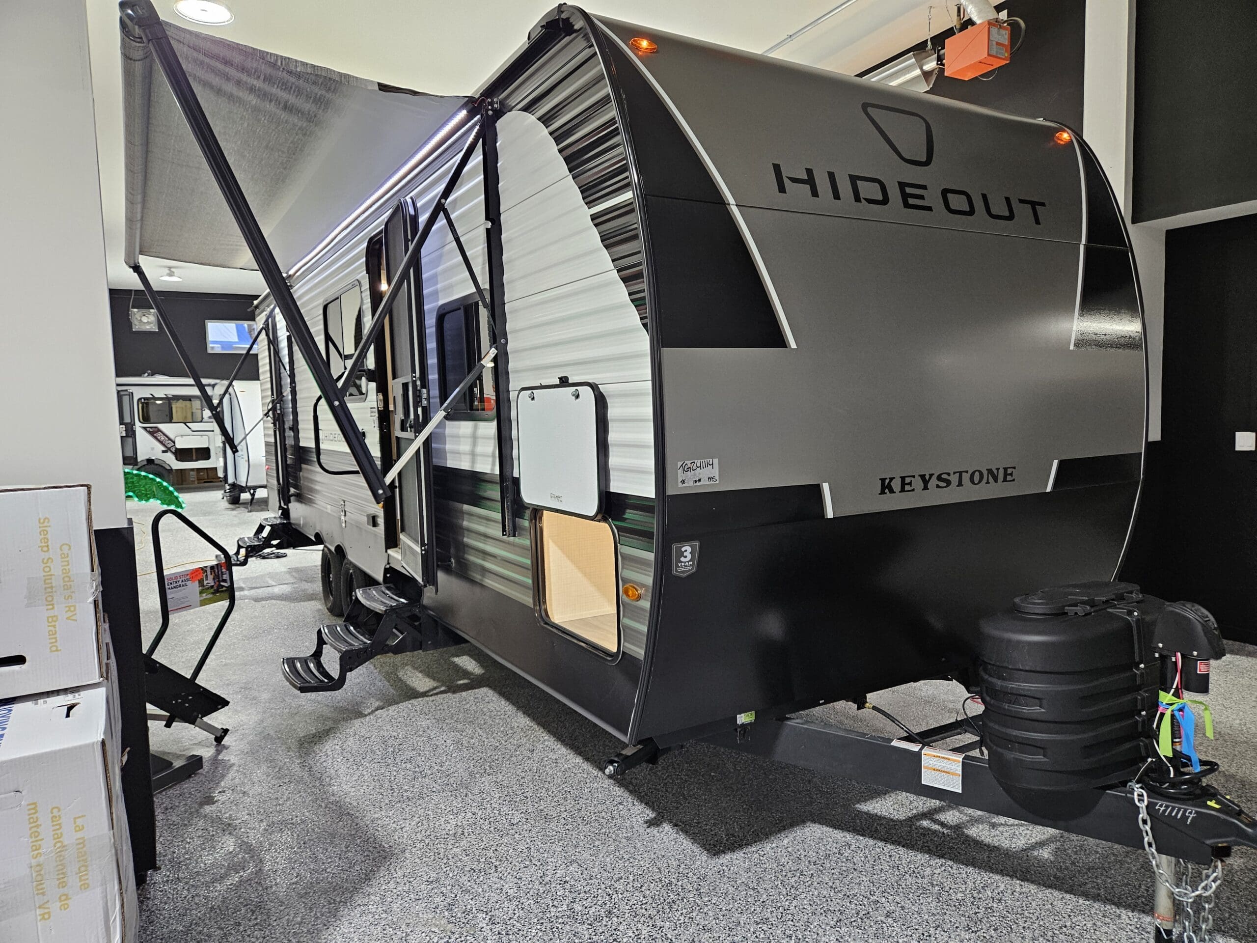 The Keystone Hideout 261BHWE is a popular bunkhouse travel trailer designed for large families and groups. Part of the “Hideout Sport” series, it focuses on providing a spacious, functional layout while maintaining a lighter tow weight and a more approachable price point.