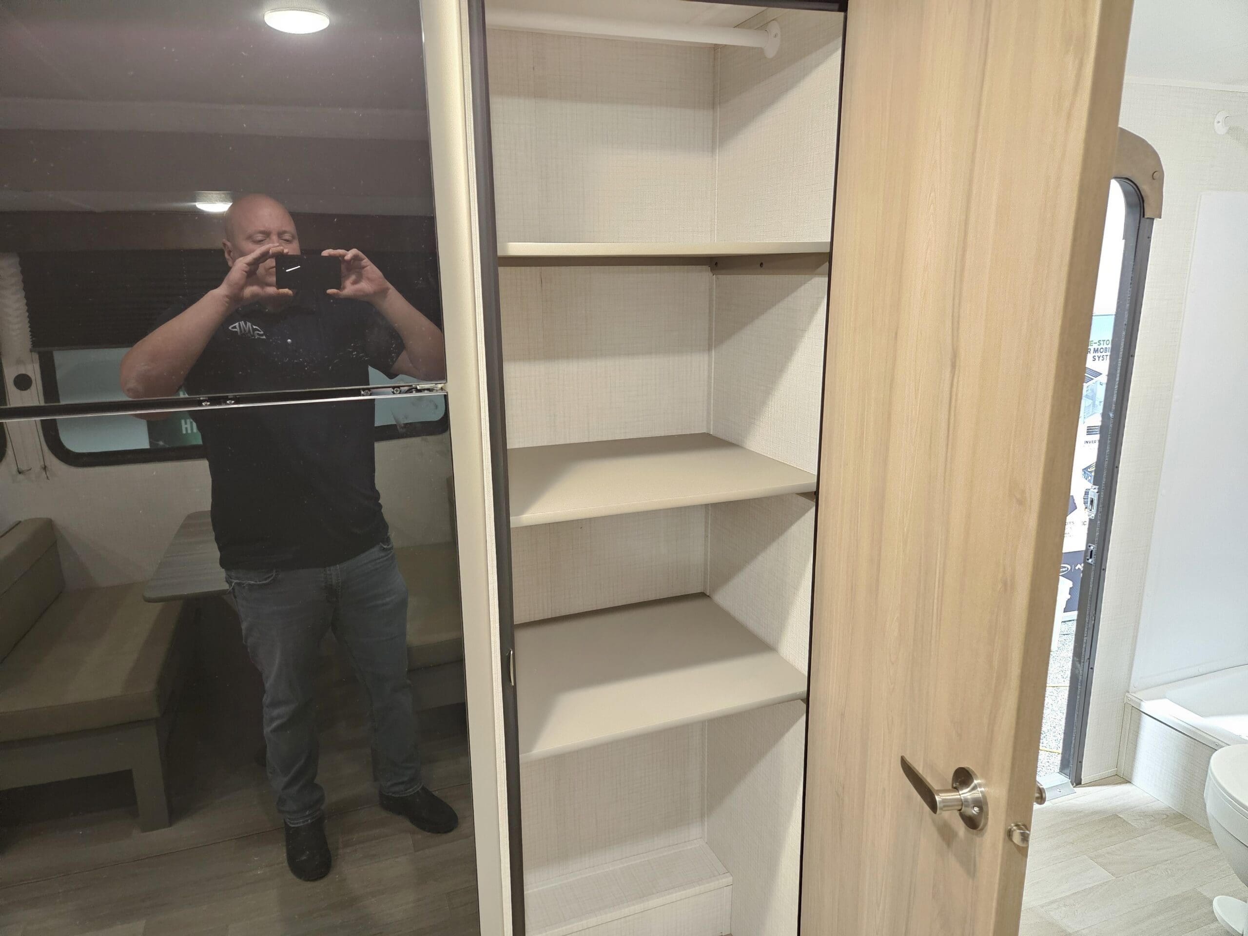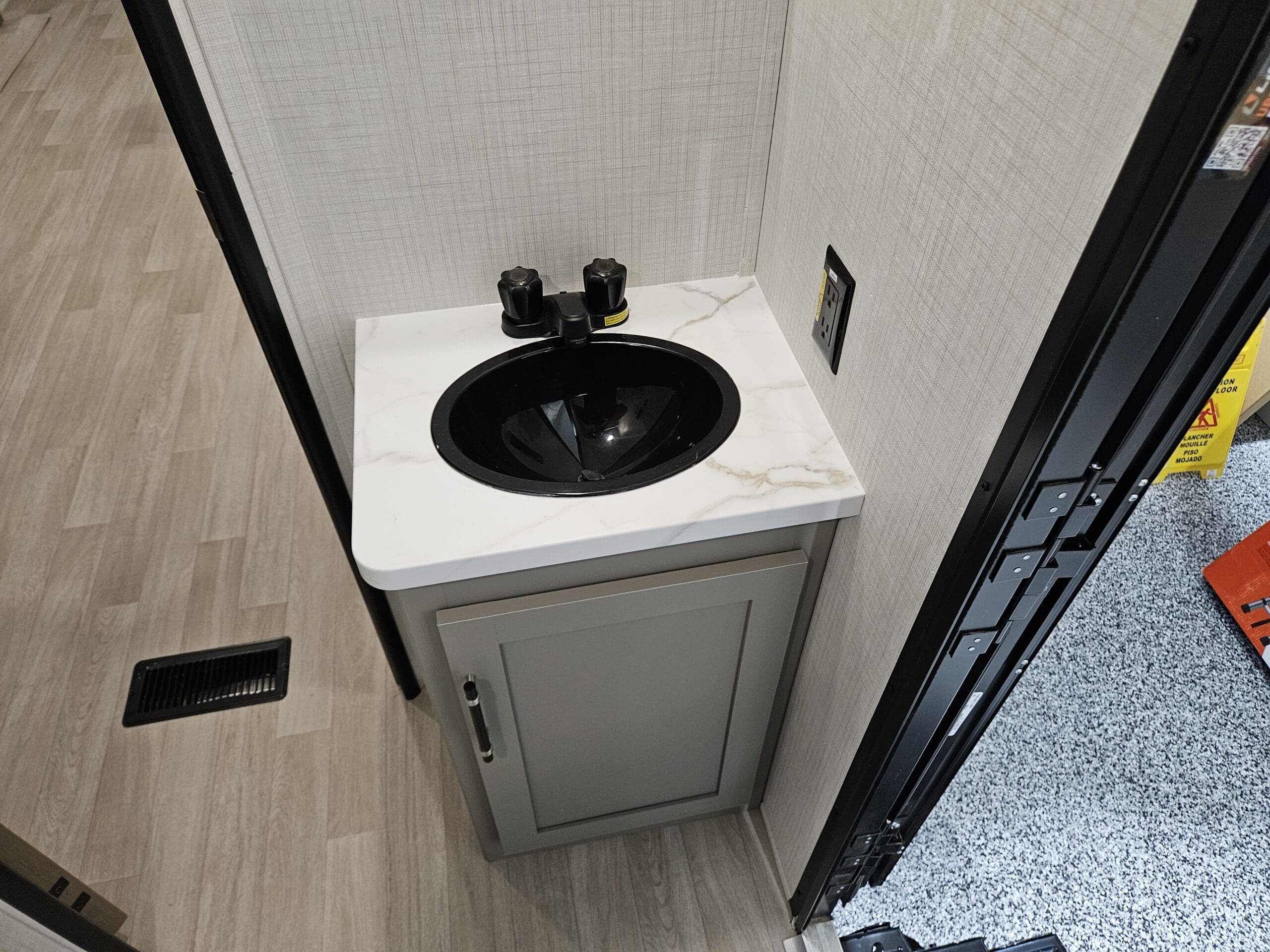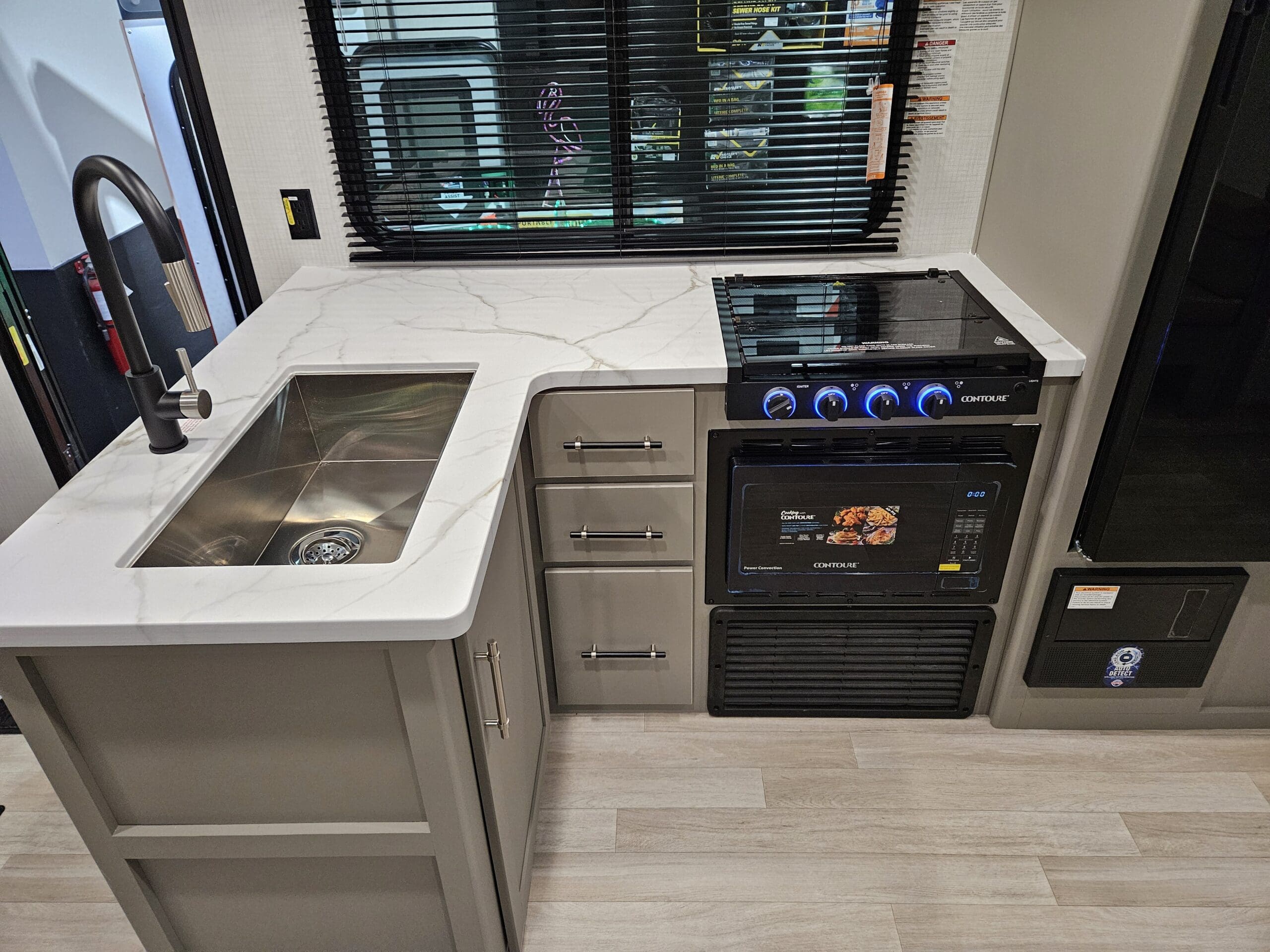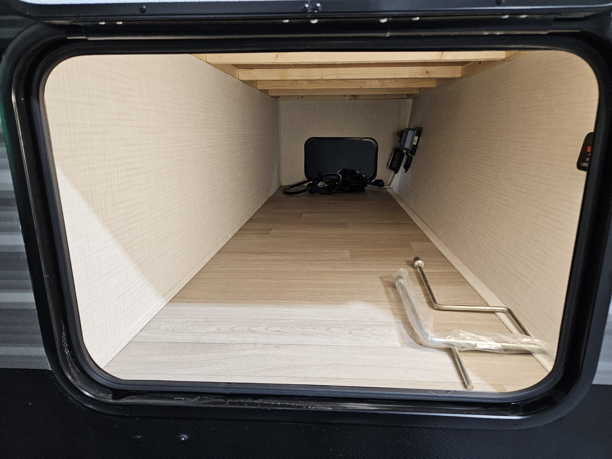 Kitchen: Equipped with a 10 cu. ft. 12V refrigerator, a 3-burner cooktop, and an extra-large pantry, which is a standout feature for this size of trailer.