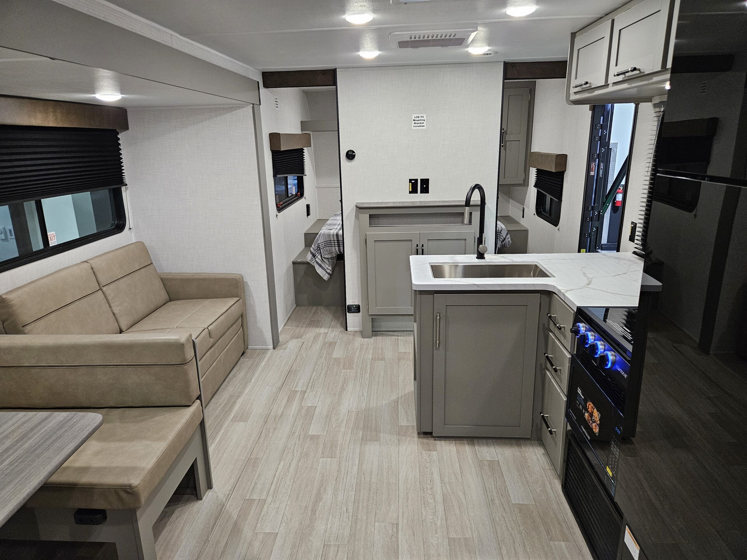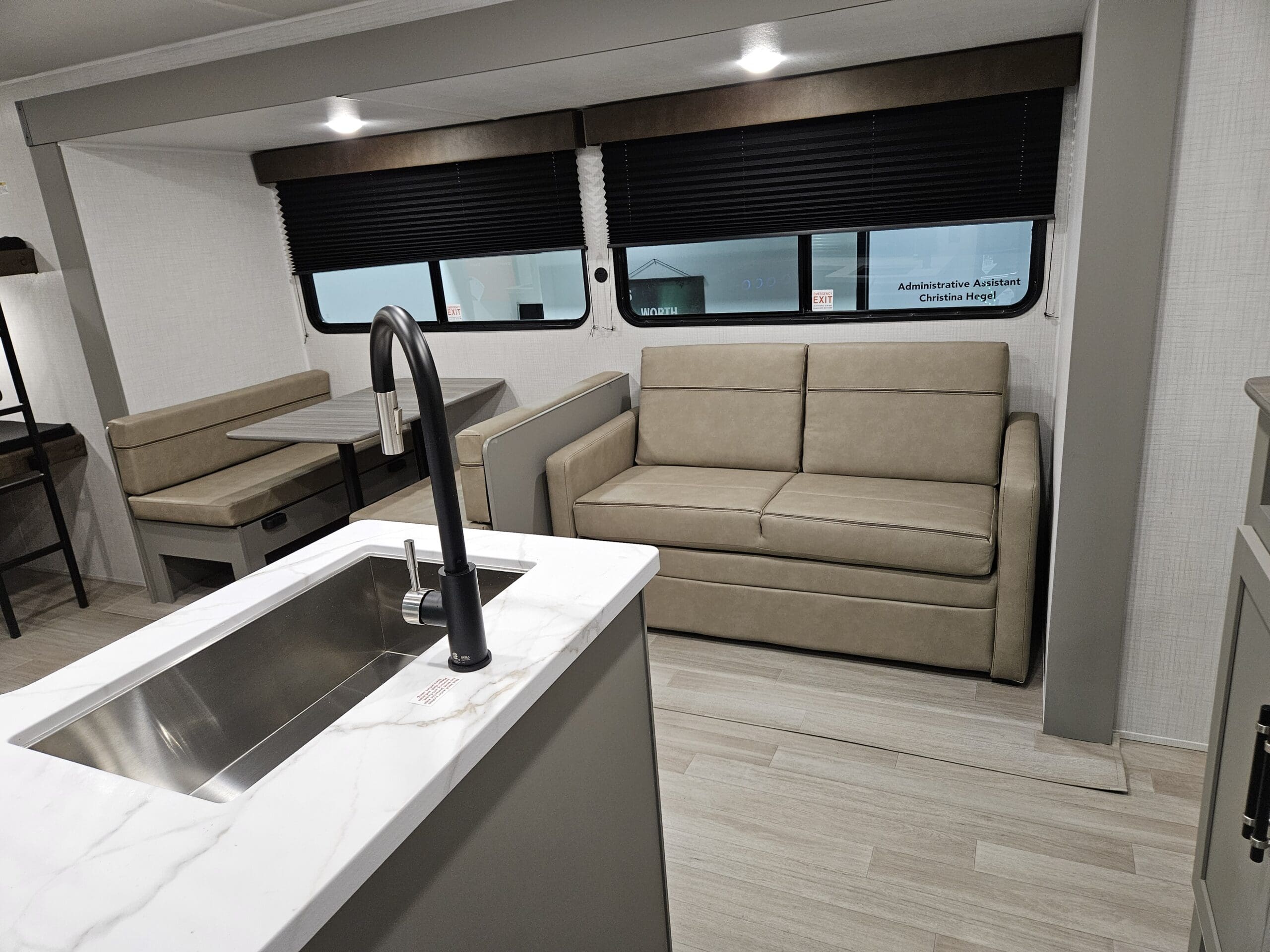 The 261BHWE is known for its open-concept living area, made possible by a large single slide-out.