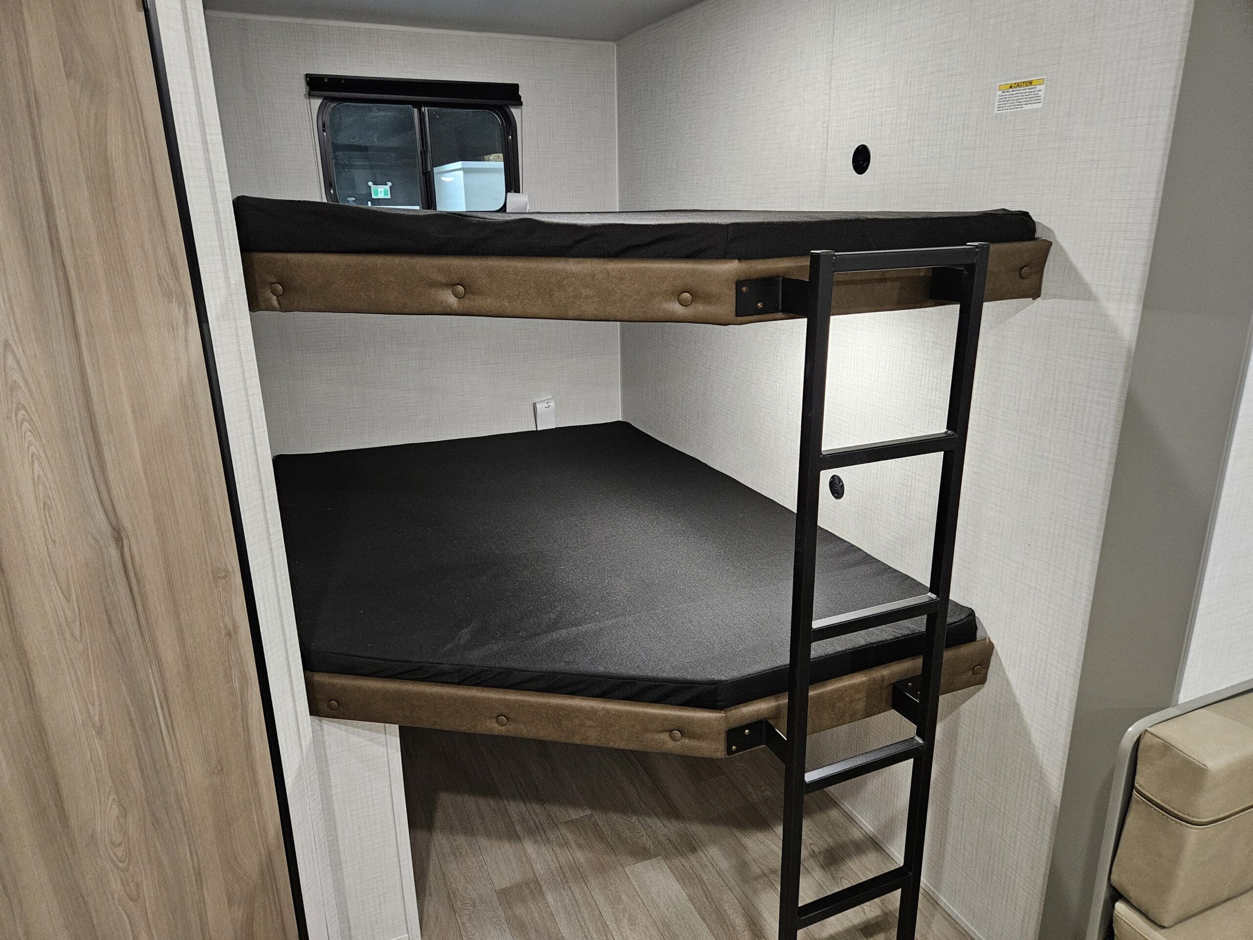 Bunkhouse: Features “double-over-double” bunks in the rear, providing enough space for two kids (or even two adults) per level.