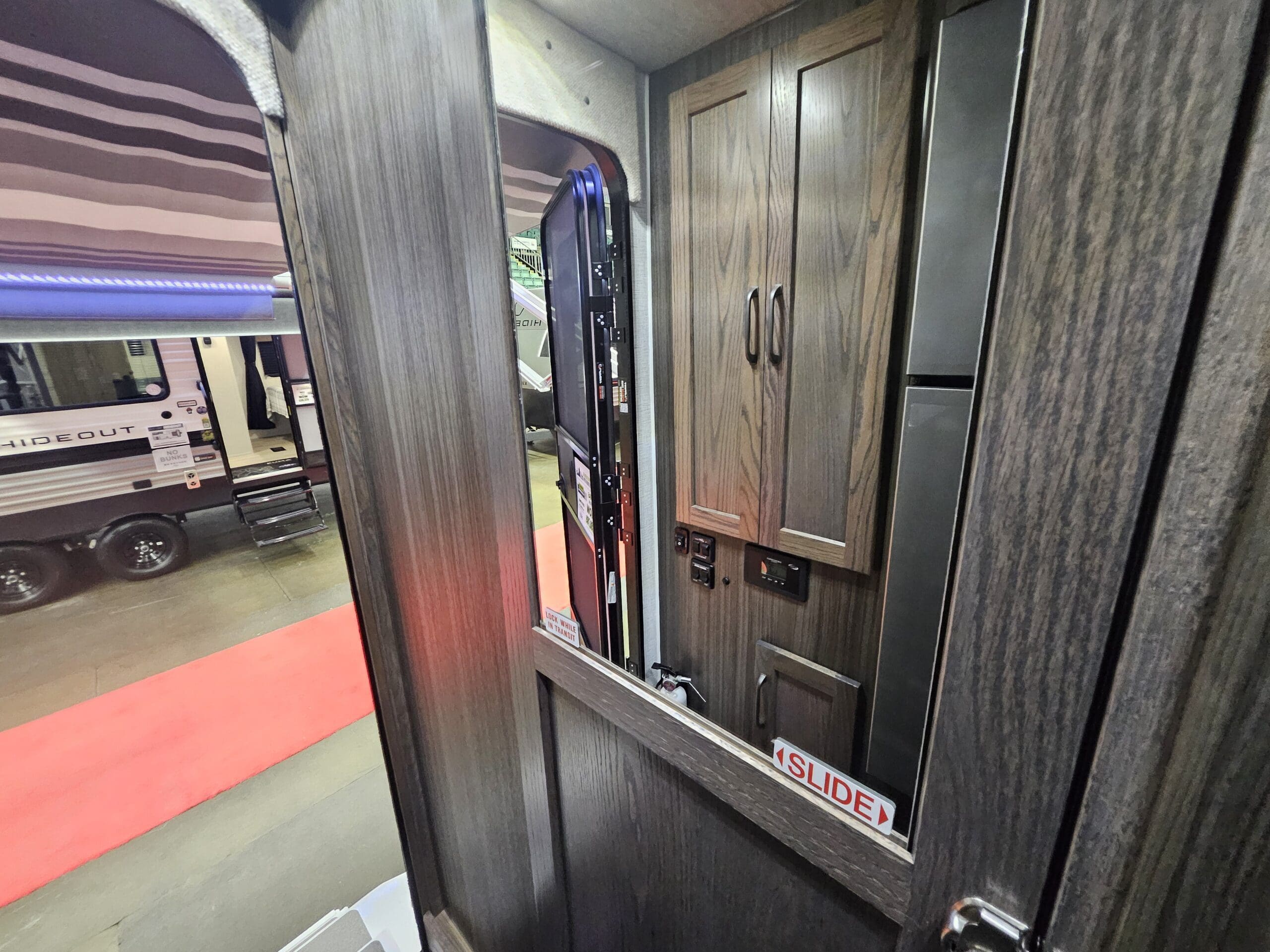• Exterior: Two power awnings (10′ side and 7′ rear) with LED lighting, a wireless backup camera, and electric jacks.