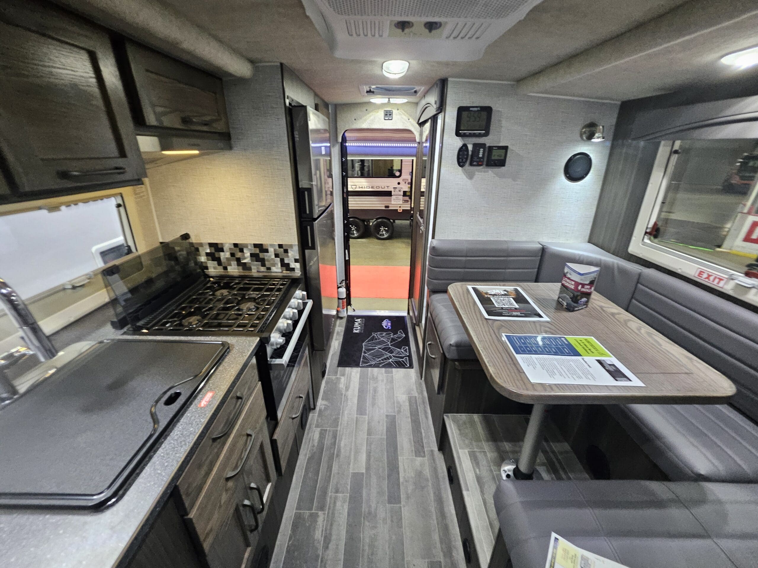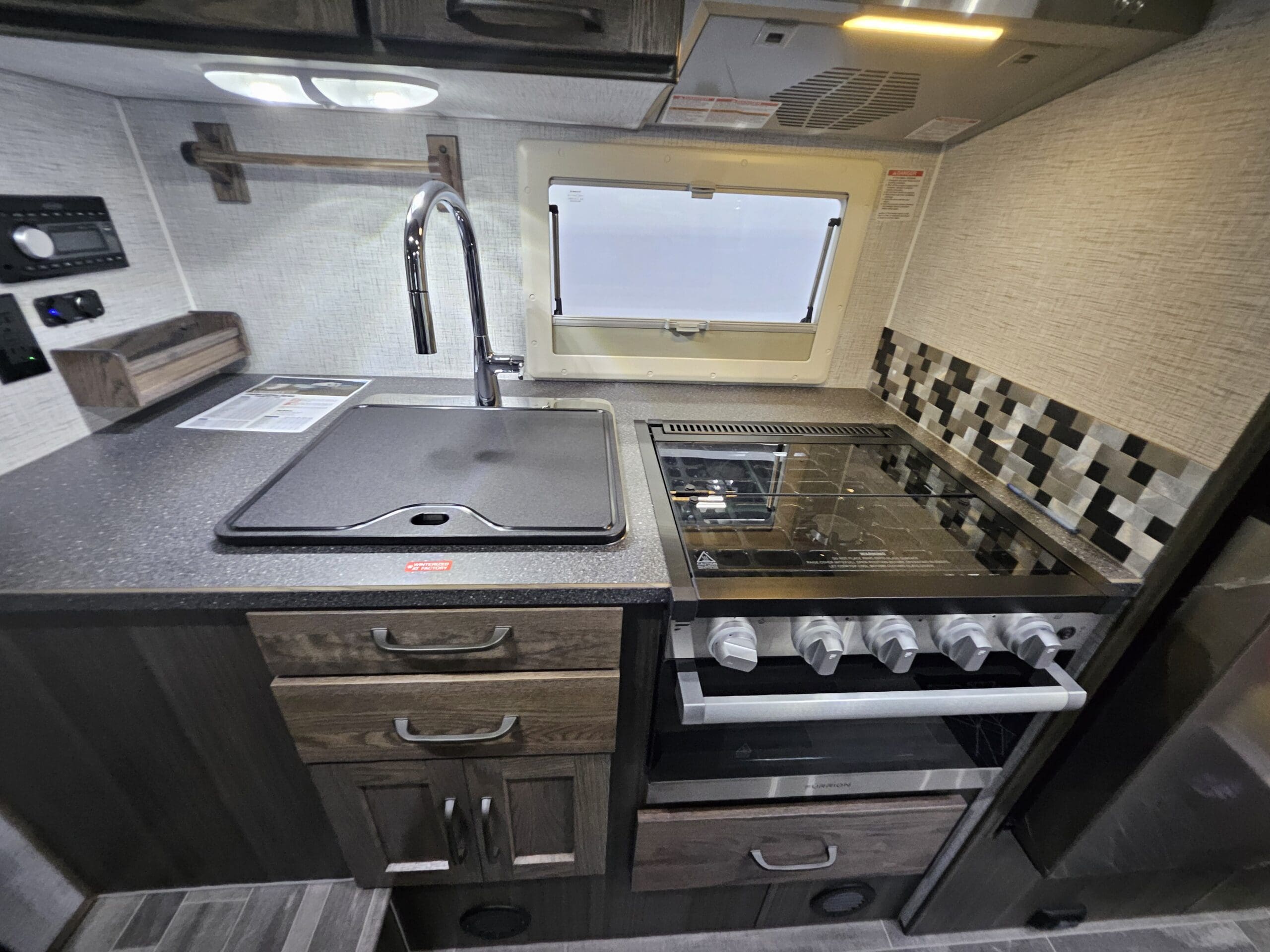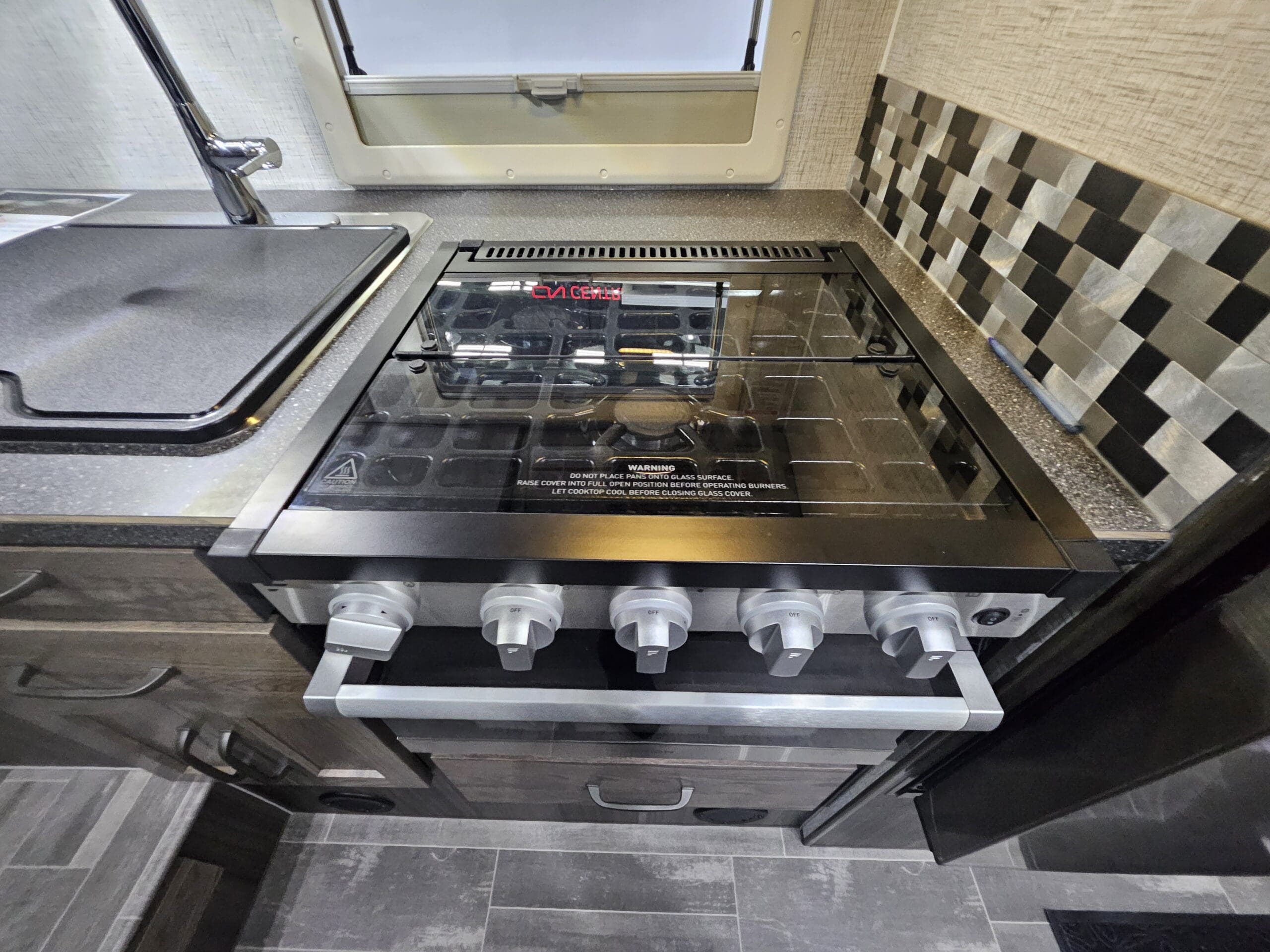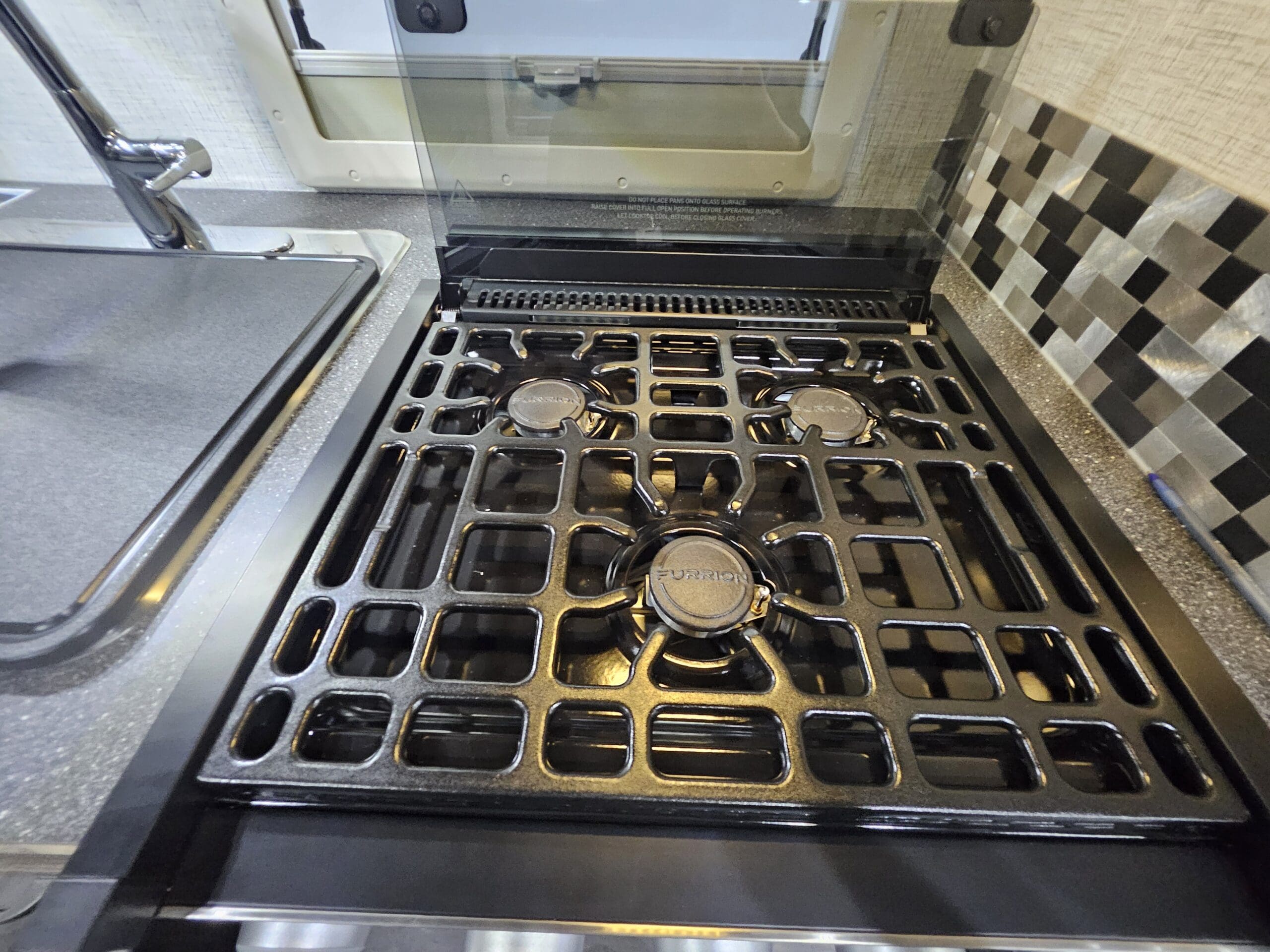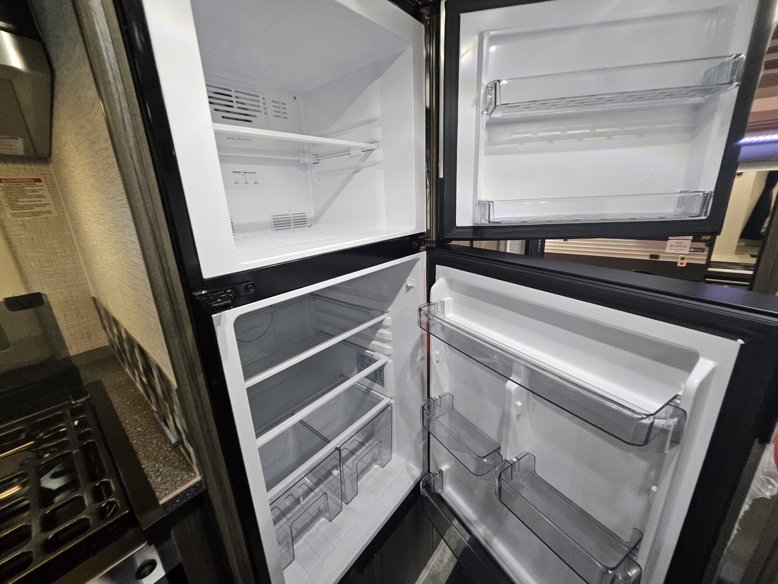 • Appliances: 12V 8 cu. ft. refrigerator, microwave, and 3-burner stove/oven.