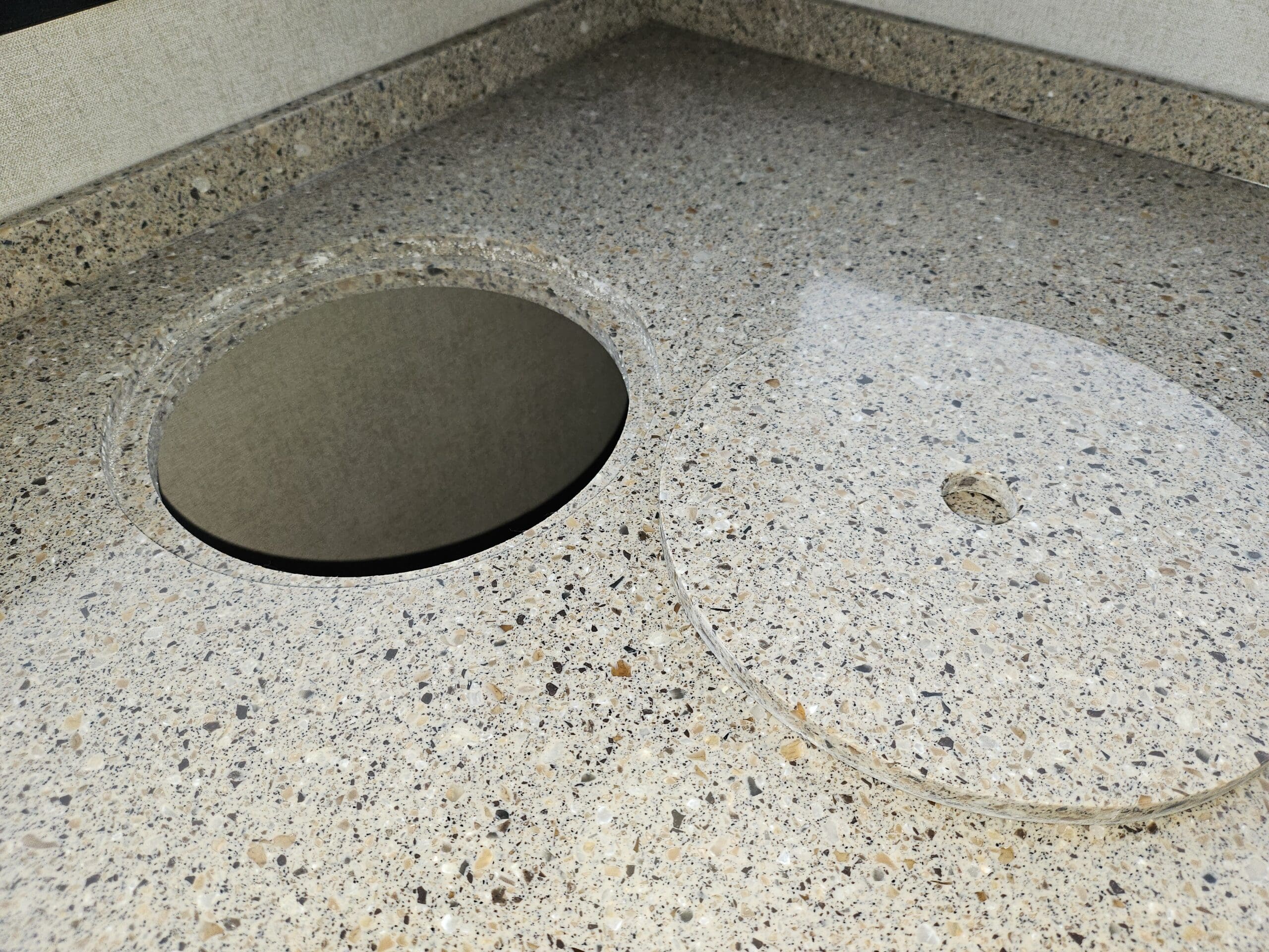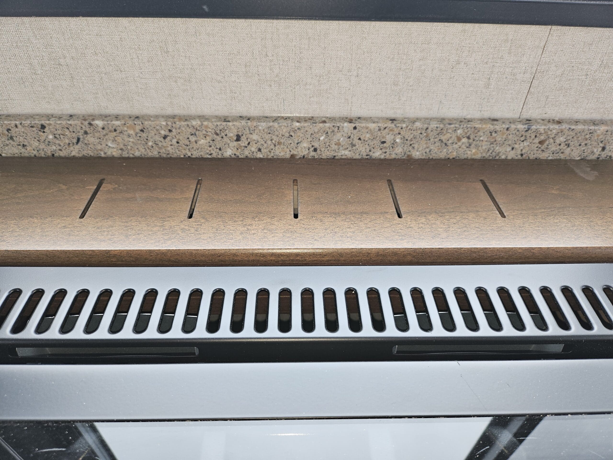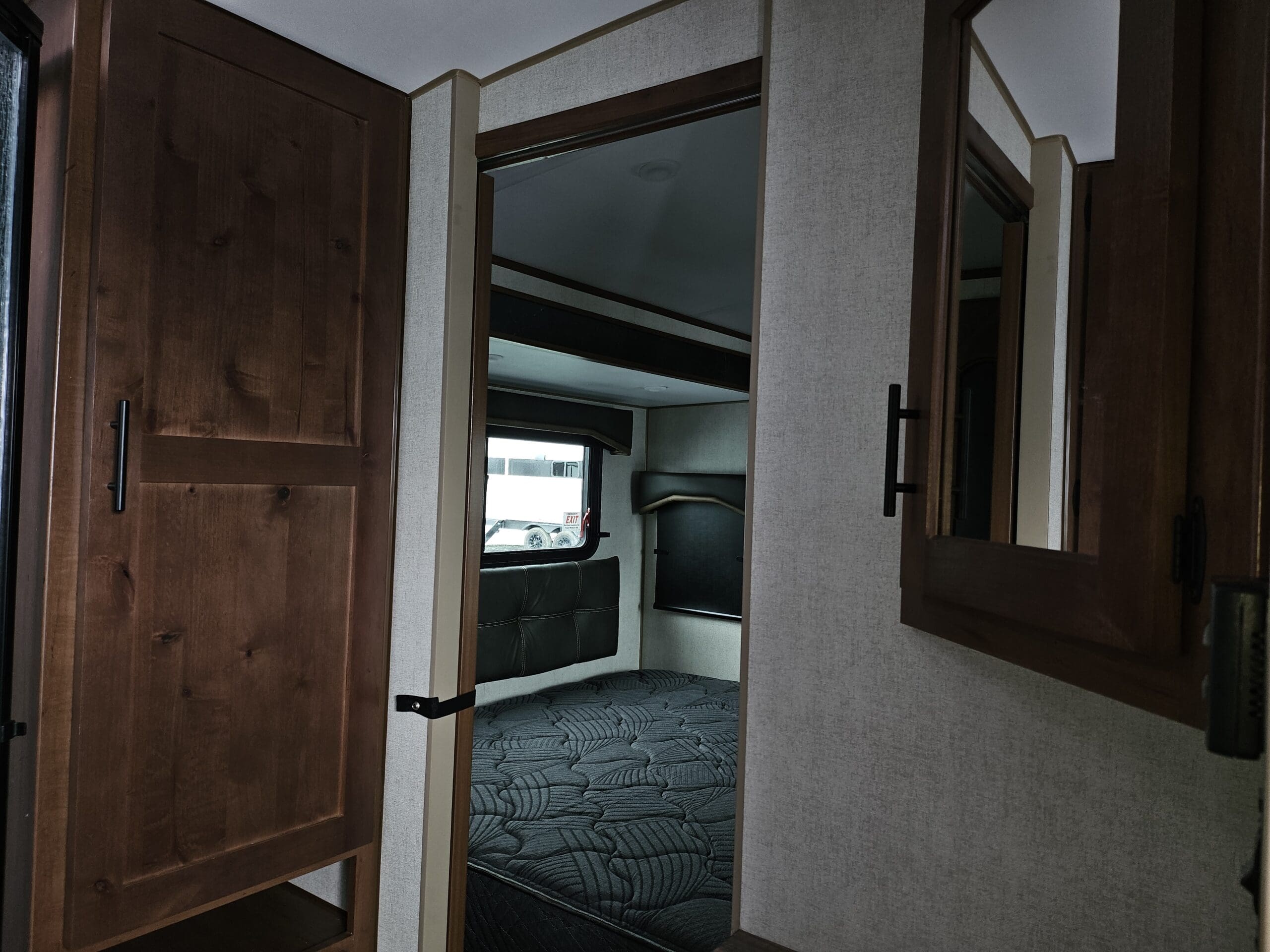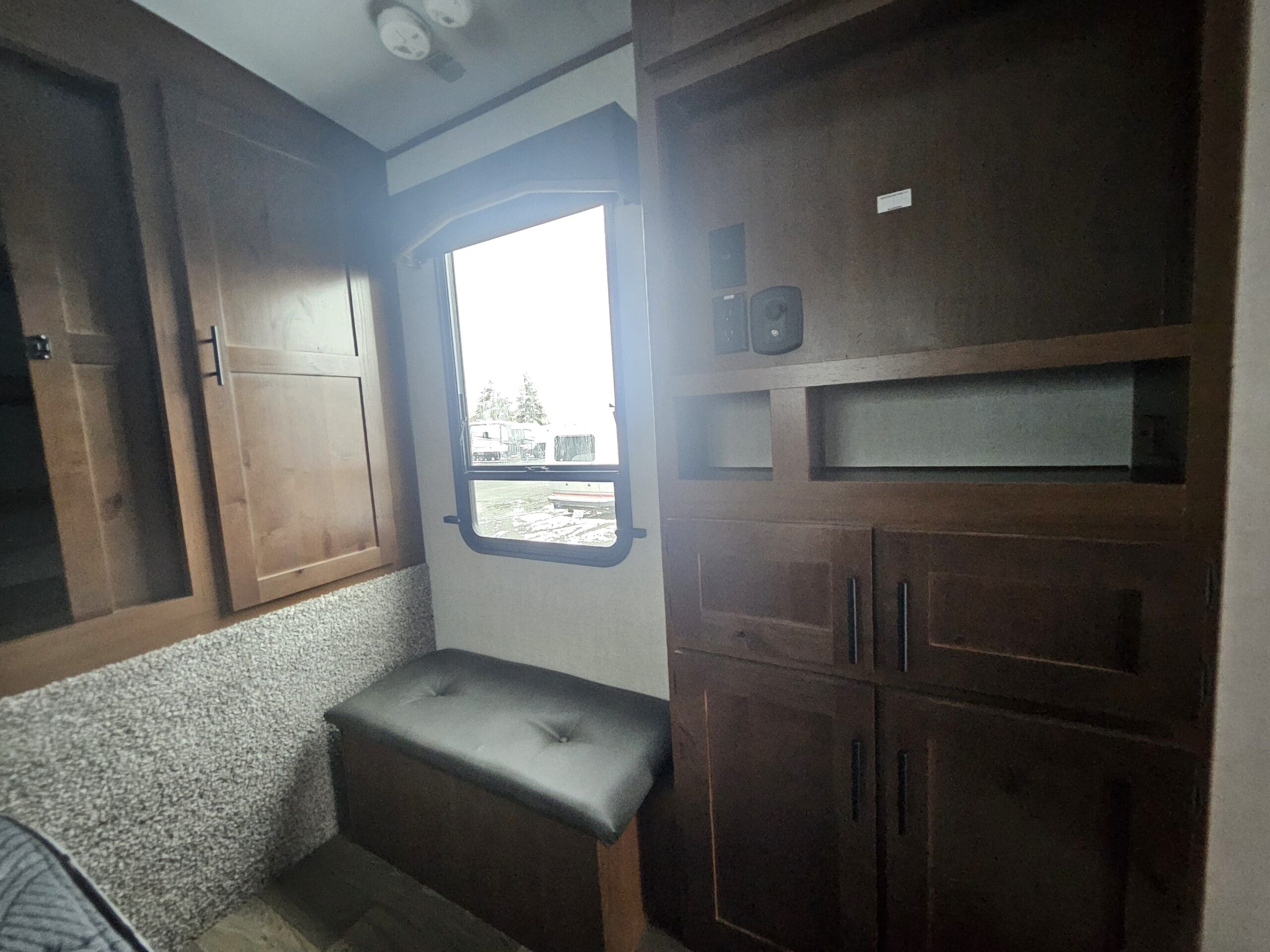 Opposing Slides: Creates a “great room” feel in the center of the trailer with theater seating/recliners facing a mountain dinette.