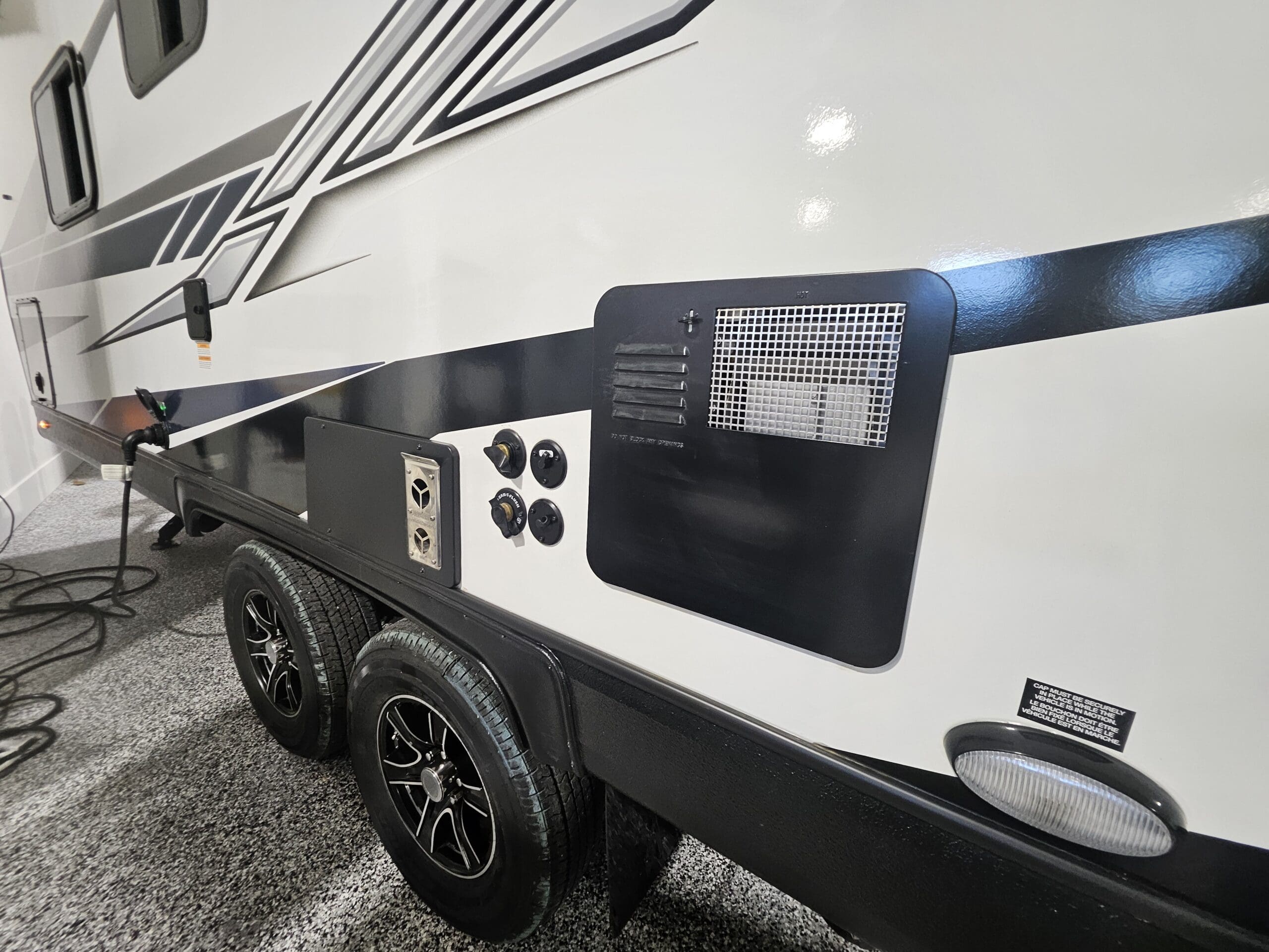 Four Seasons Build: Includes “Mountain Extreme” thermal pane windows, triple-layered roof insulation, and a fully enclosed, heated underbelly with insulated holding tanks.
