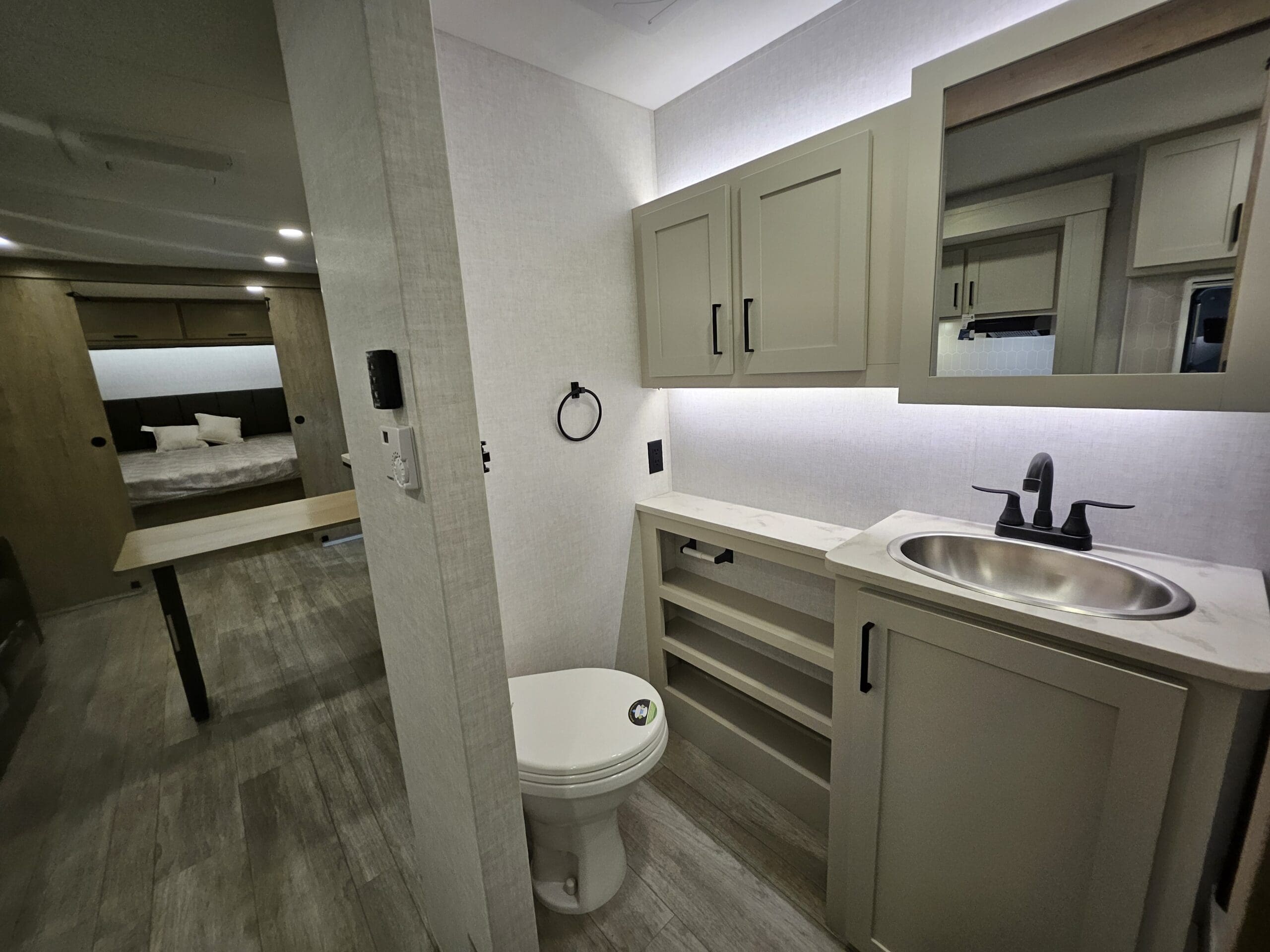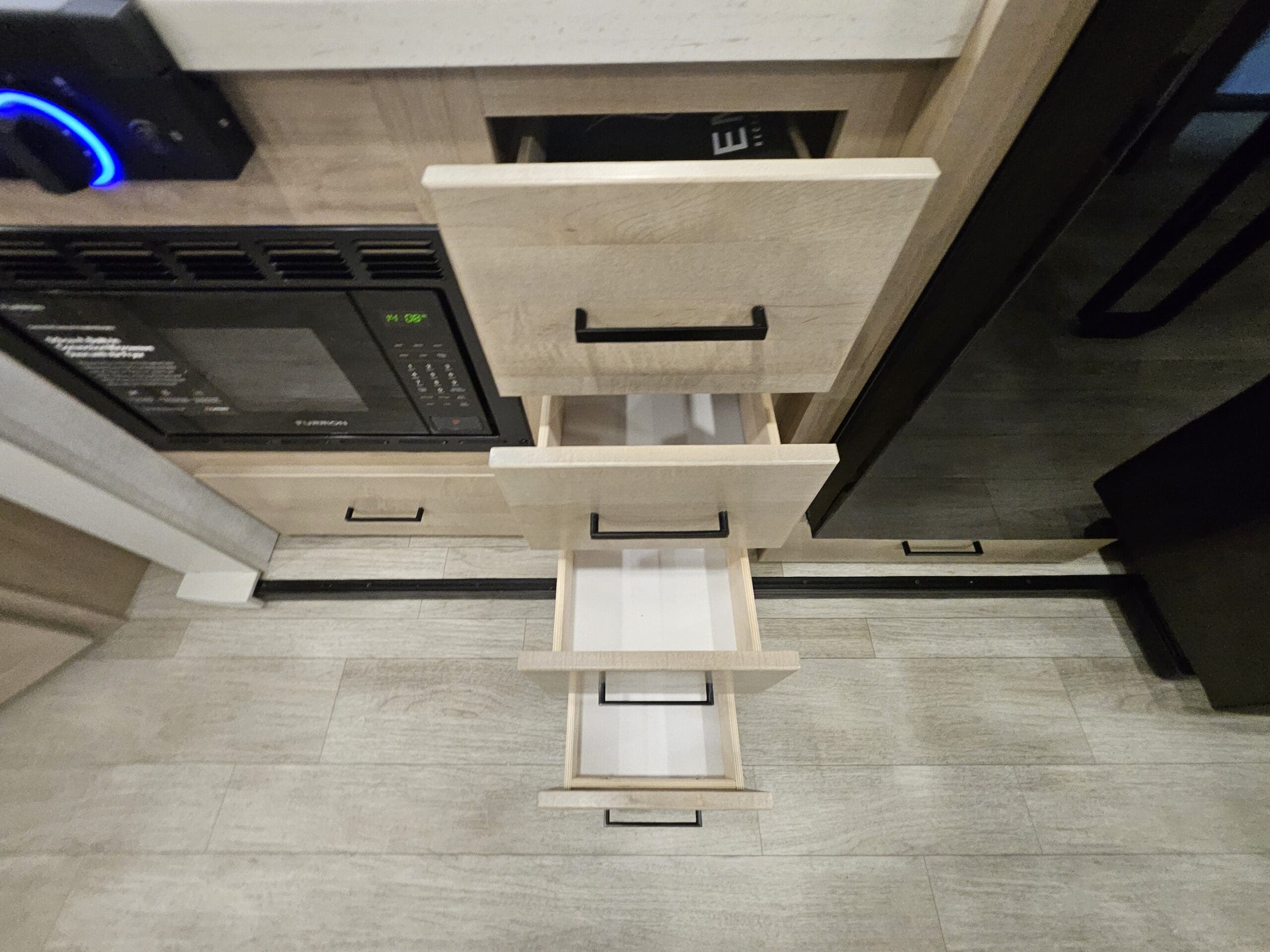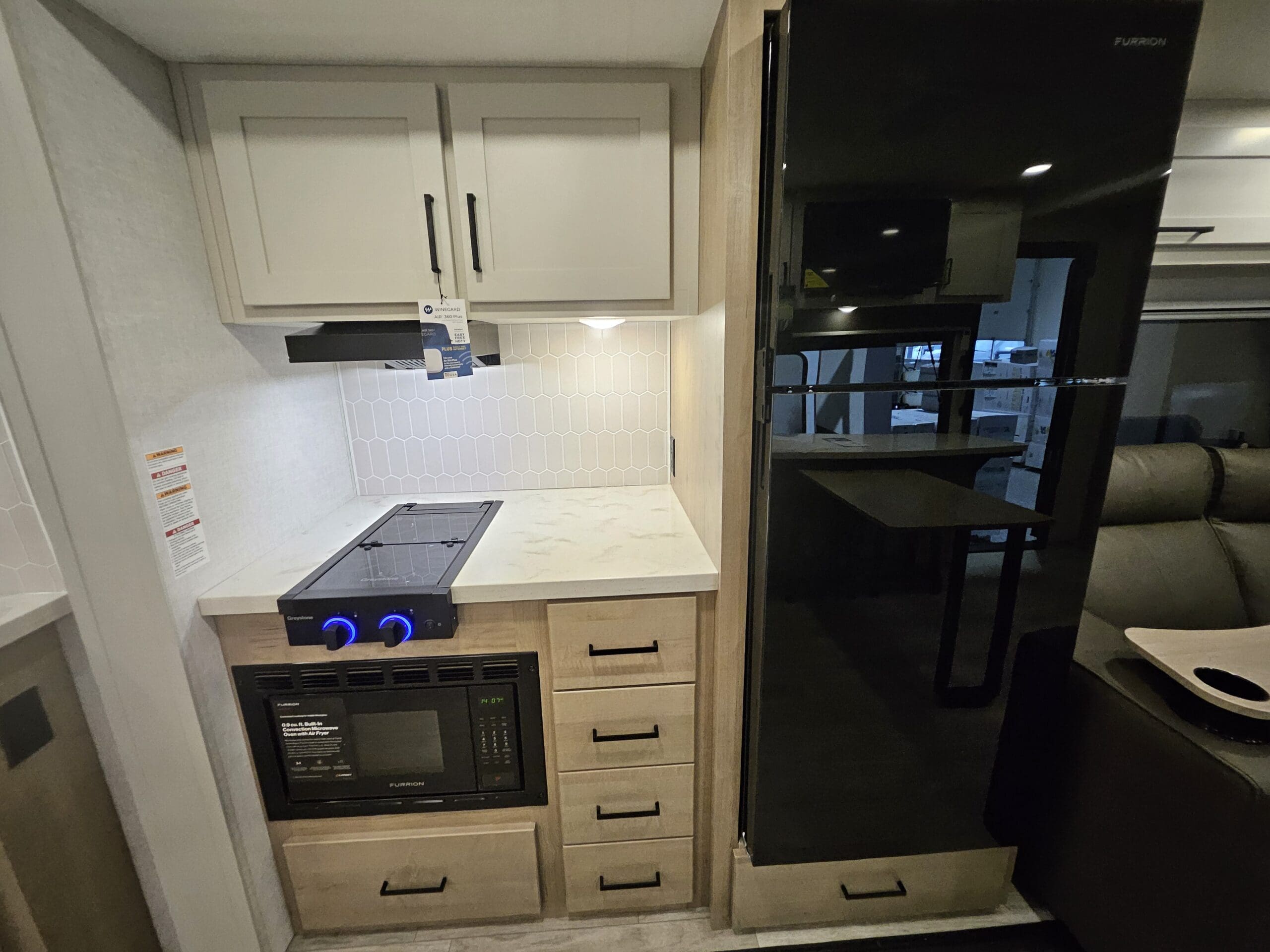 • Advanced Climate Control: Comes standard with the 18,000 BTU Chill Cube A/C (with heat pump), which is significantly more powerful and quieter than standard RV units.