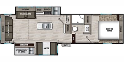 • Exterior: Often features an electric awning with LED lights, MORryde StepAbove entry steps, and large pass-through storage compartments. Some models come with exterior camera prep and a Road Armor suspension system for smoother towing.